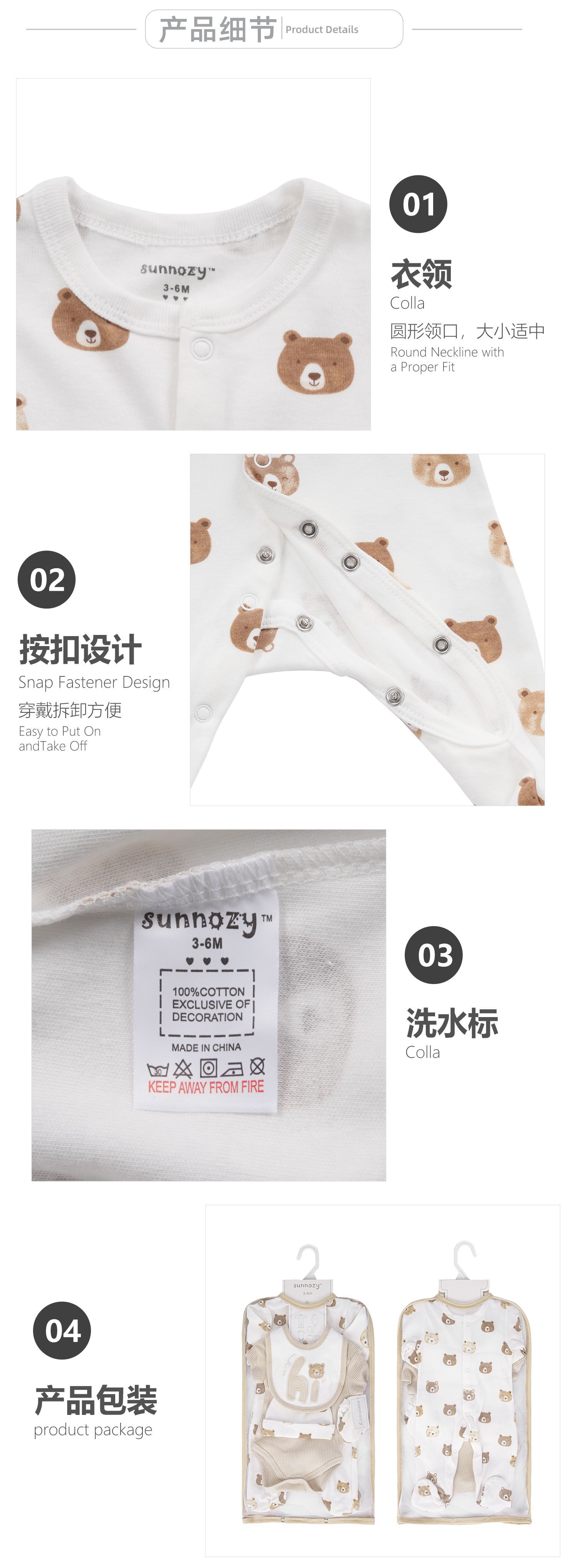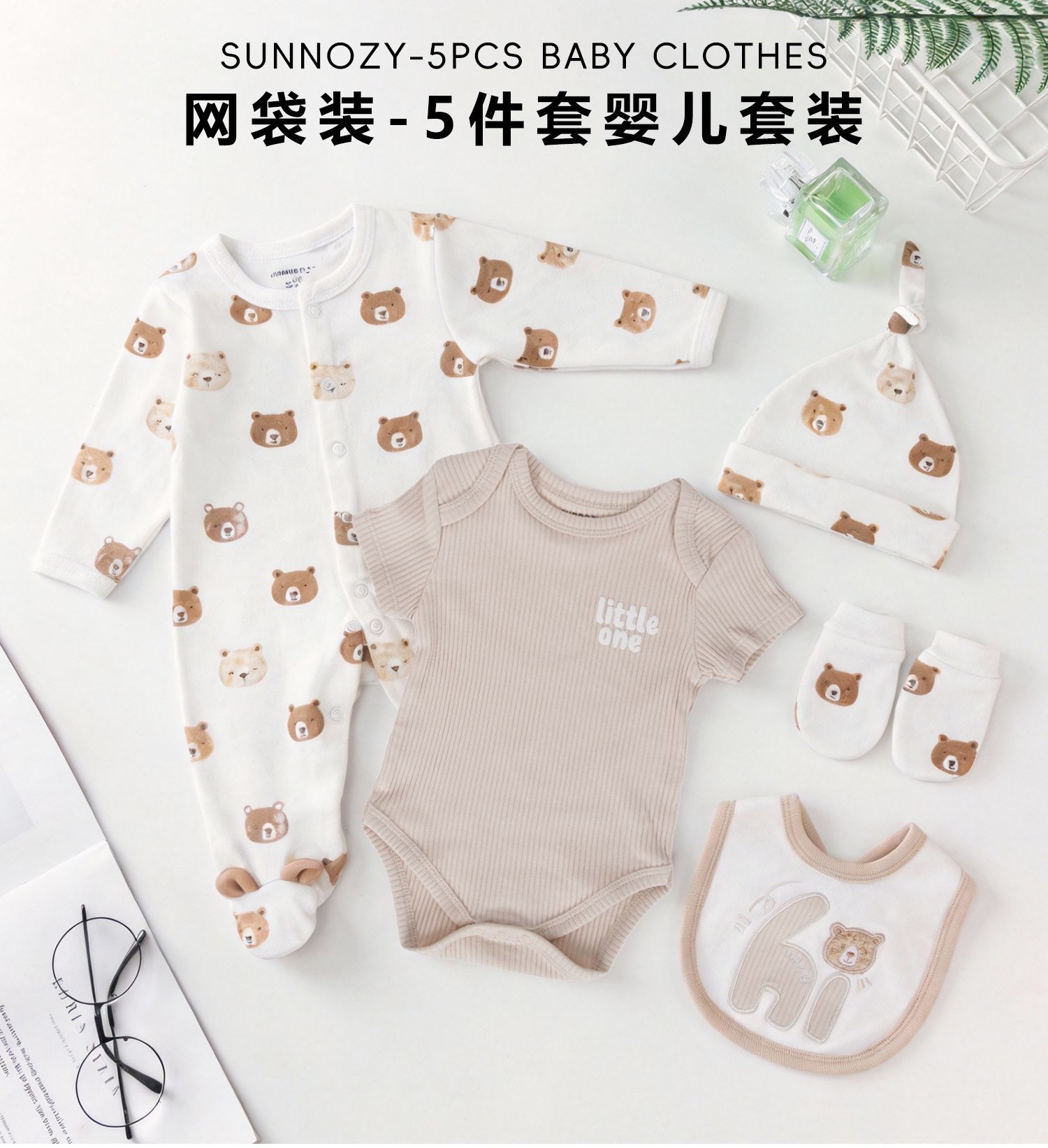 5종 세트 아기옷, 순면 아기옷, 신생아 출산 선물, 바디슈트, 외국 아동복