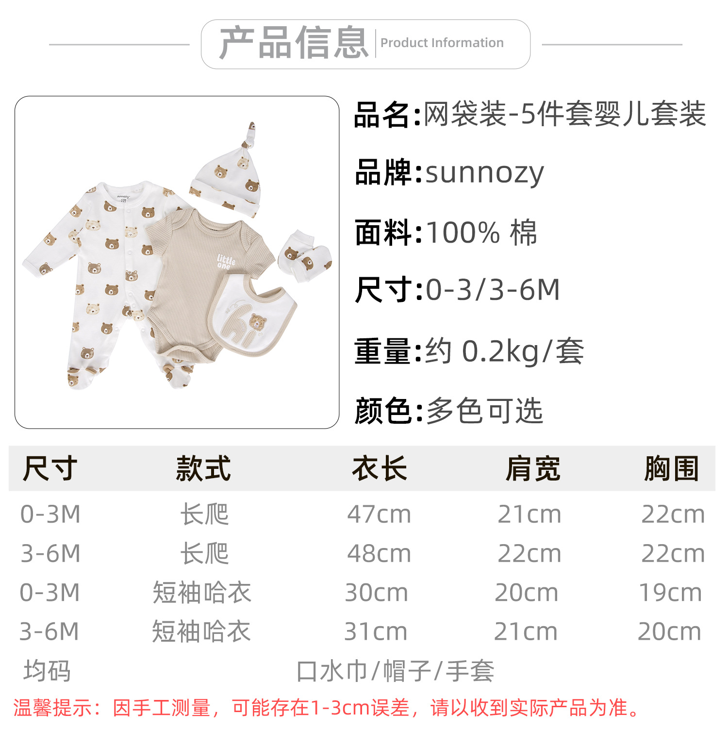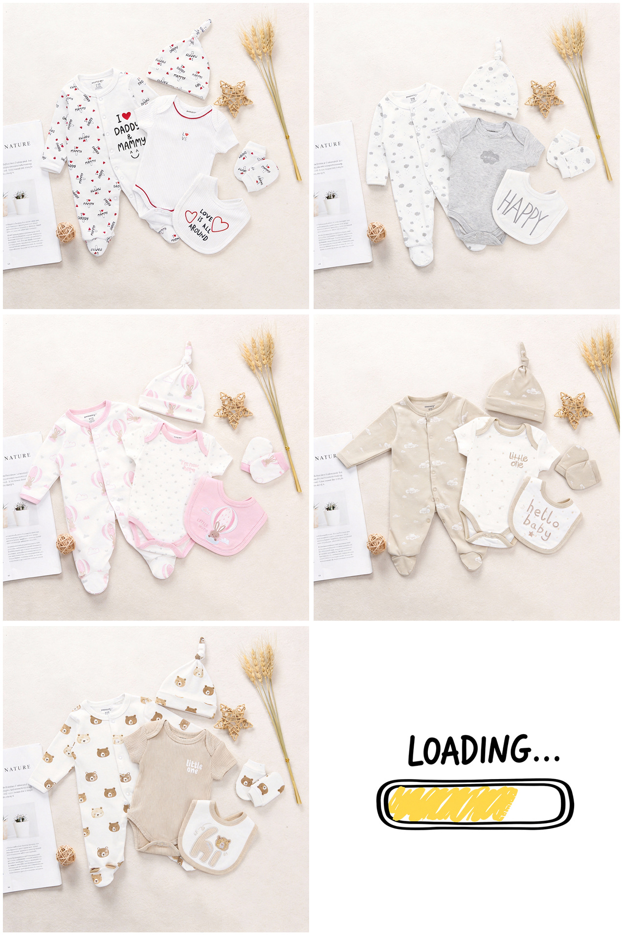 5종 세트 아기옷, 순면 아기옷, 신생아 출산 선물, 바디슈트, 외국 아동복스토어 가기