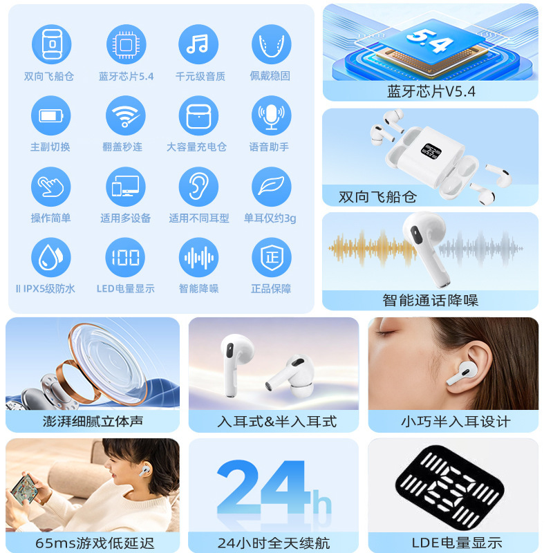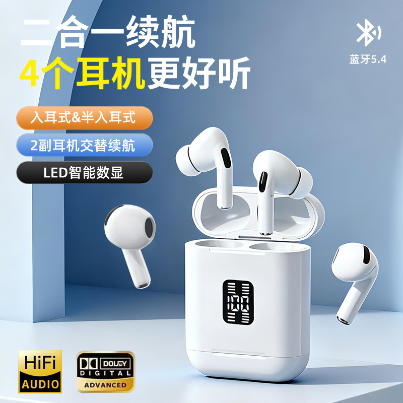 A100 무선 블루투스 이어폰 4개, 2026년형, 인이어/세미 인이어, 스포츠, 노이즈 캔슬링, 디지털 디스플레이스토어 가기
