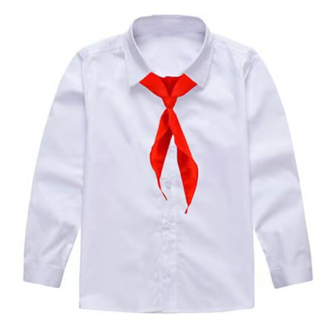 • 주머니가 없는 흰색 긴소매 + 빨간색 넥타이