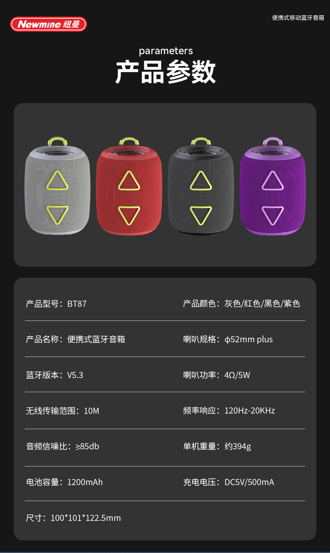 뉴먼 BT87 블루투스 무선 스피커 휴대용 야외용 가정용 컴퓨터 데스크탑 미니 서브우퍼 대용량스토어 가기