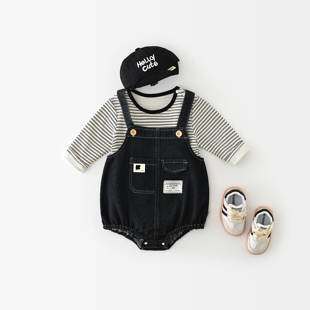 2025 봄 신생아 한국 바지 0-3 세 소년 소녀 포켓 라벨 겉옷 데님 멜빵 51015