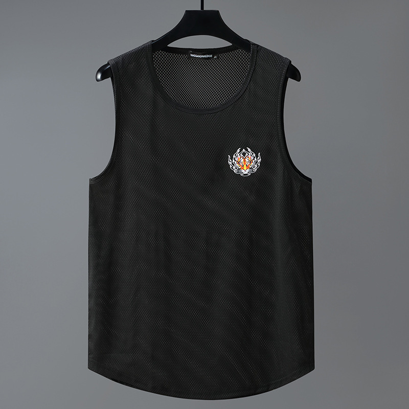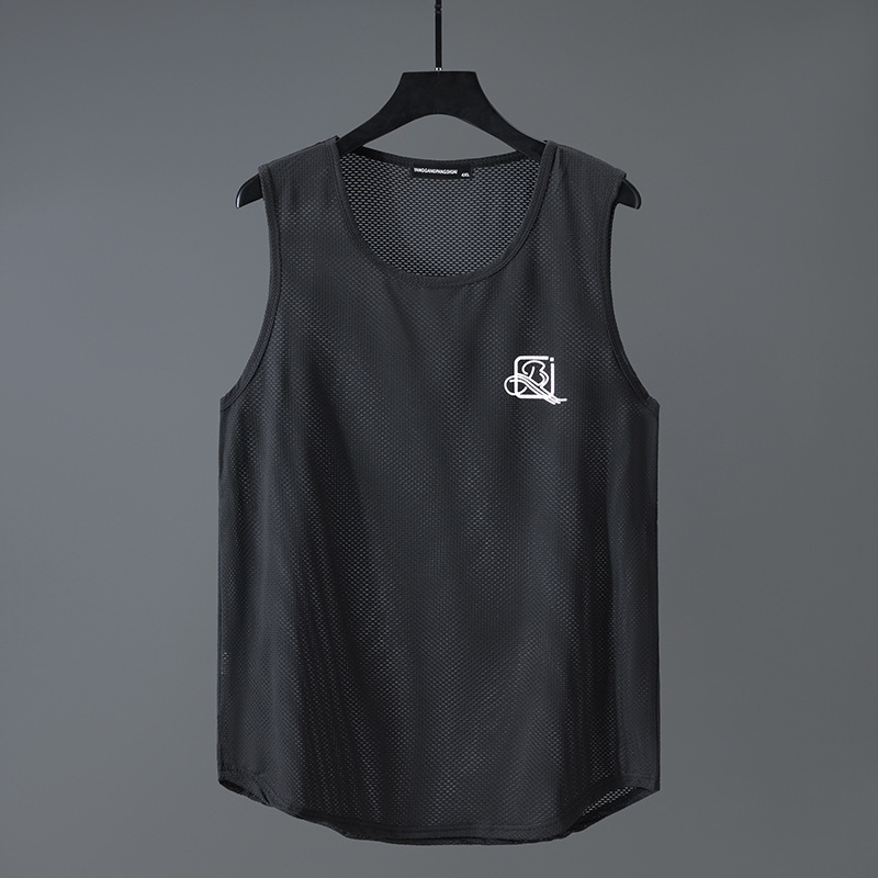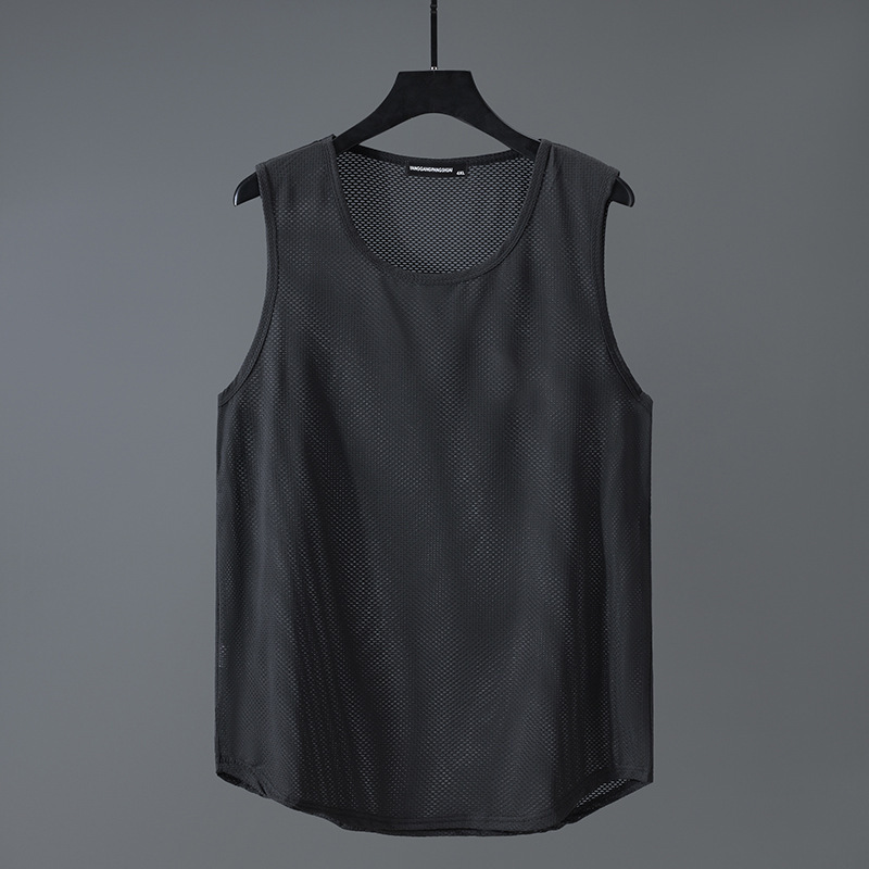 여름 남자 조끼 중공 메쉬 플러스 사이즈 통기성 민소매 빠른 건조 옷 스포츠 라운드 넥베이스 스웨트 셔츠 2025스토어 가기