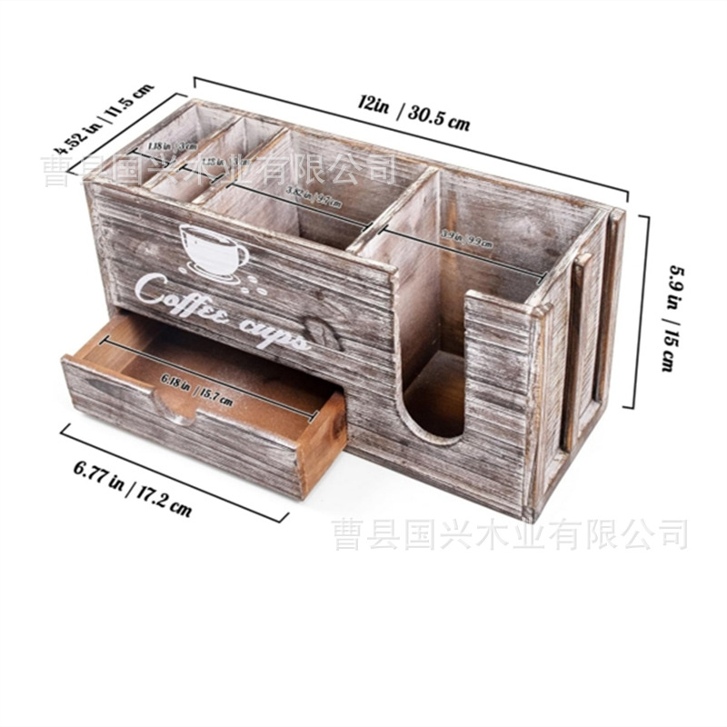 나무 커피 상자 국가 빈티지 바 장식품 커피 캡슐 저장 상자 종이컵 홀더 멀티 그리드 단단한 나무 저장 상자