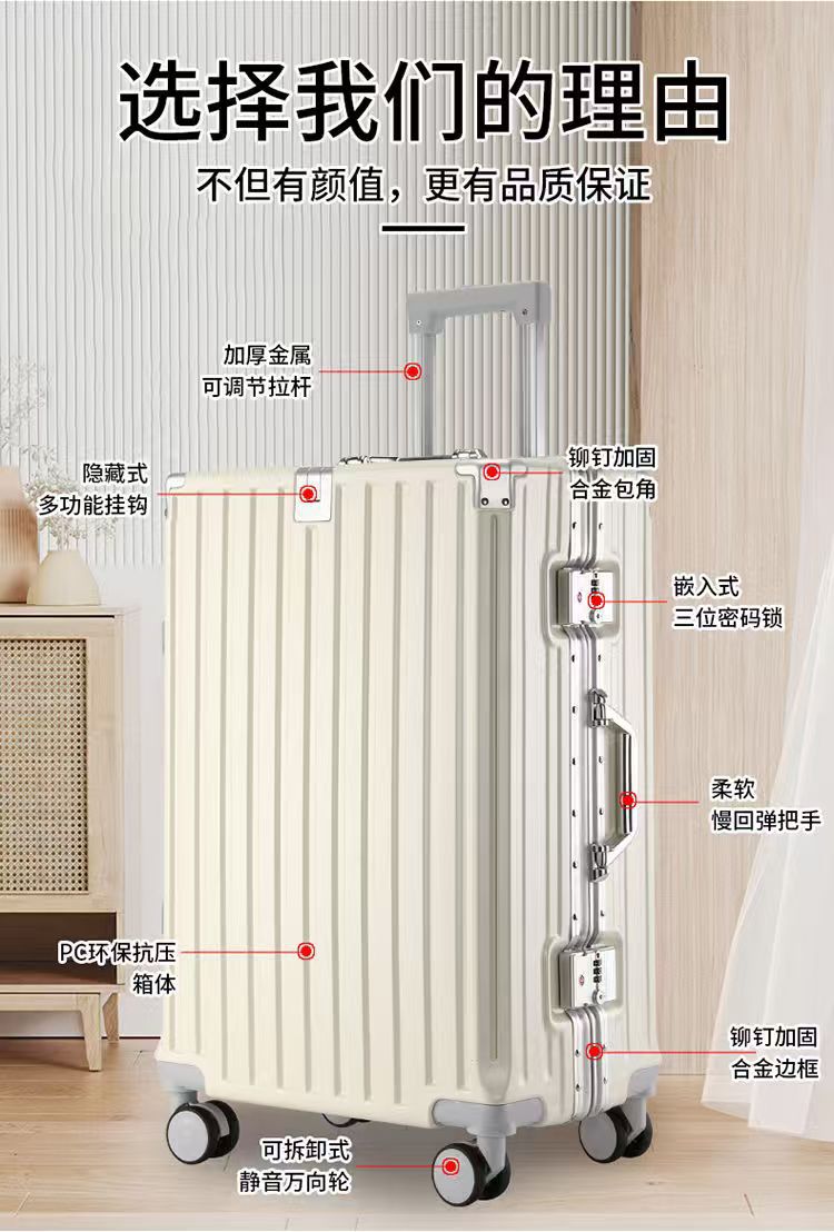 강력하고 튼튼한 수하물 케이스 24 인치 소년 유니버설 휠 남자 알루미늄 프레임로드 비밀번호 여행 28 인치 대용량 수하물