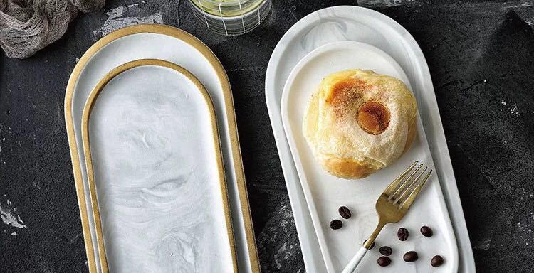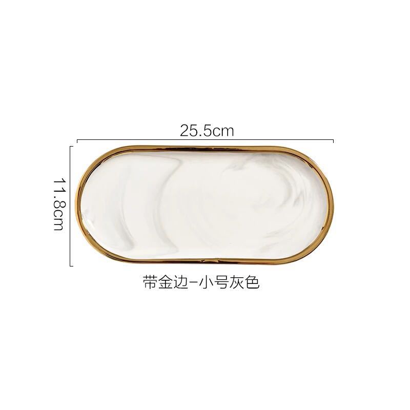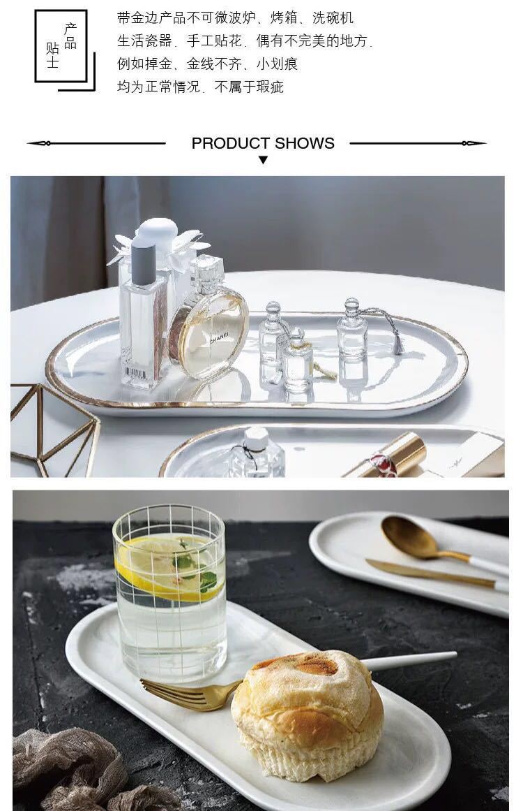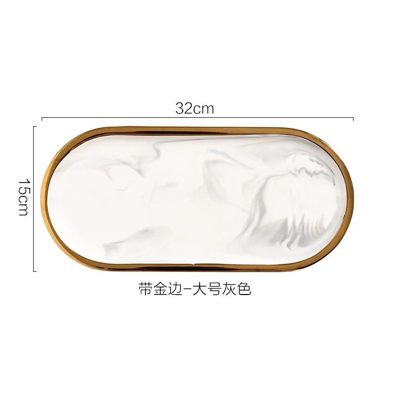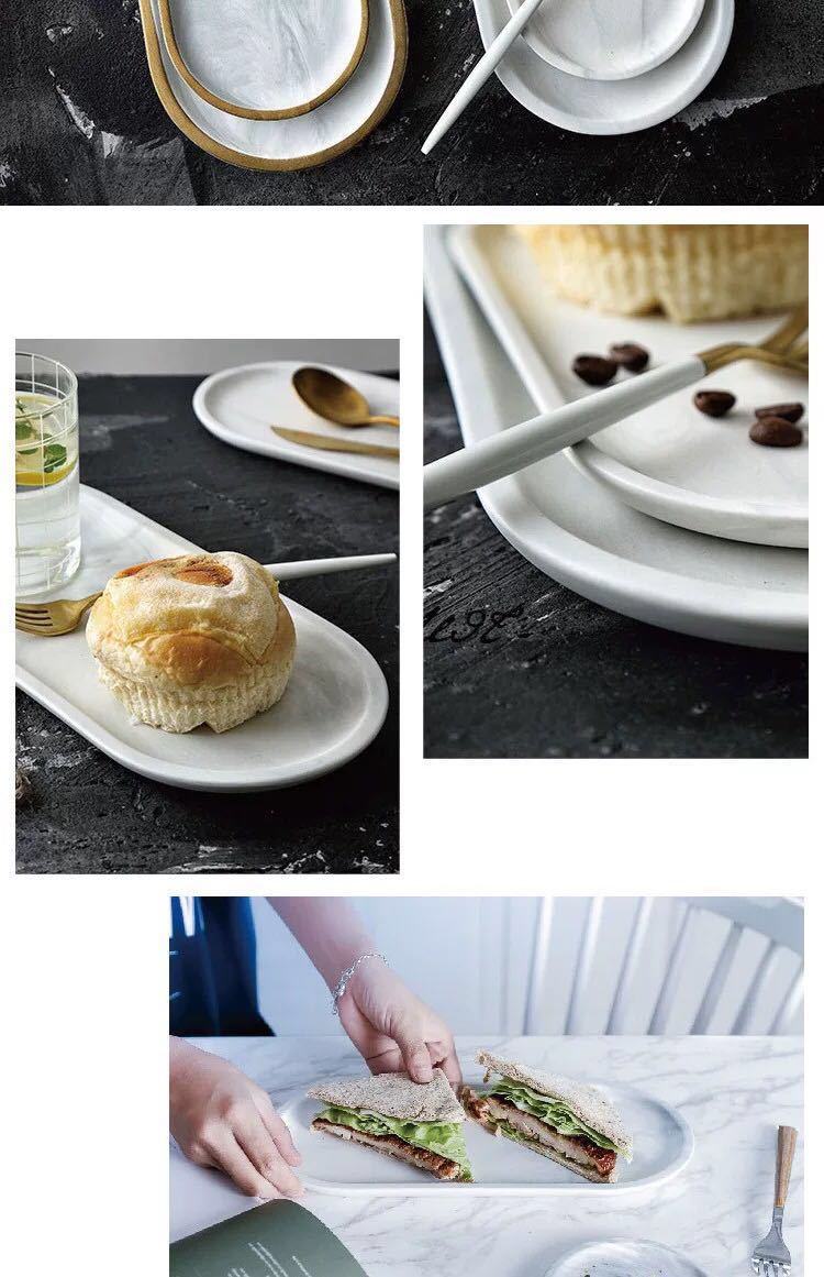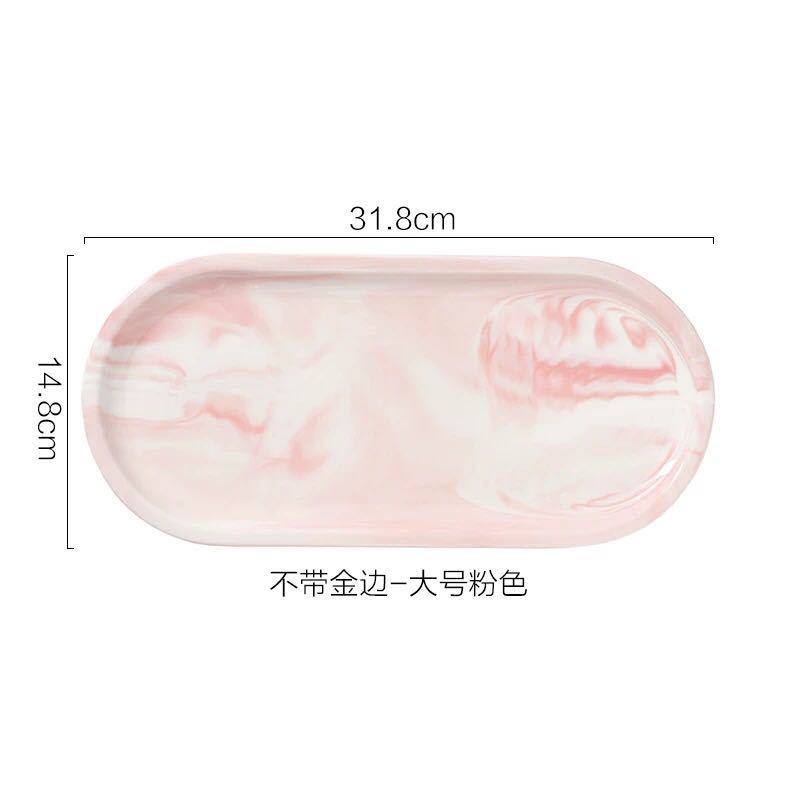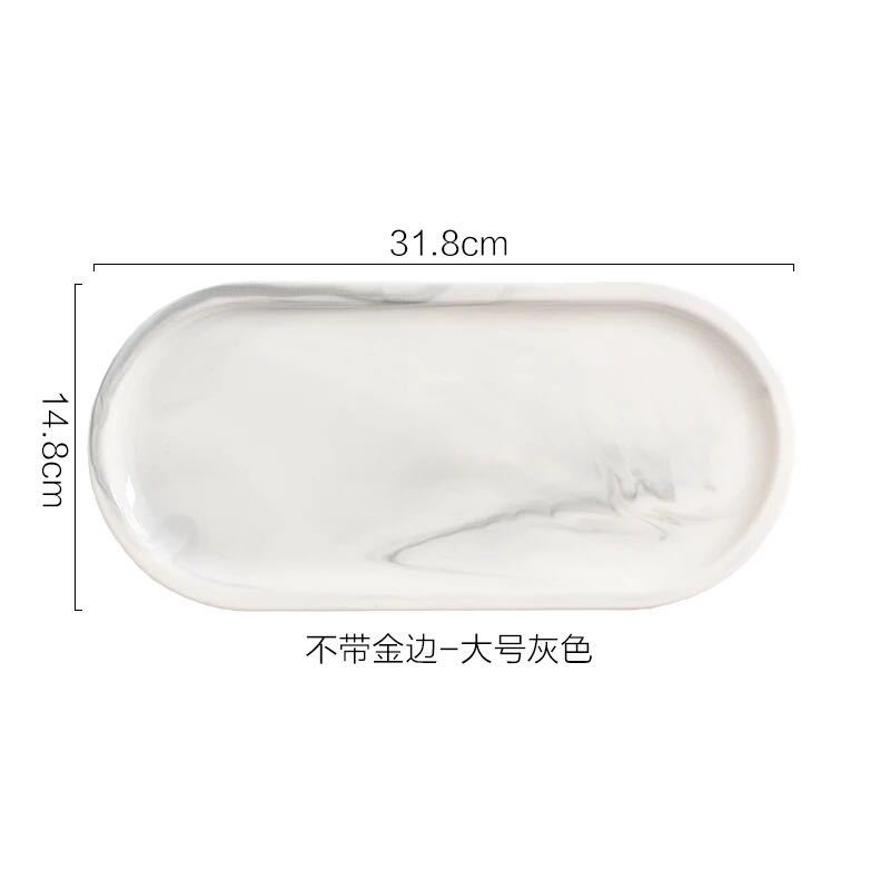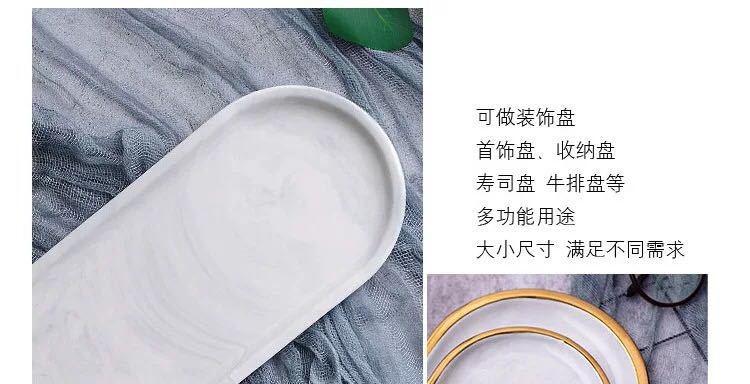 인즈 북유럽 대리석 패턴 프놈펜 세라믹 타원형 플레이트 서양 푸드 플레이트 디저트 플레이트 쥬얼리 스토리지 플레이트 트레이
