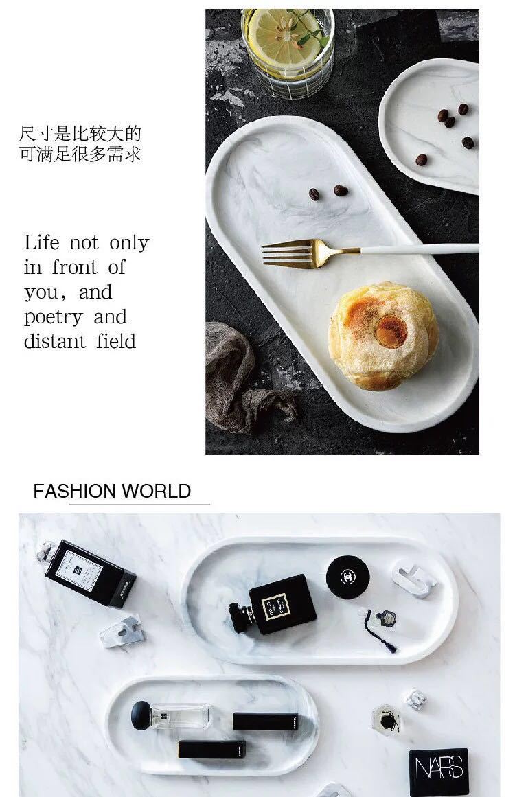 인즈 북유럽 대리석 패턴 프놈펜 세라믹 타원형 플레이트 서양 푸드 플레이트 디저트 플레이트 쥬얼리 스토리지 플레이트 트레이스토어 가기