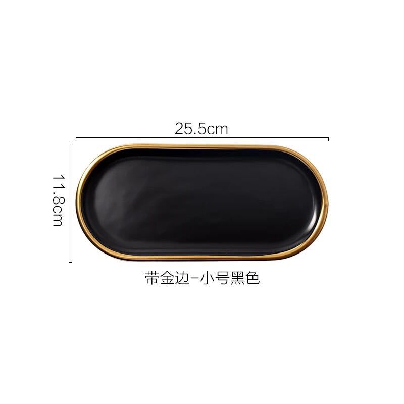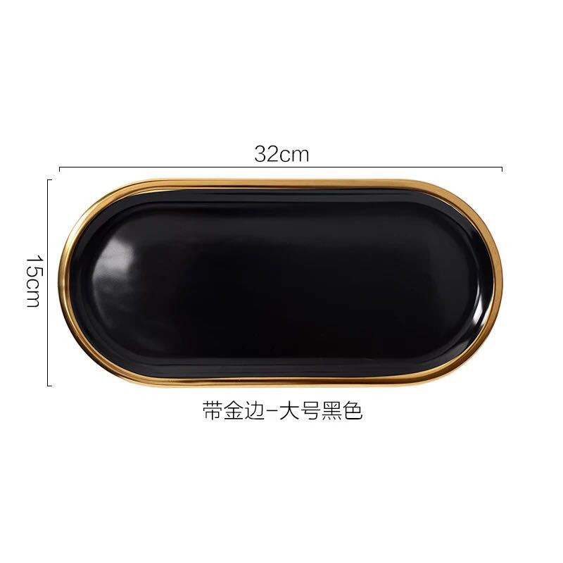 • 그레이 골드 테두리의 대형 타원형 플레이트