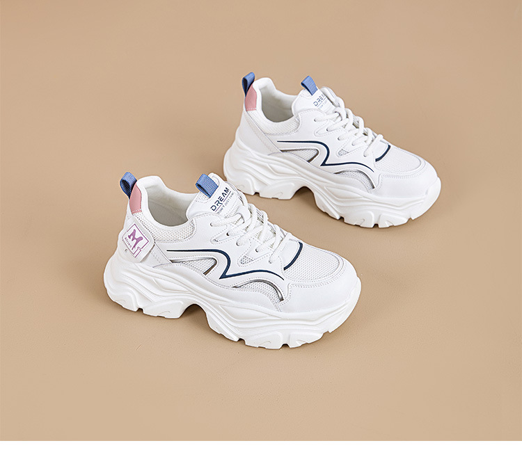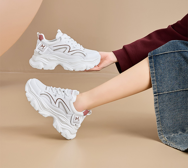 여성용 천연가죽 두꺼운 밑창의 런닝화, 2026년 신상 여름 키높이 메쉬 통기성 만능 스포츠 캐주얼 경량 인기 상품