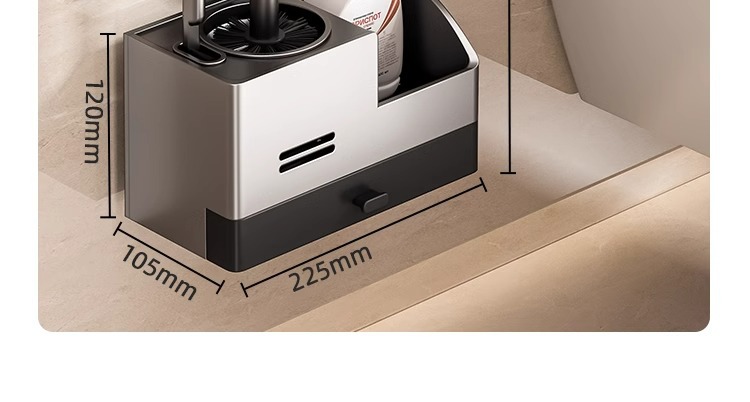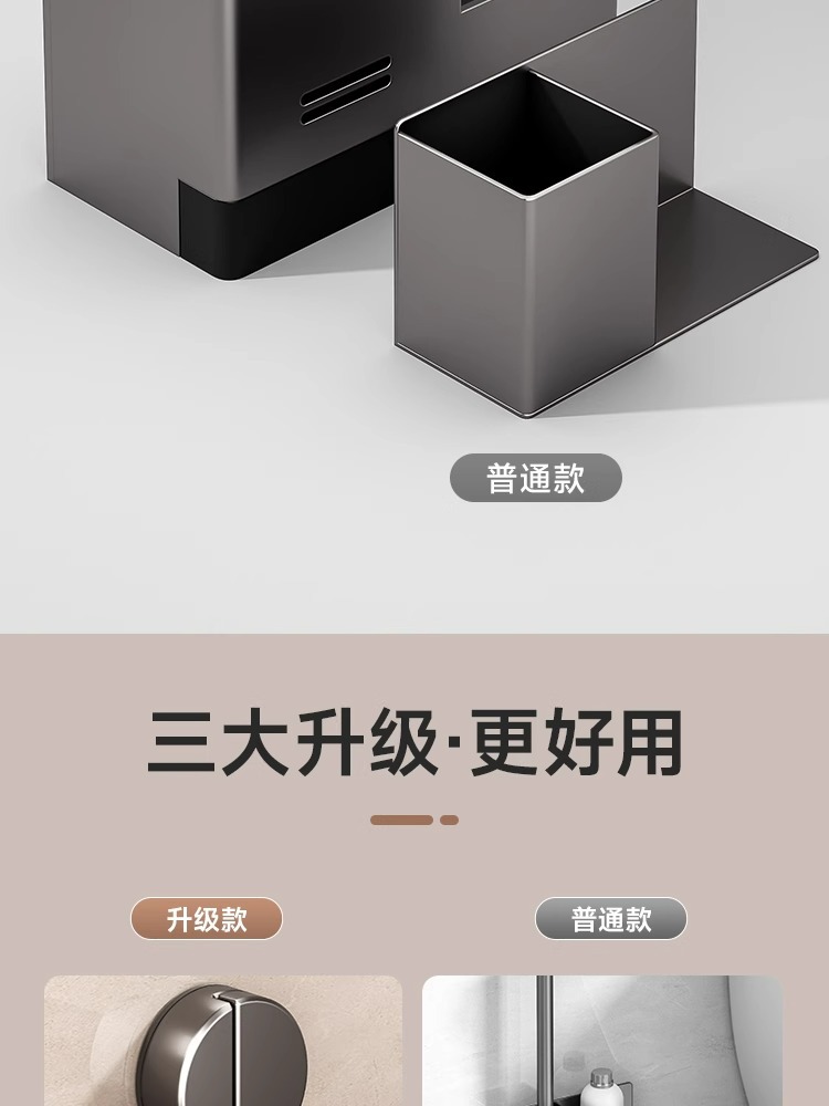 • 보관 및 배수 기능이 있는 흡입 컵 변기 브러시 - 건 그레이