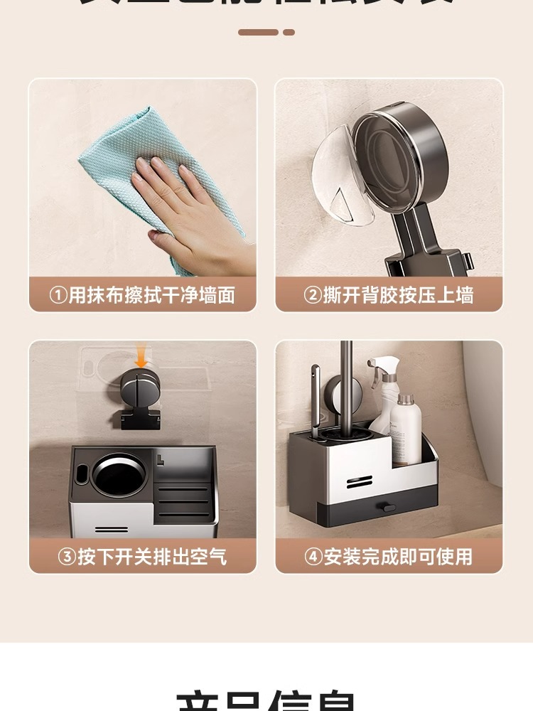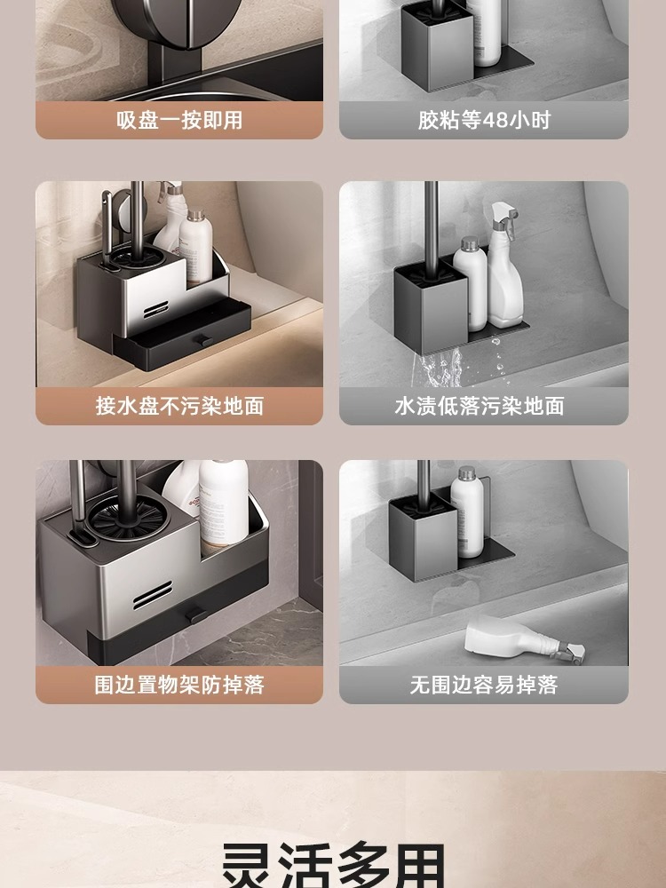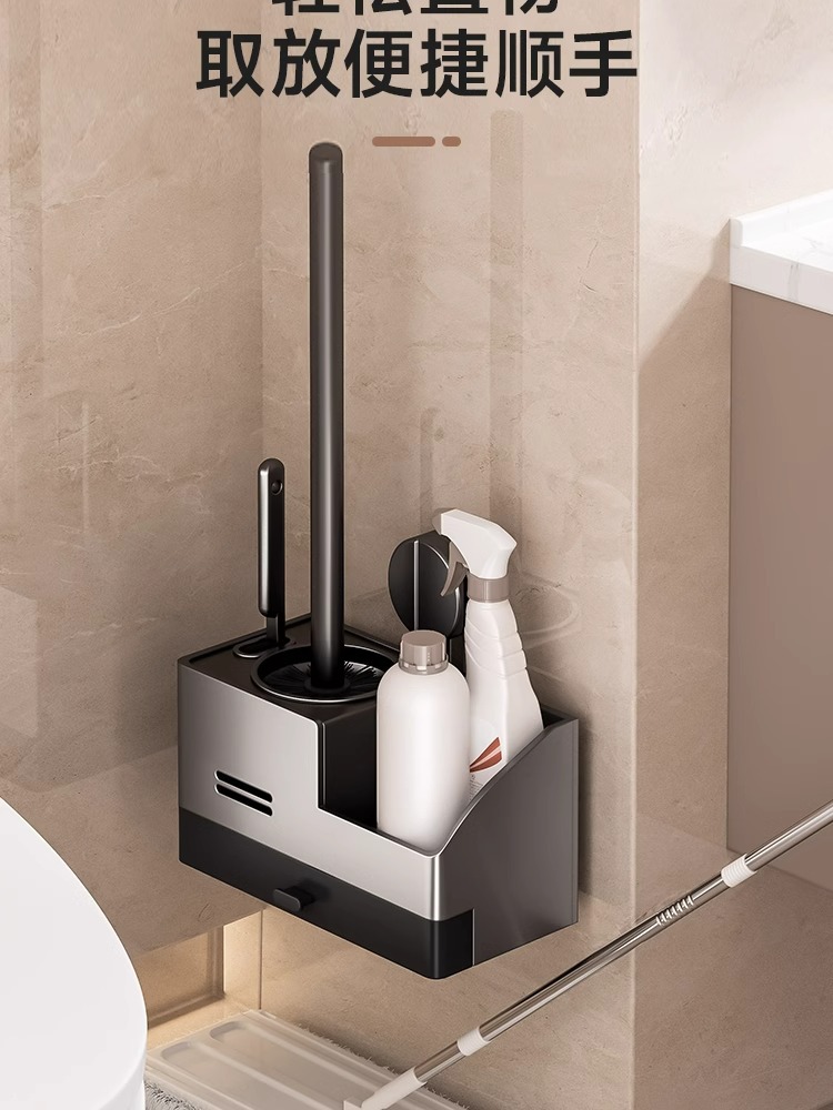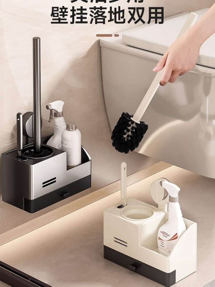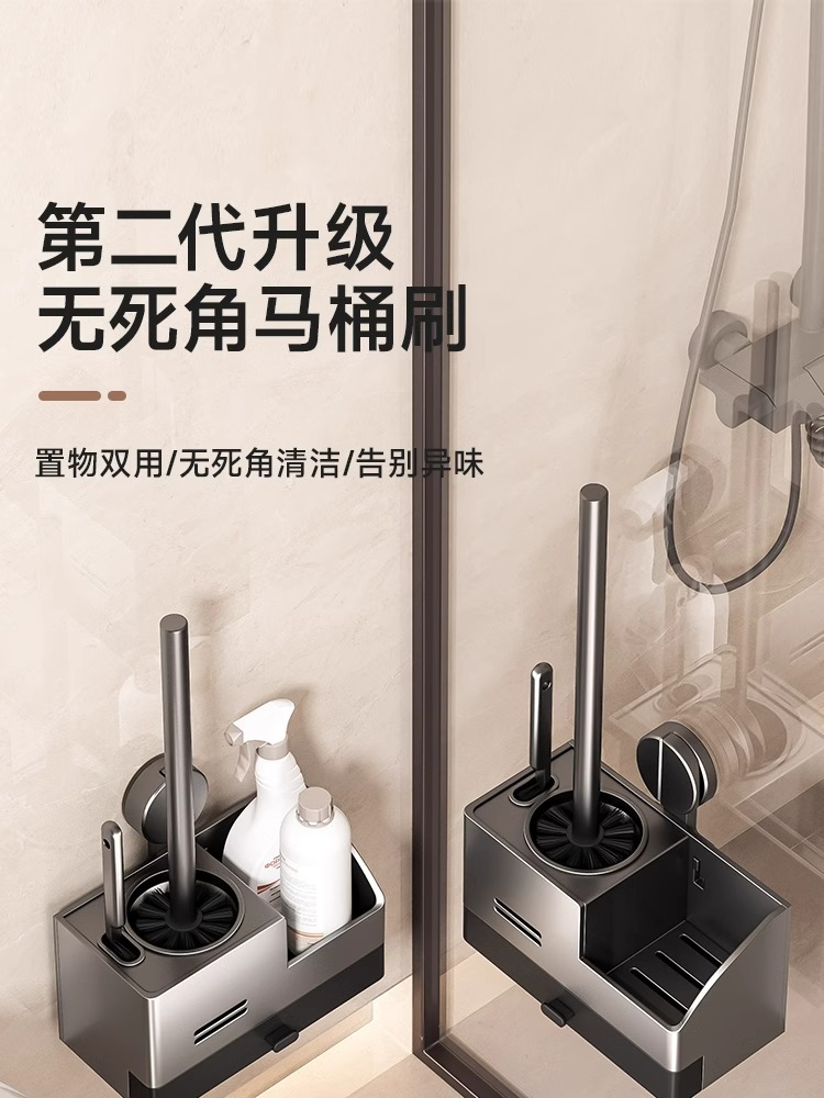 강력한 흡입 컵 화장실 브러시 가정용 비 죽은 각도 2025 새로운 펀치없는 벽 장착 청소 화장실 브러시