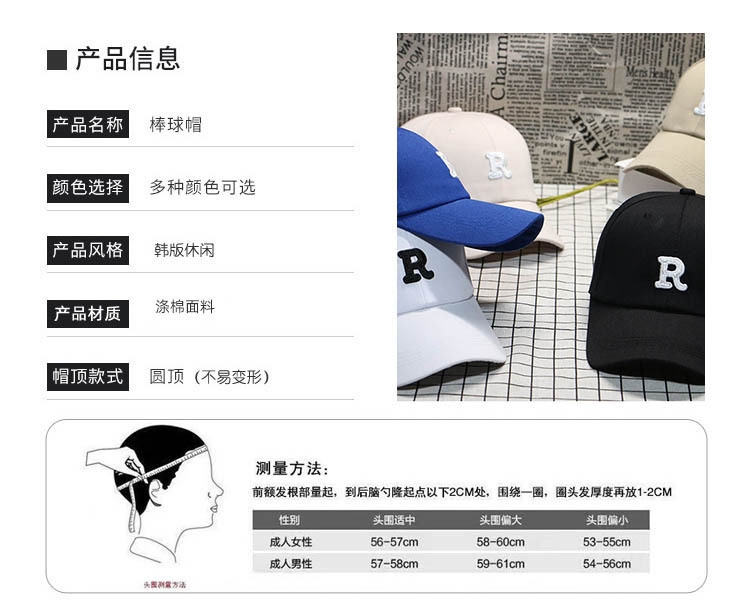 2024 새로운 스타일 캡 R 표준 하드 탑 빅 헤드 거스 남자 여름 한국 스타일 쇼페이스 작은 와이드 브림 남자와 여자 야구 모자