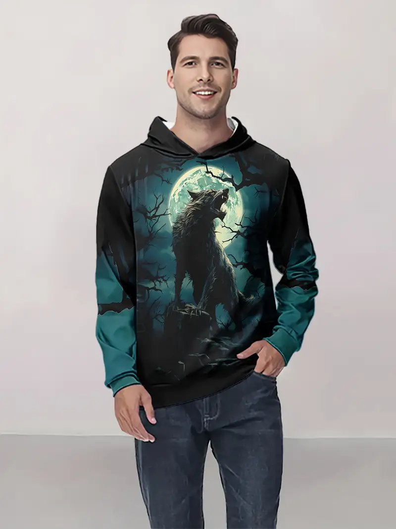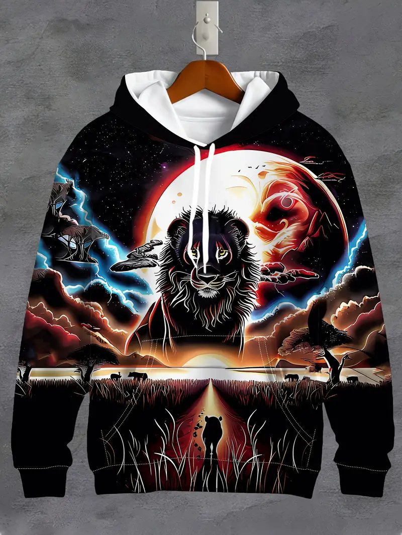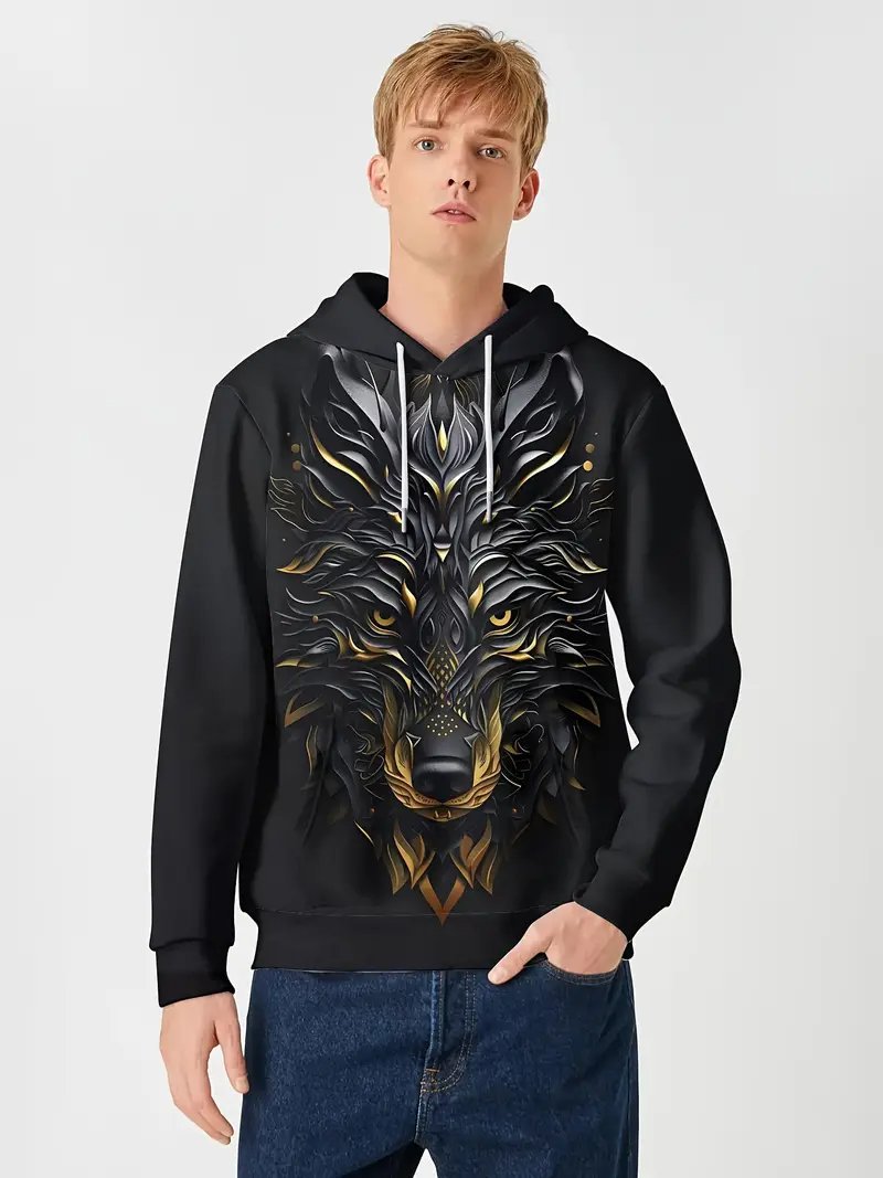 Temu 국경 남성 긴 소매 후드 3D 디지털 인쇄 사자 호랑이 늑대 프린트 스트리트 패션 스웨터스토어 가기