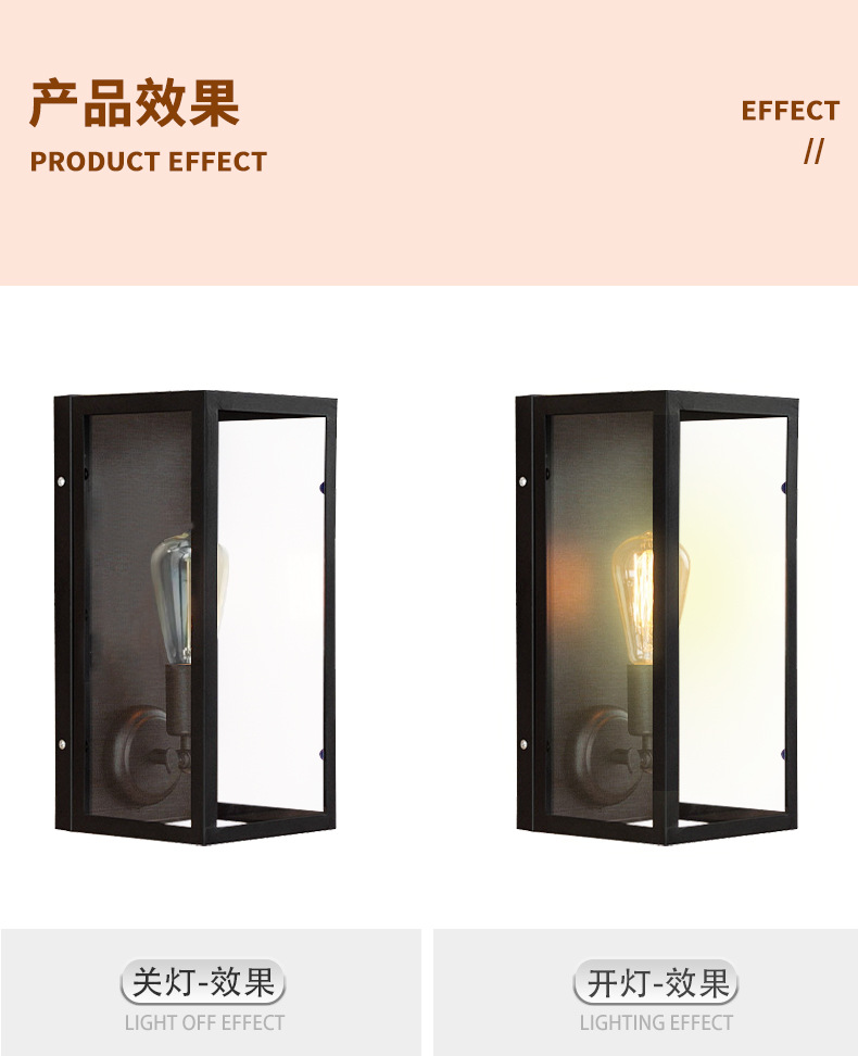 간단한 로프트 미국 산업 스타일 방수 야외 발코니 거실 침실 유리 상자 벽 램프