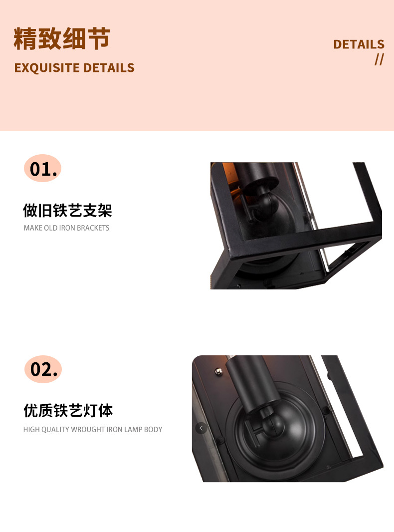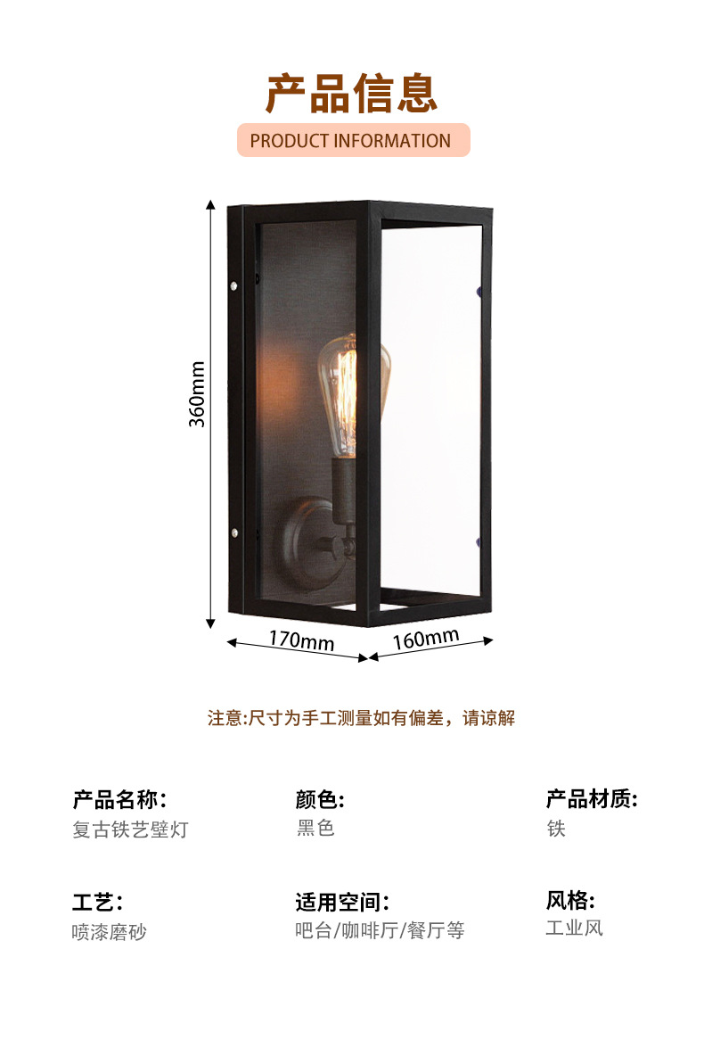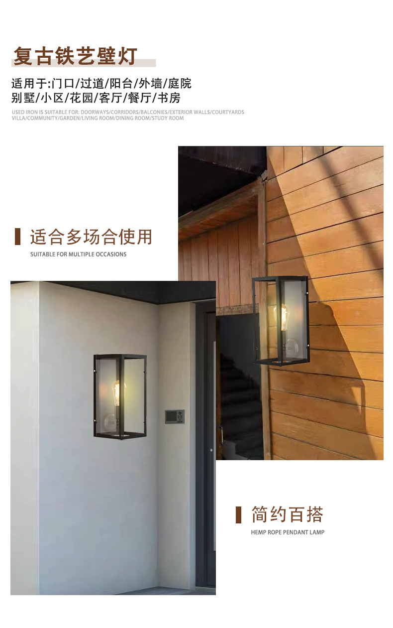 간단한 로프트 미국 산업 스타일 방수 야외 발코니 거실 침실 유리 상자 벽 램프스토어 가기