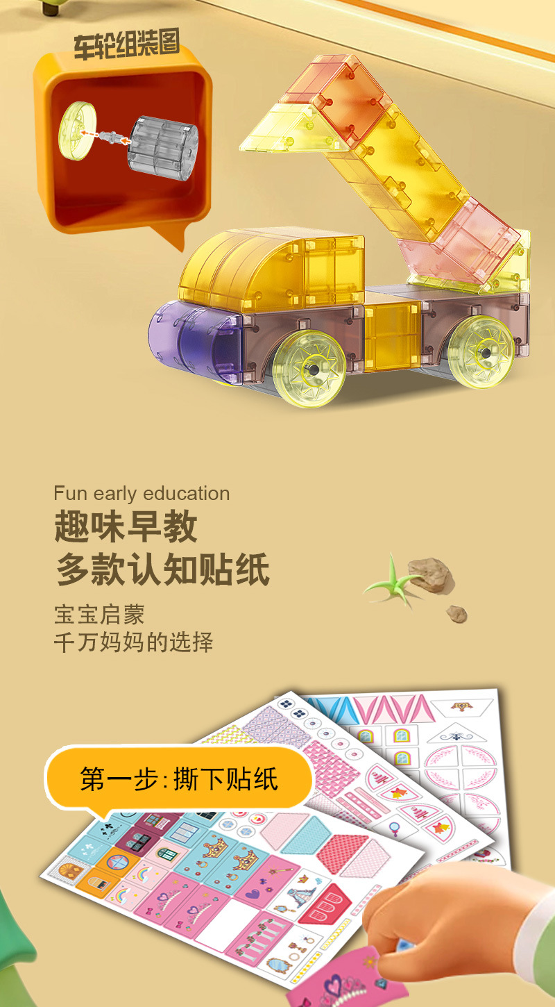 티그 기하학 자기 블록 빌딩 블록 조립 공학 차량 성 어린이 장난감 가변 자기 조각 교육 자석