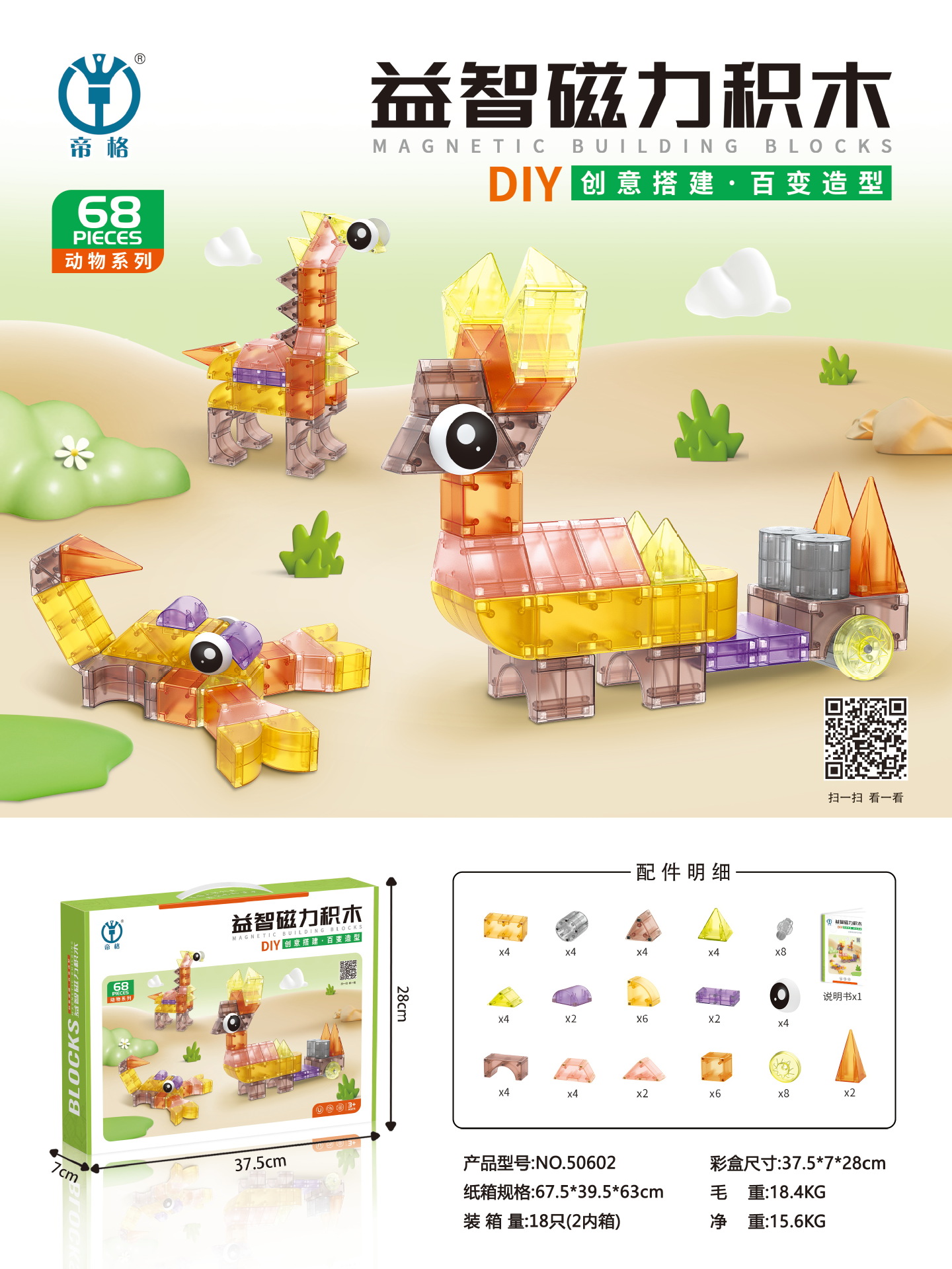 • 동물 시리즈-기하학 68PCS
