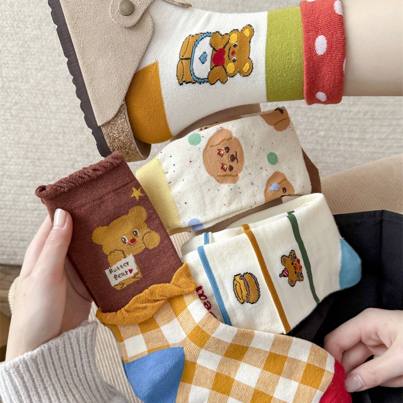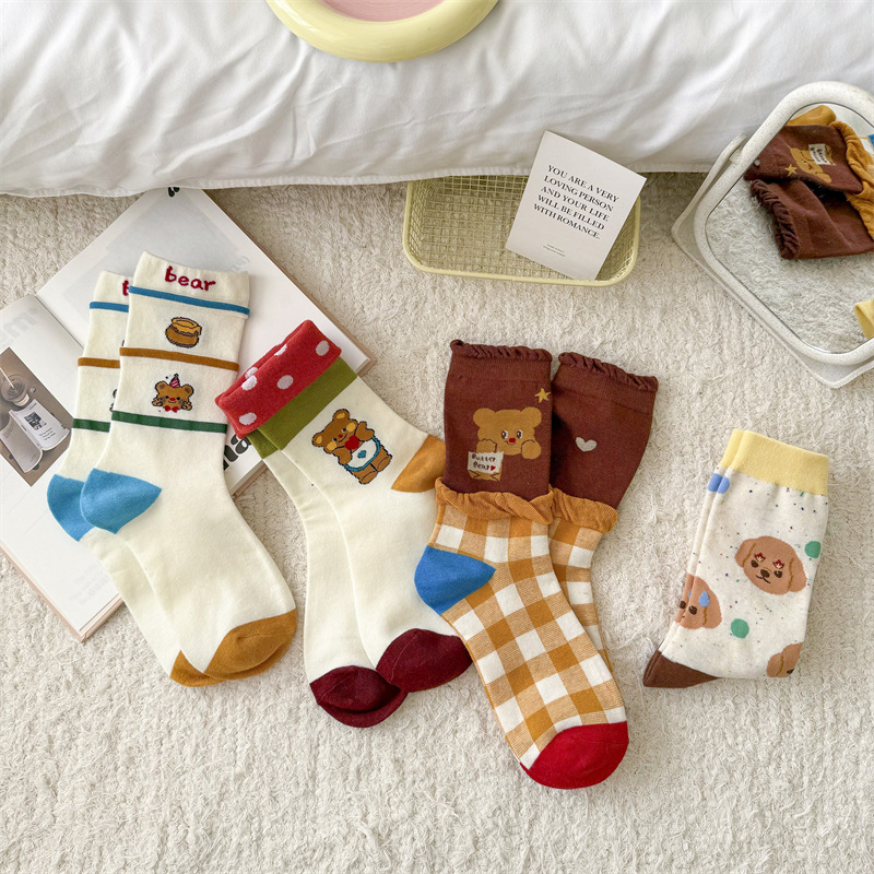 달콤한 만화 중간 스타킹 어린이 일본 만화 버터 베어 쿨 귀여운 퓨어 코튼 올매치 스타킹 학술 스타일 여성스토어 가기