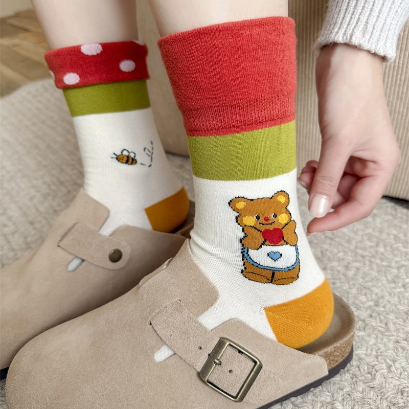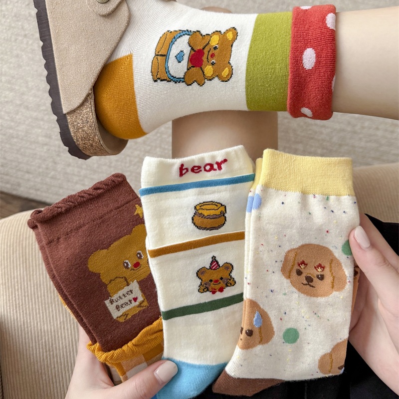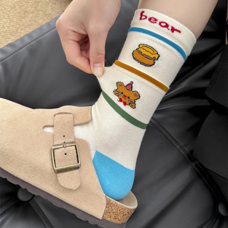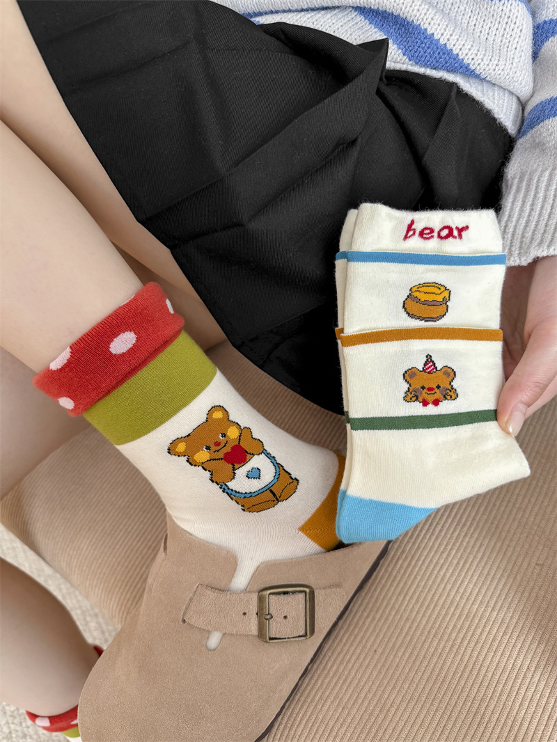 달콤한 만화 중간 스타킹 어린이 일본 만화 버터 베어 쿨 귀여운 퓨어 코튼 올매치 스타킹 학술 스타일 여성