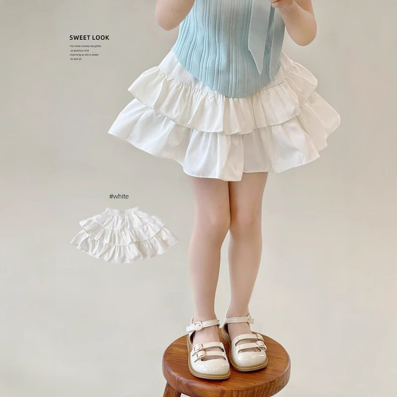 어린이 주름 케이크 치마 2025 여름 새 소녀 화이트 스커트 5 세 소녀 폰테 스커트 공주 치마스토어 가기
