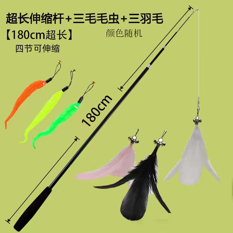 고양이 재미 스틱 긴 막대 개폐식 고양이의 장난감 깃털 슈퍼 긴 셀프-안녕 새끼 고양이 낚싯대 스틸 와이어 물린 방지 용품스토어 가기