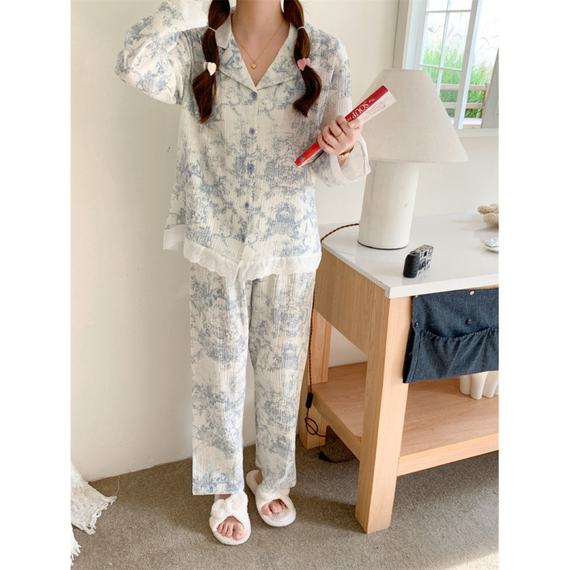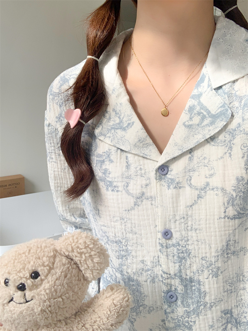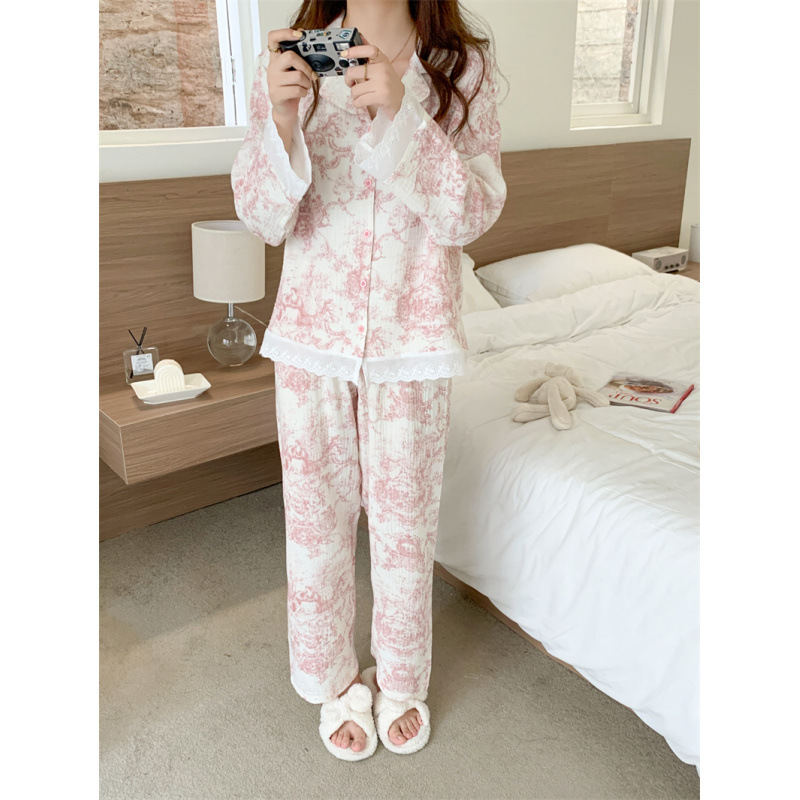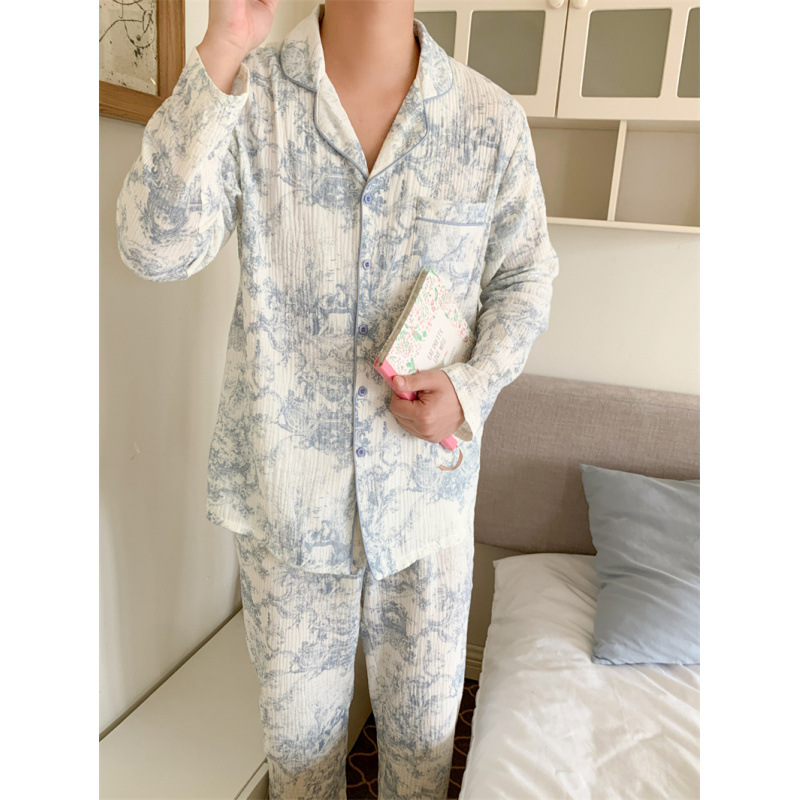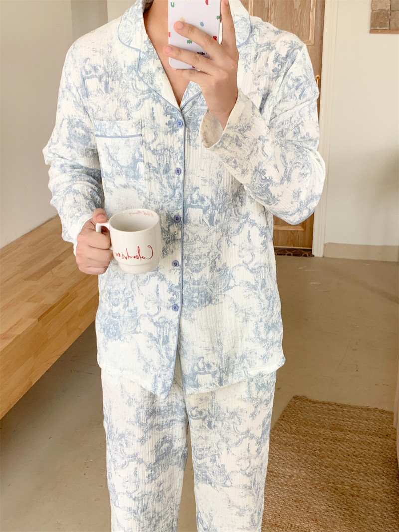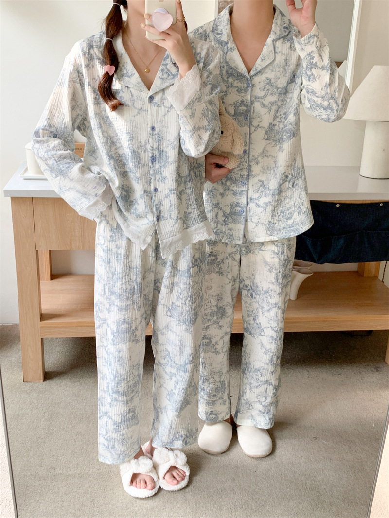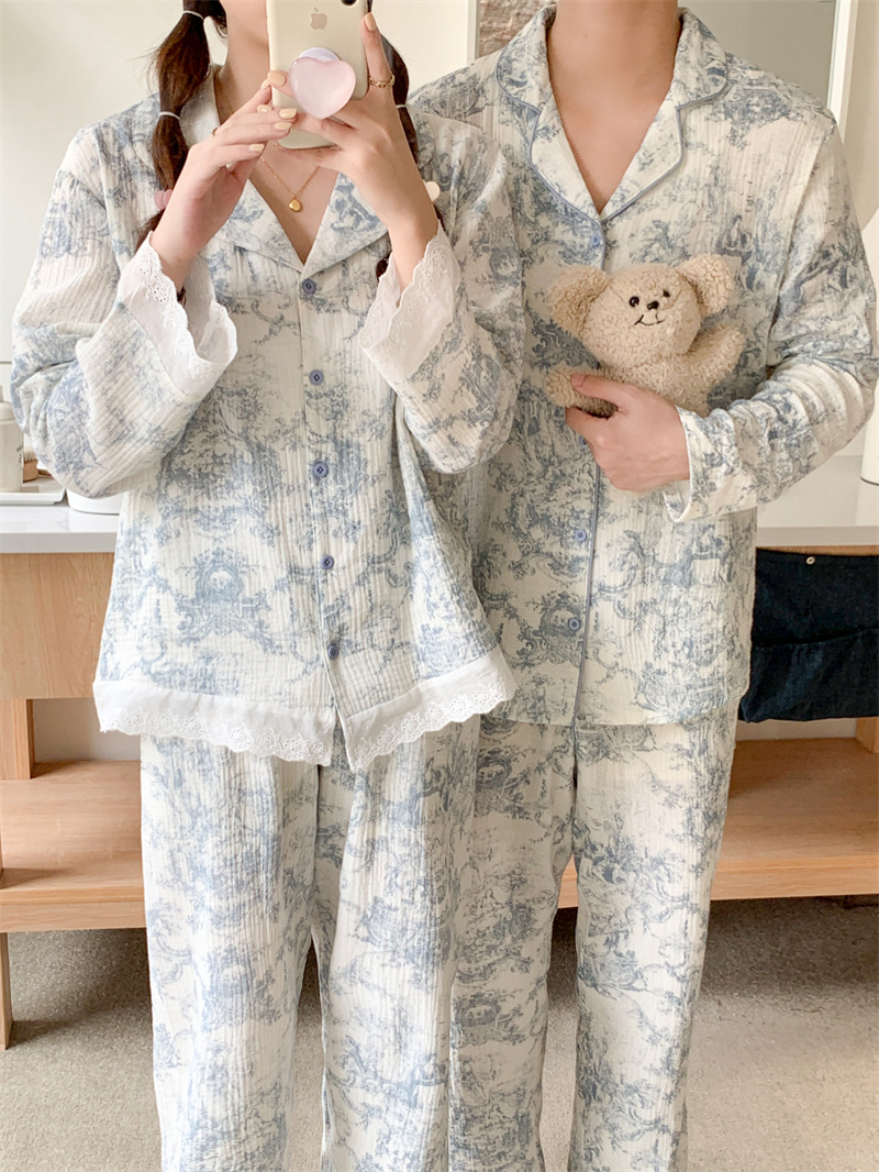 리얼 샷 2025 봄 새로운 연인은 캐주얼 느슨한 여성 한국 남성 긴팔 홈 의류 도매 착용