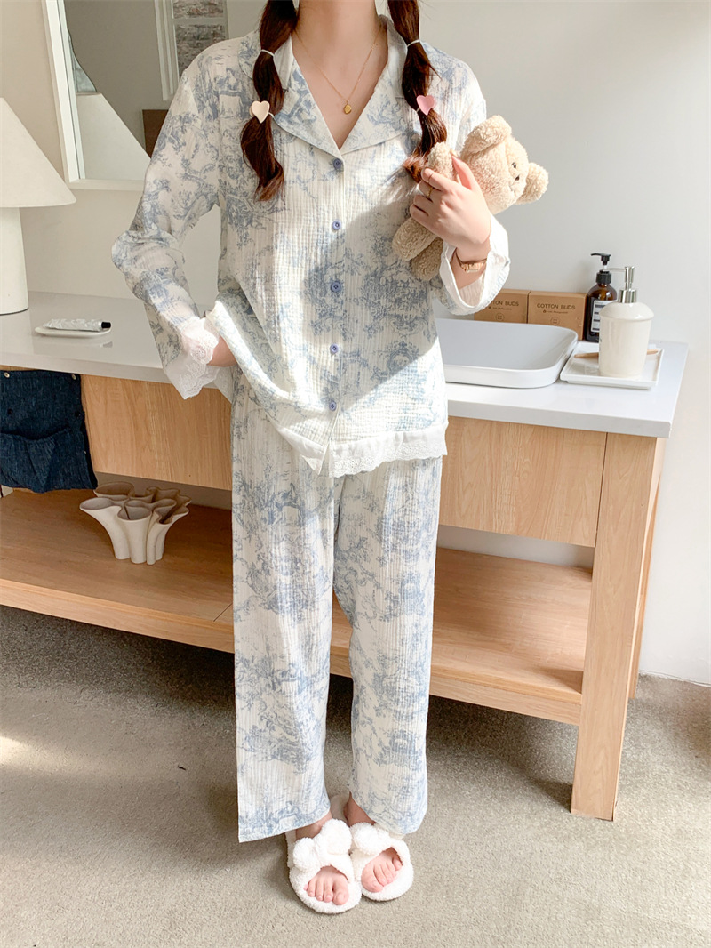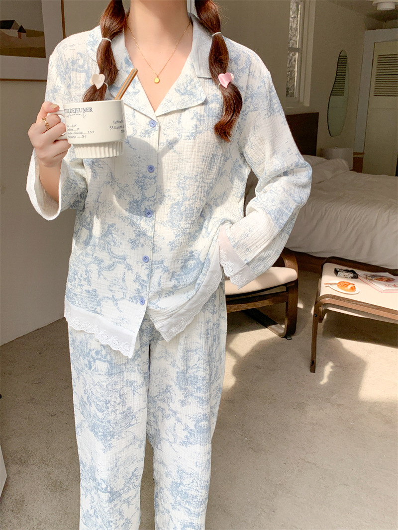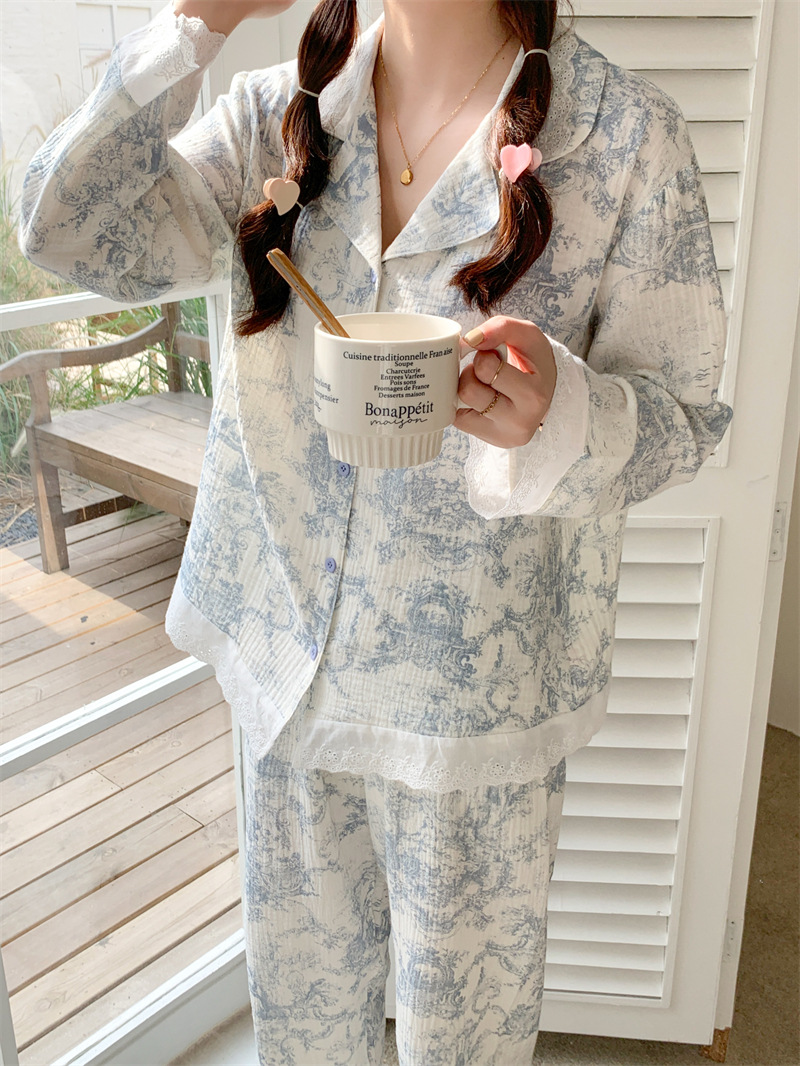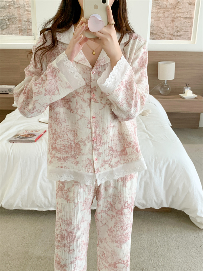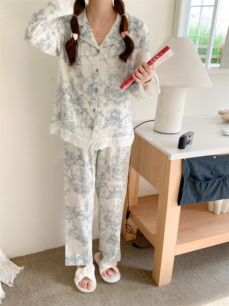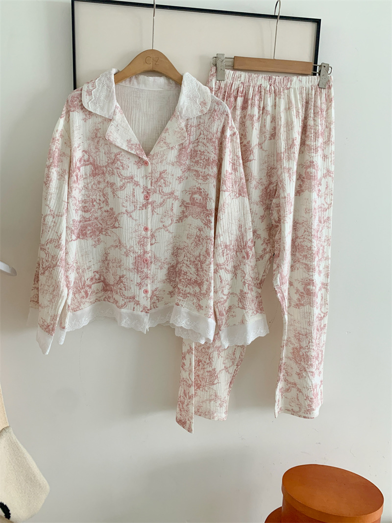 리얼 샷 2025 봄 새로운 연인은 캐주얼 느슨한 여성 한국 남성 긴팔 홈 의류 도매 착용