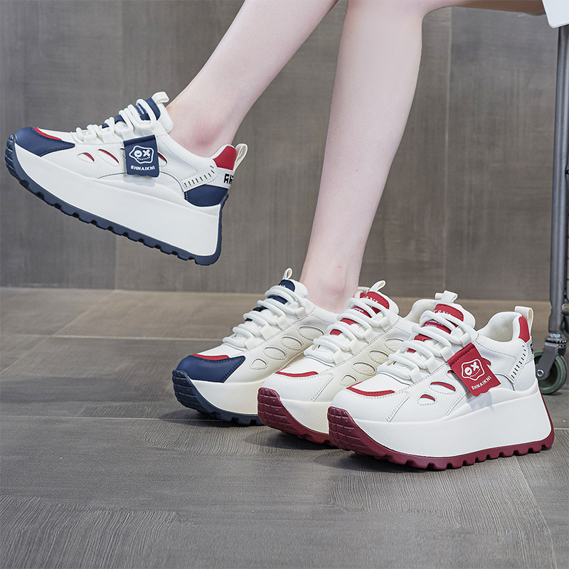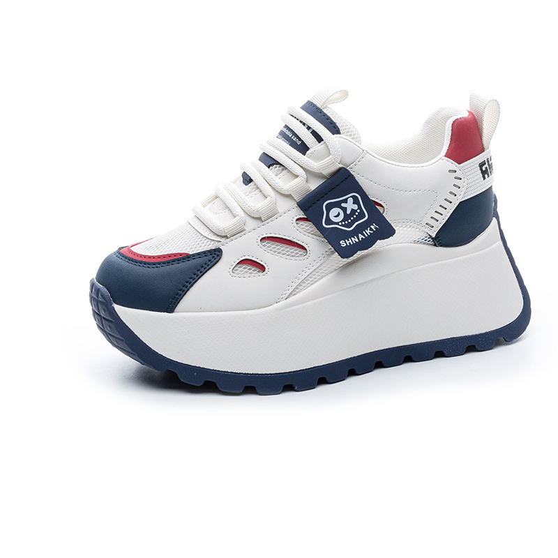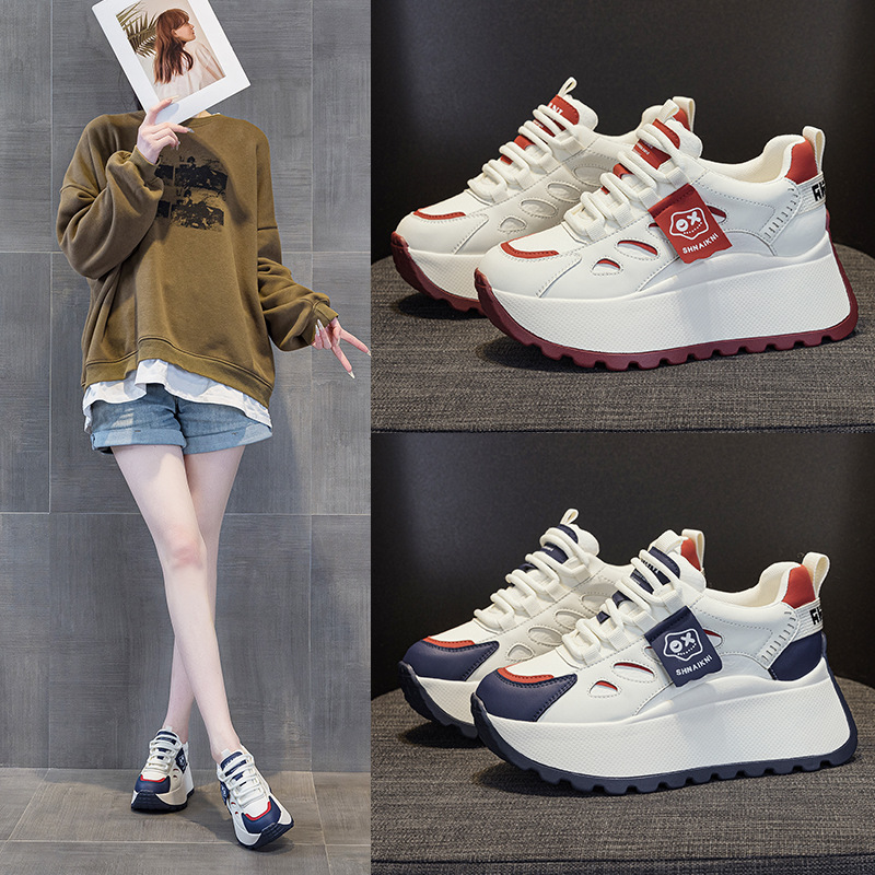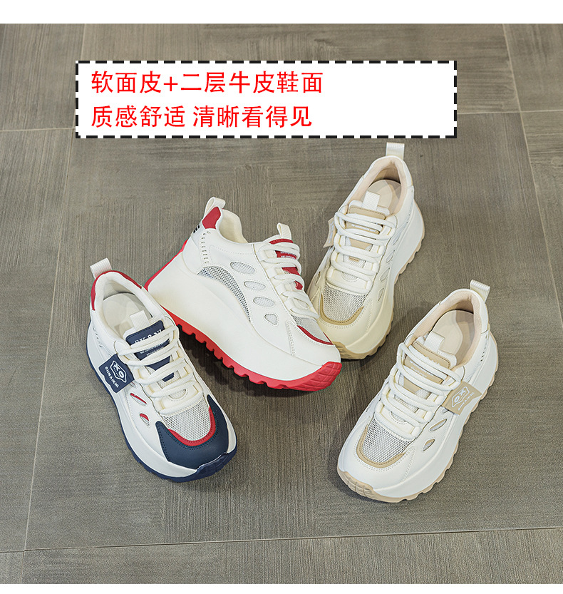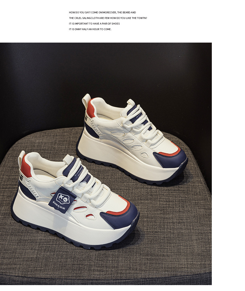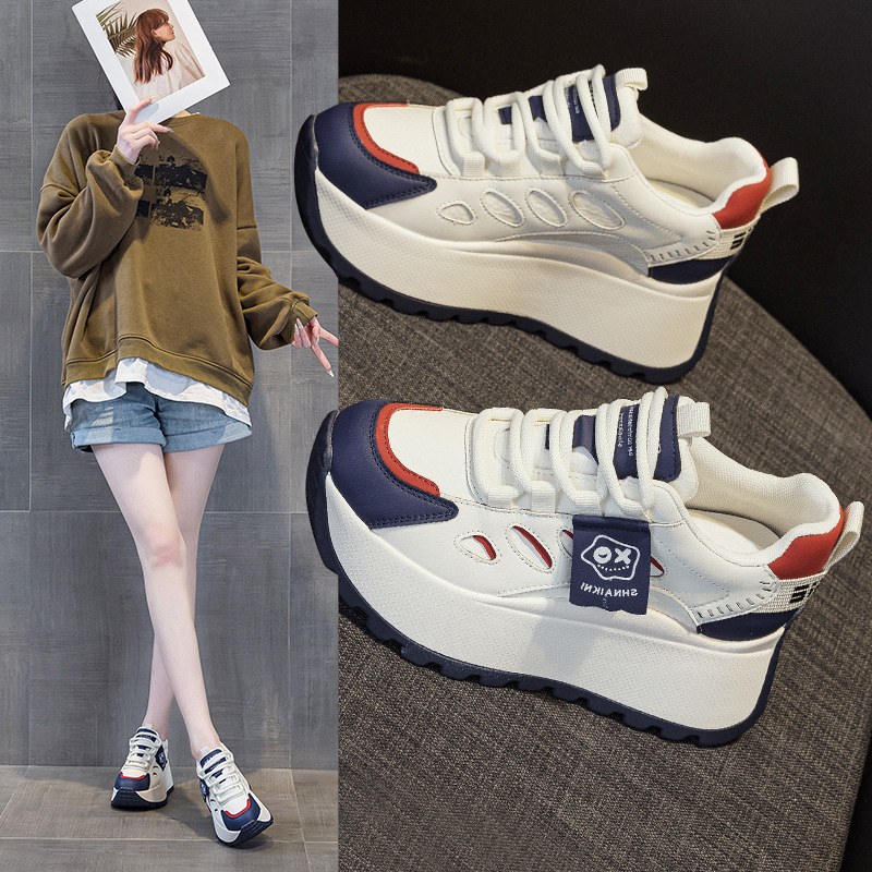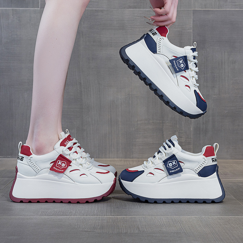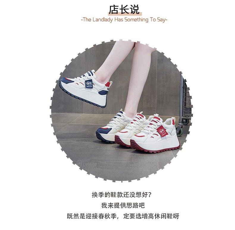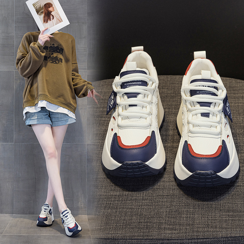 2025년 봄 신상 한국 스타일 캐주얼 키높이 두꺼운 밑창 아빠 신발 끈 묶는 배색 학생 신발 여성용 신발스토어 가기