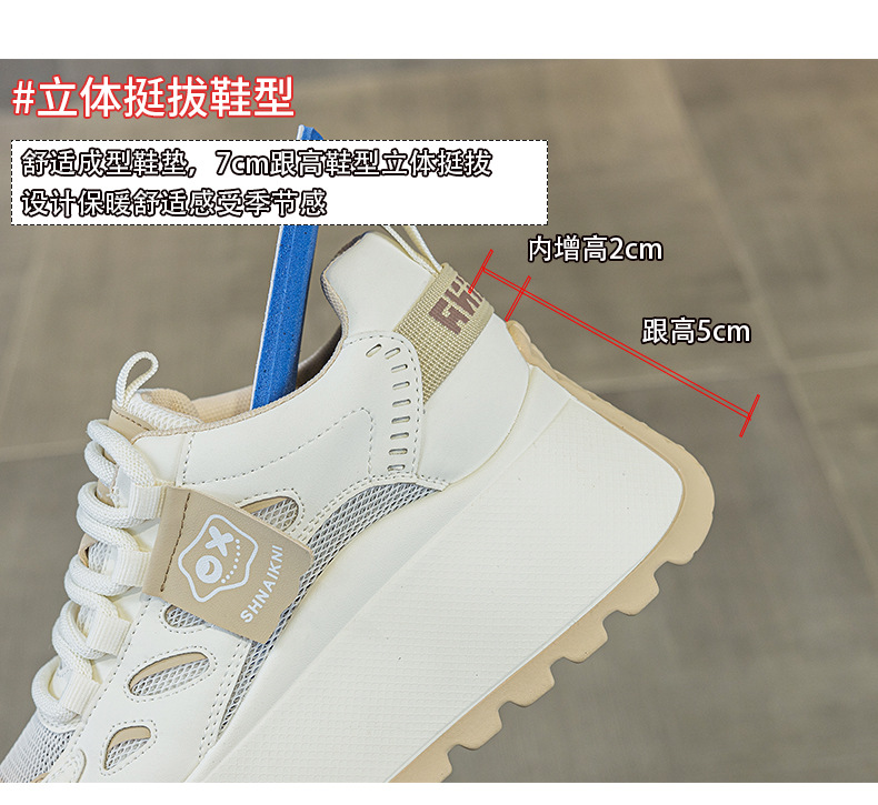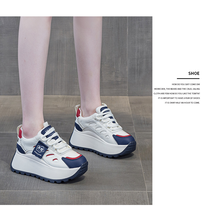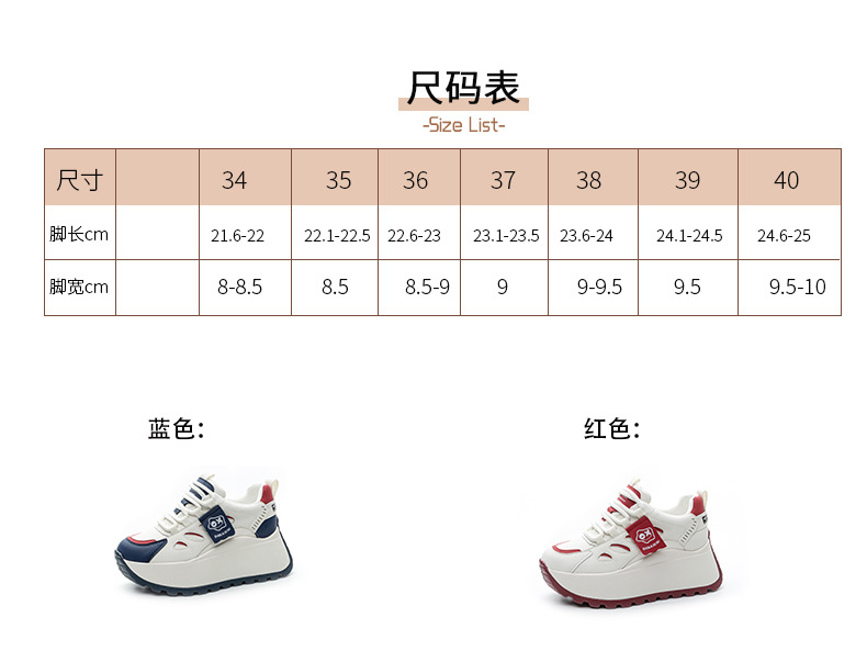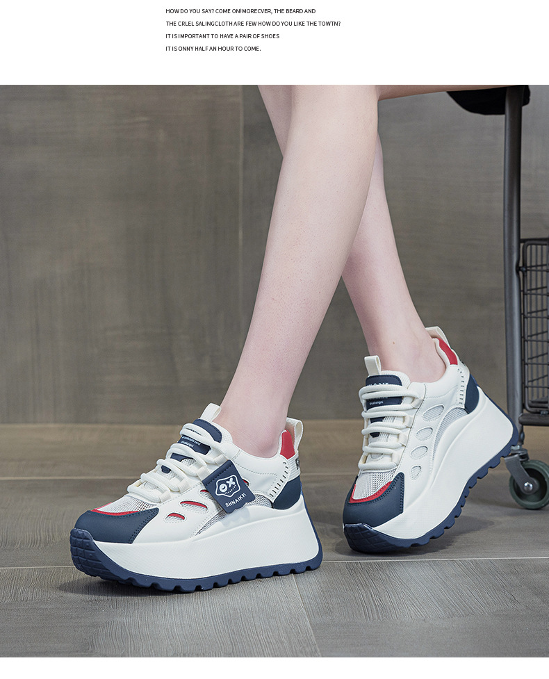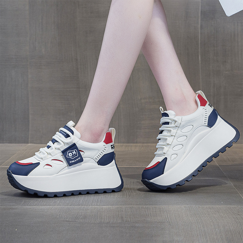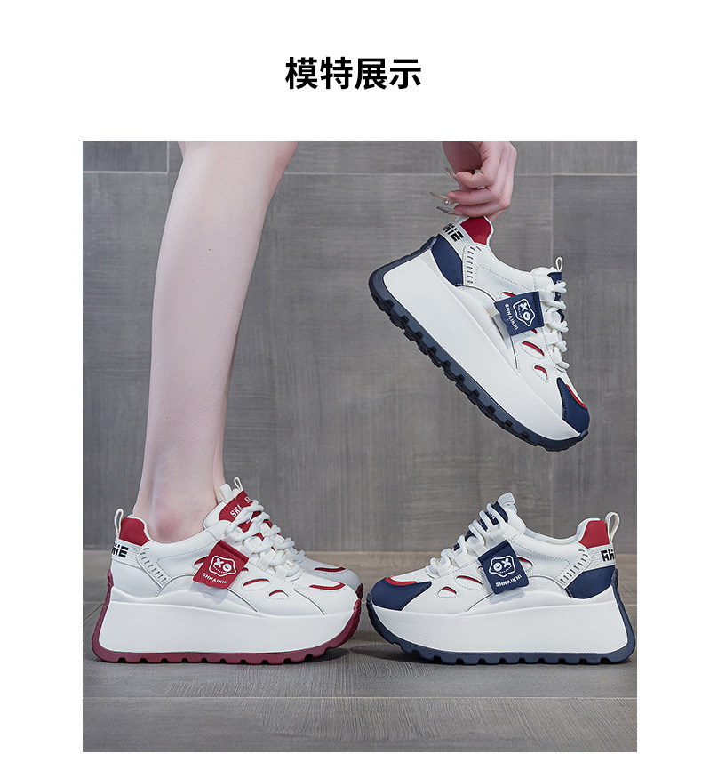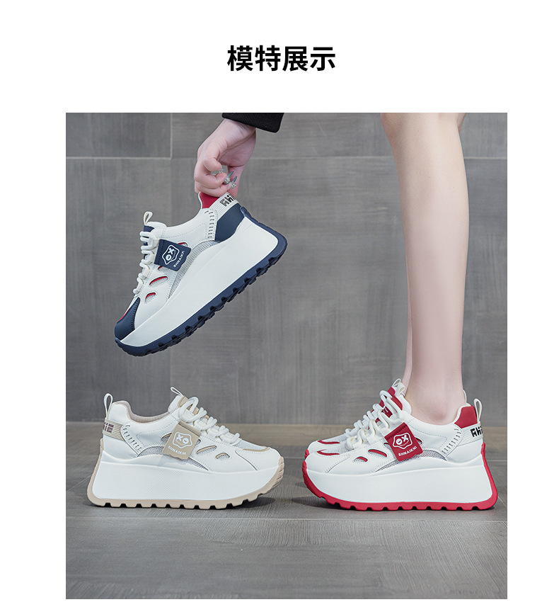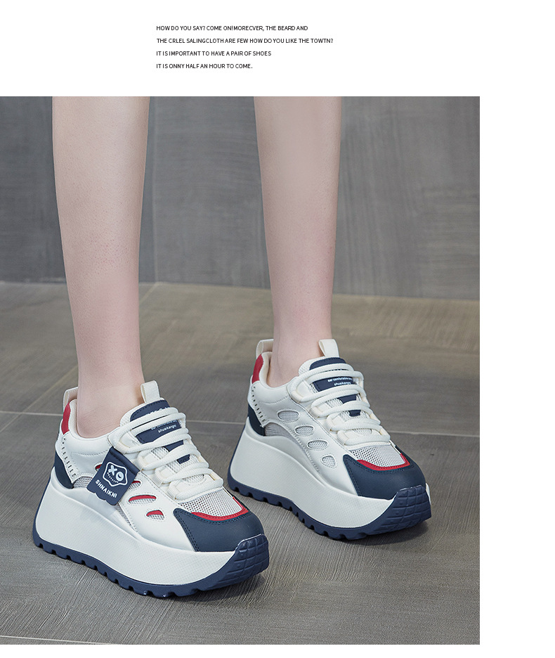 2025년 봄 신상 한국 스타일 캐주얼 키높이 두꺼운 밑창 아빠 신발 끈 묶는 배색 학생 신발 여성용 신발스토어 가기