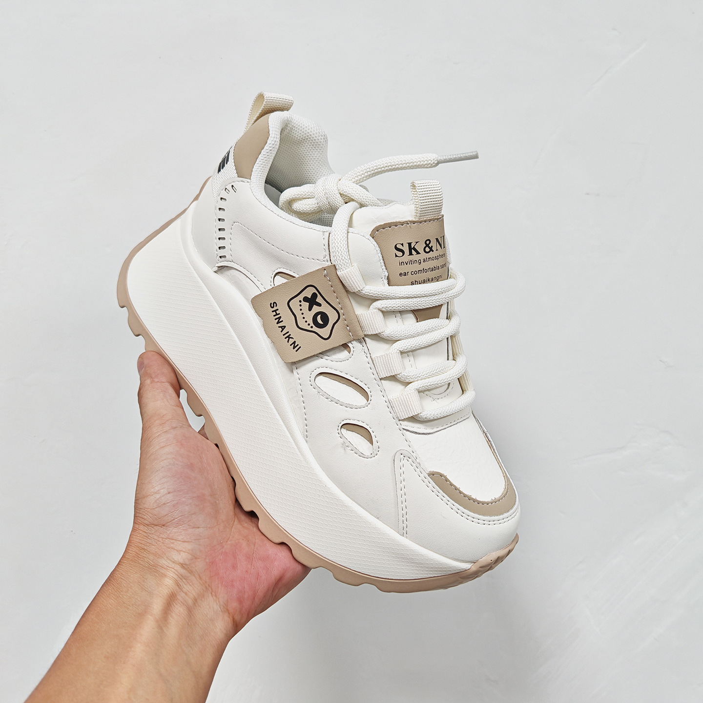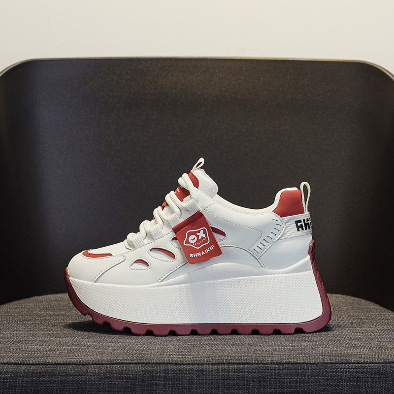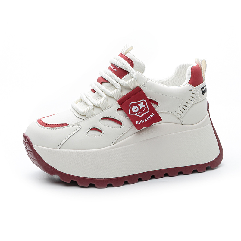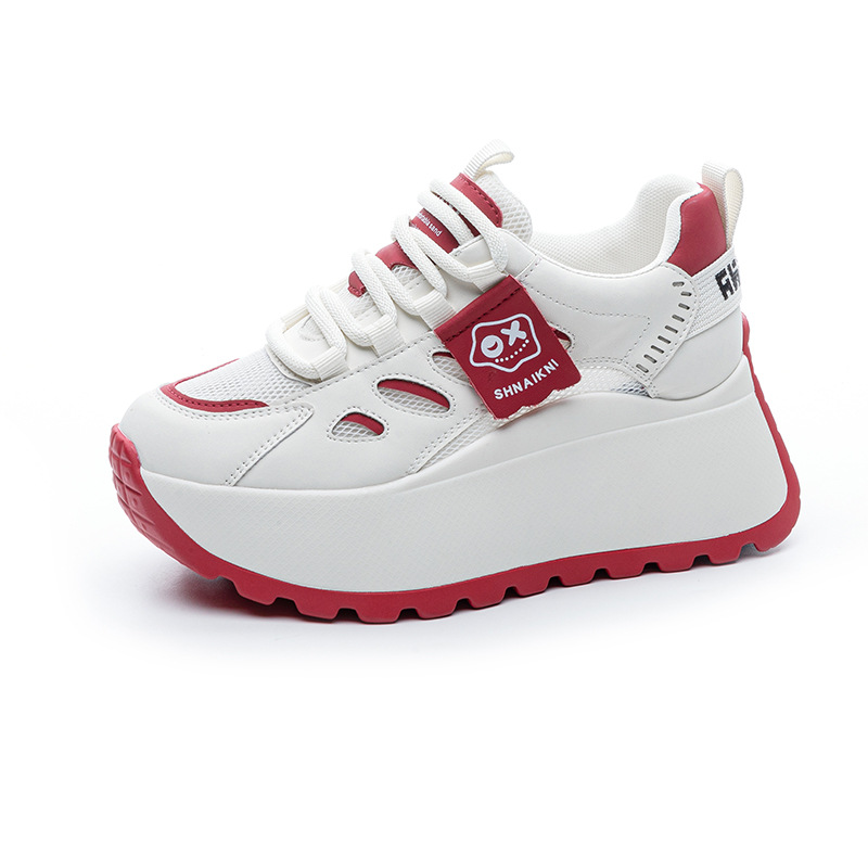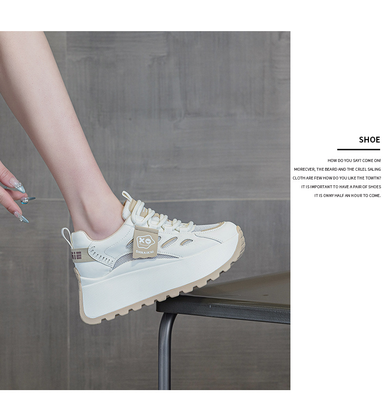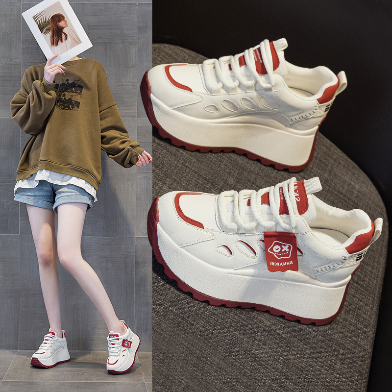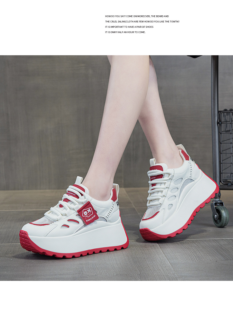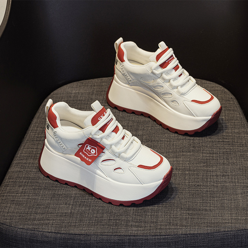 2025년 봄 신상 한국 스타일 캐주얼 키높이 두꺼운 밑창 아빠 신발 끈 묶는 배색 학생 신발 여성용 신발스토어 가기