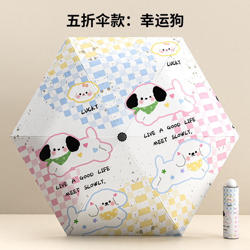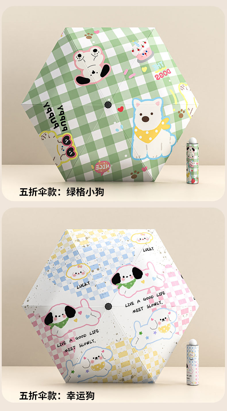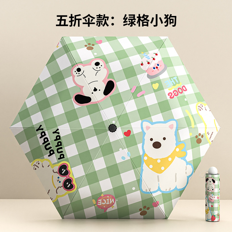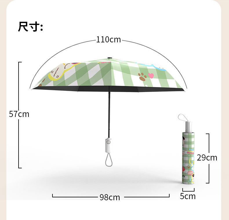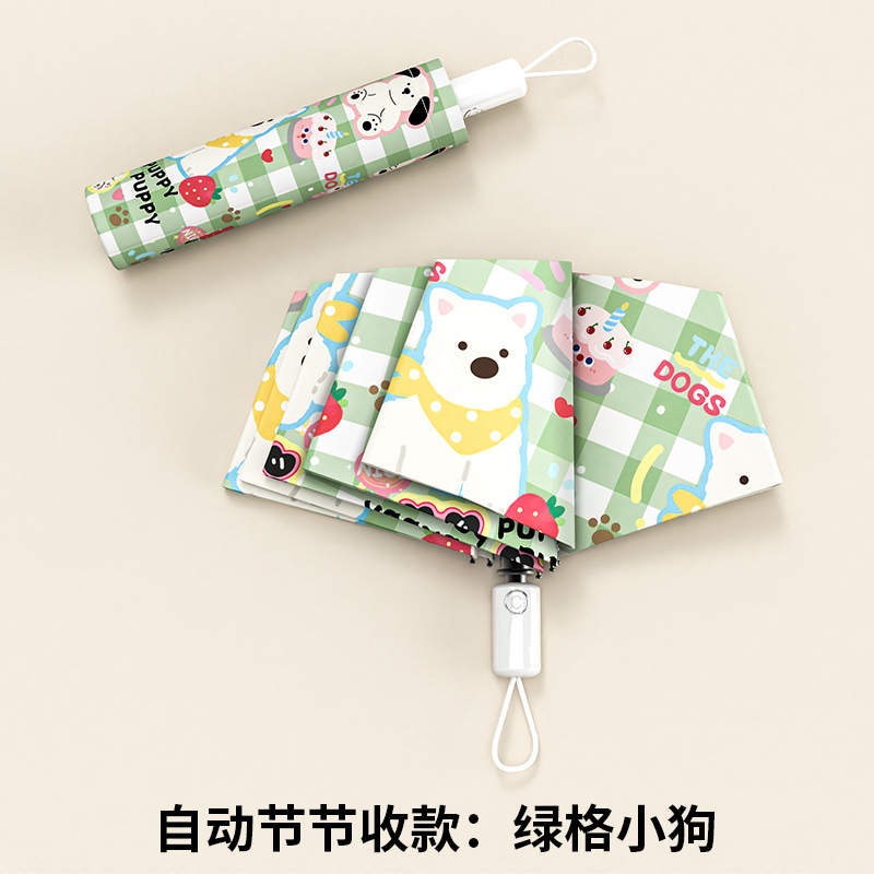 • 자동 우산 닫기 - 녹색 체크무늬 강아지