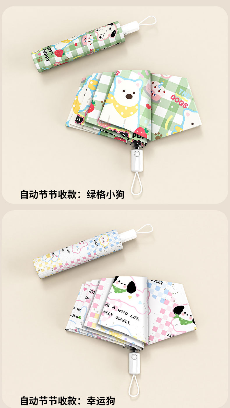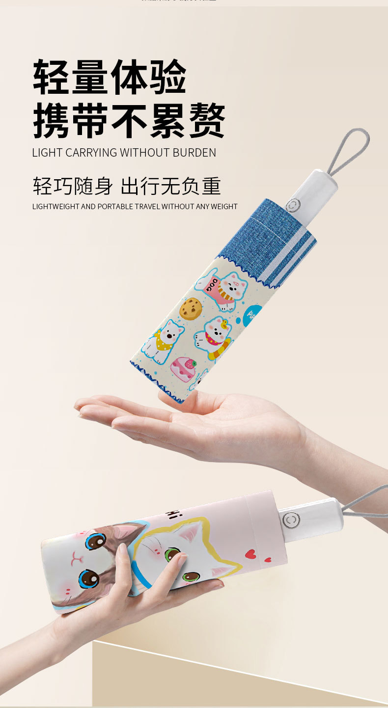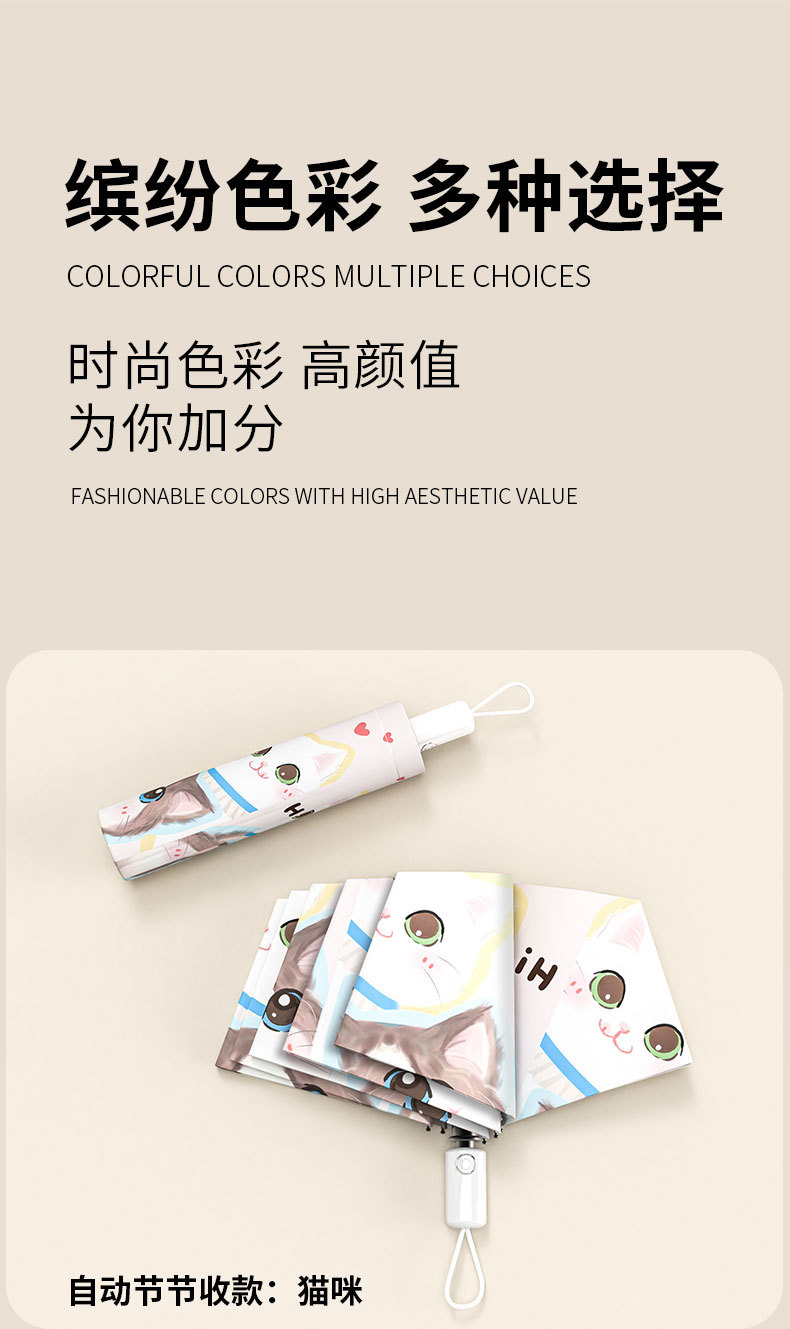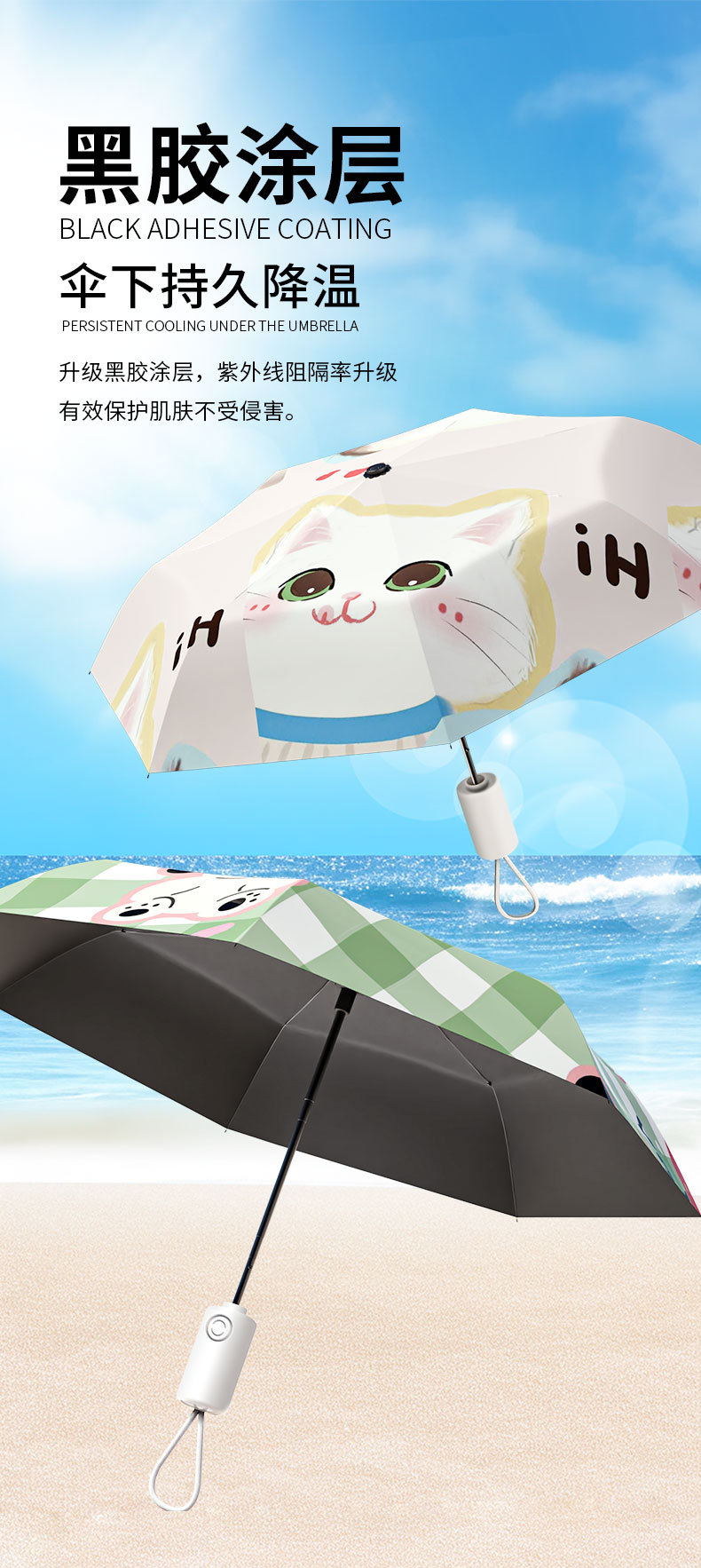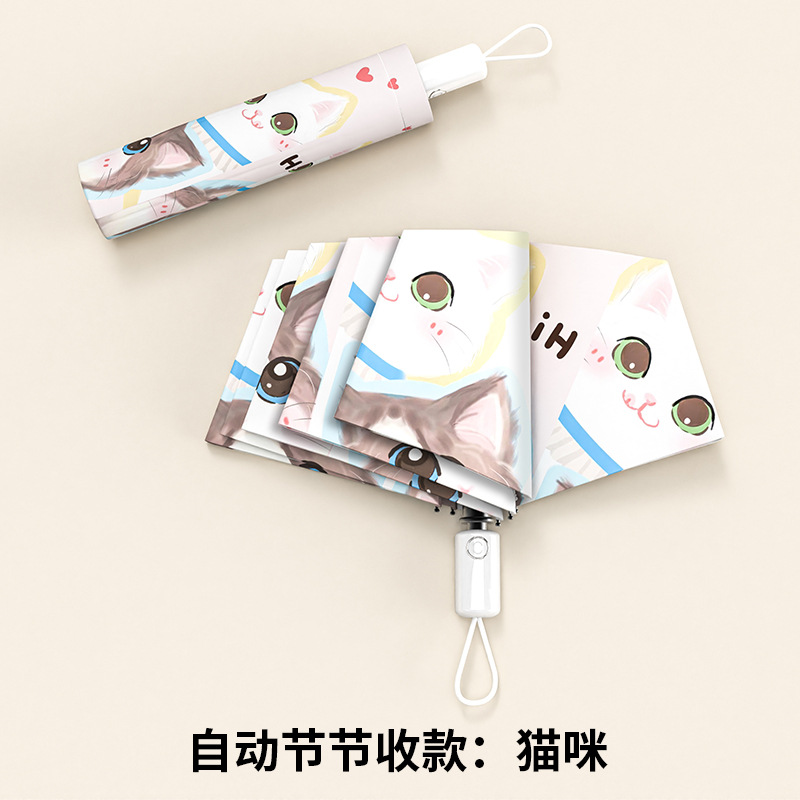 양산 우산 자동 3 배 귀여운 애니메이션 만화 우산 8 뼈 검은 접착제 태양 보호 태양 우산 맑고 비 이중 목적 우산스토어 가기