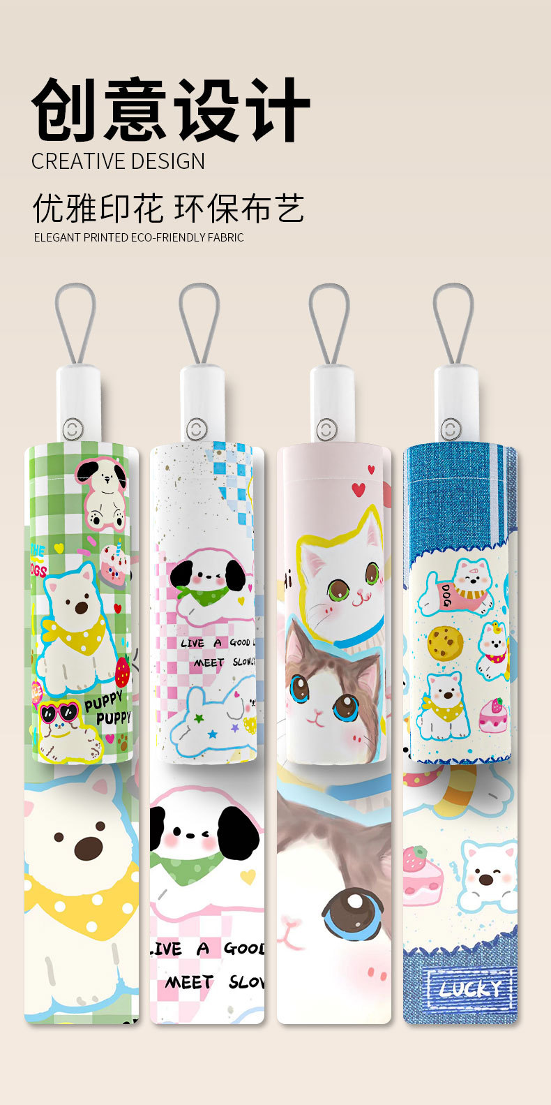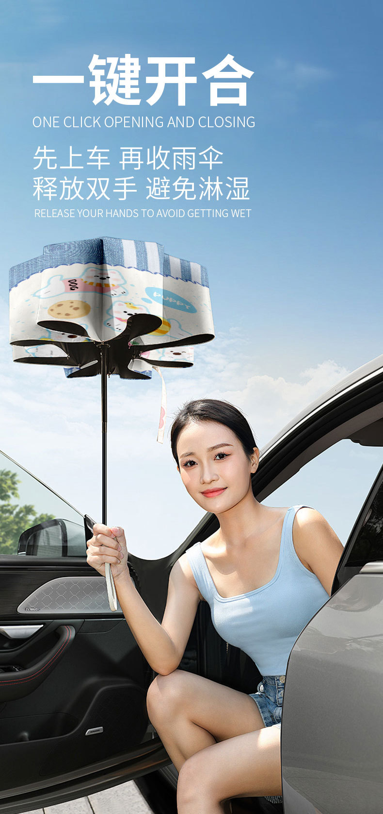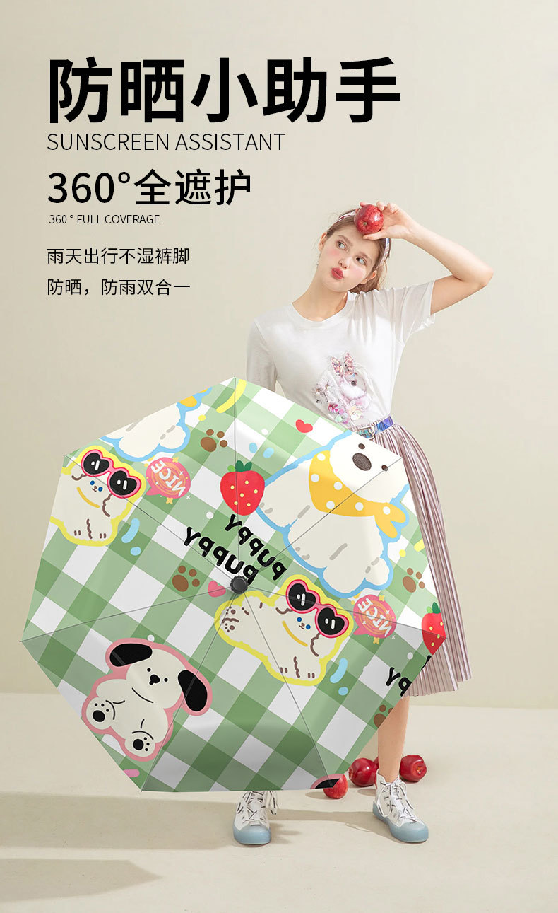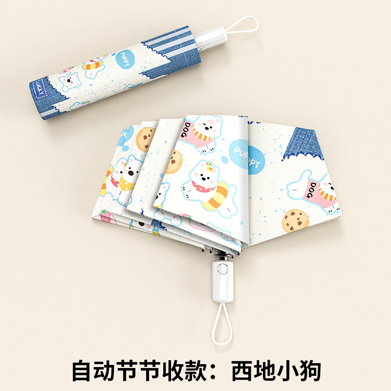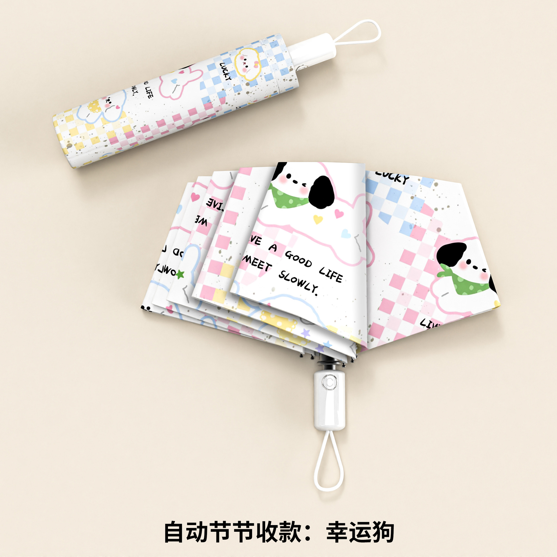 양산 우산 자동 3 배 귀여운 애니메이션 만화 우산 8 뼈 검은 접착제 태양 보호 태양 우산 맑고 비 이중 목적 우산스토어 가기