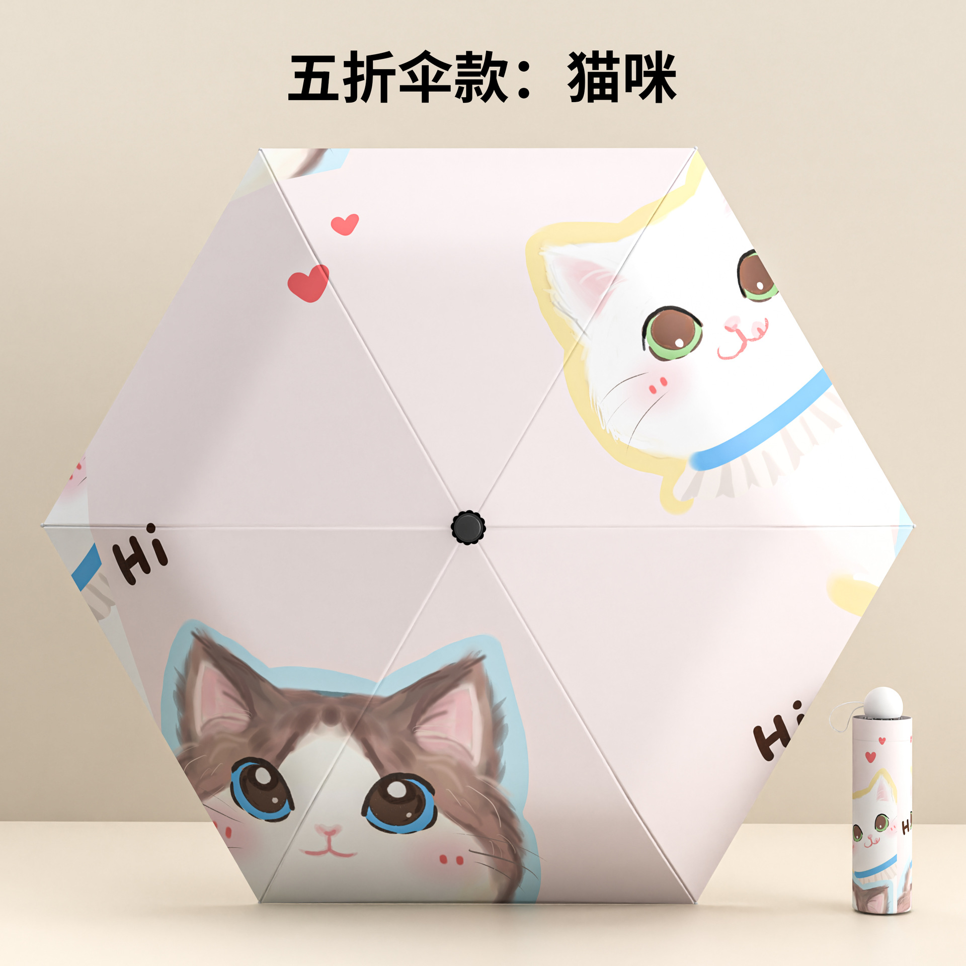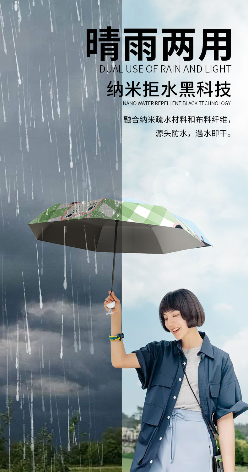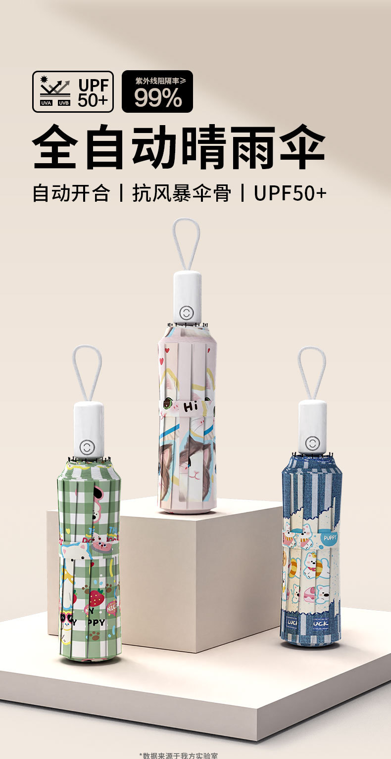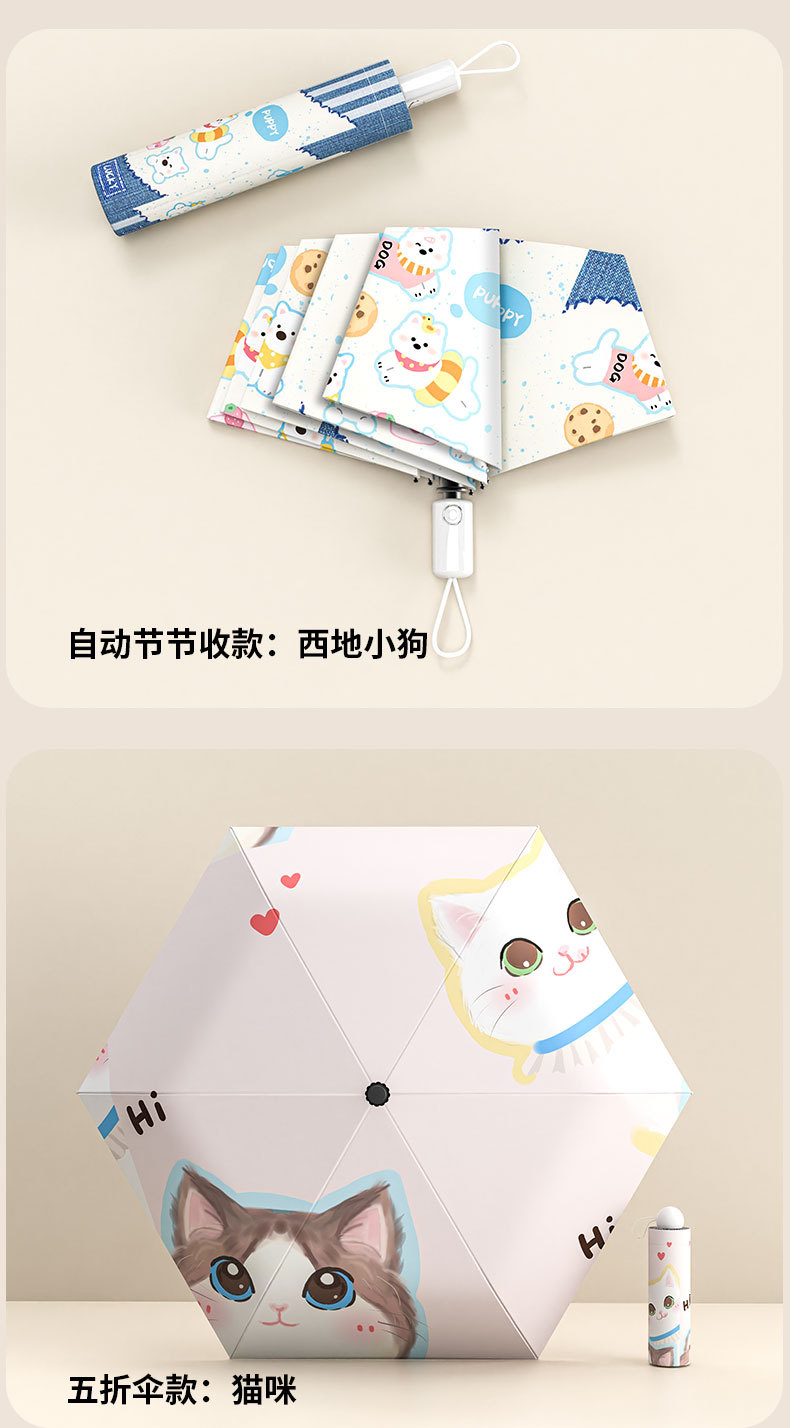양산 우산 자동 3 배 귀여운 애니메이션 만화 우산 8 뼈 검은 접착제 태양 보호 태양 우산 맑고 비 이중 목적 우산스토어 가기