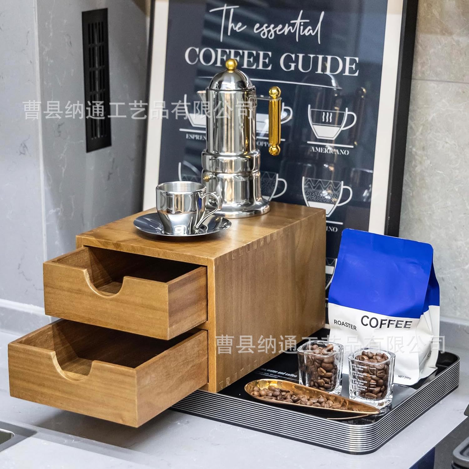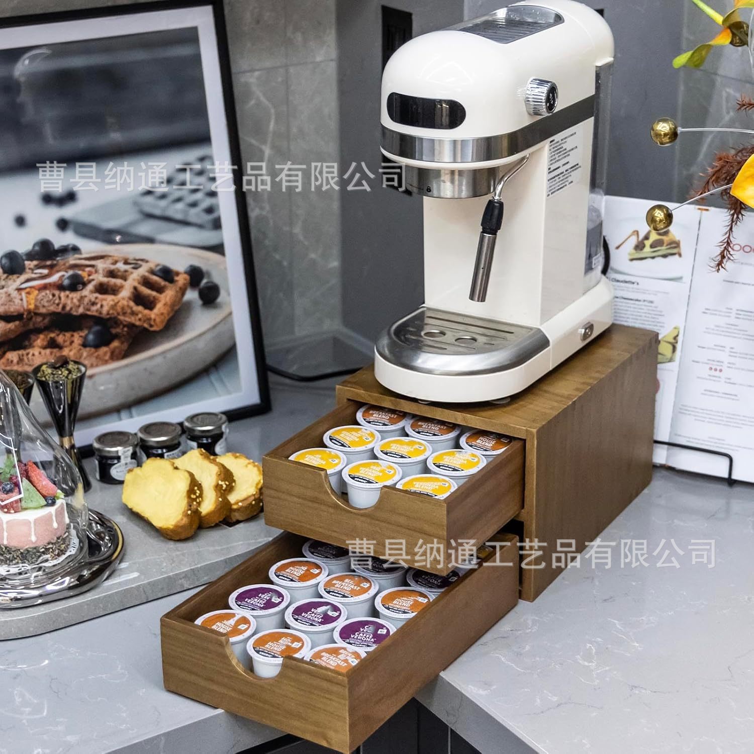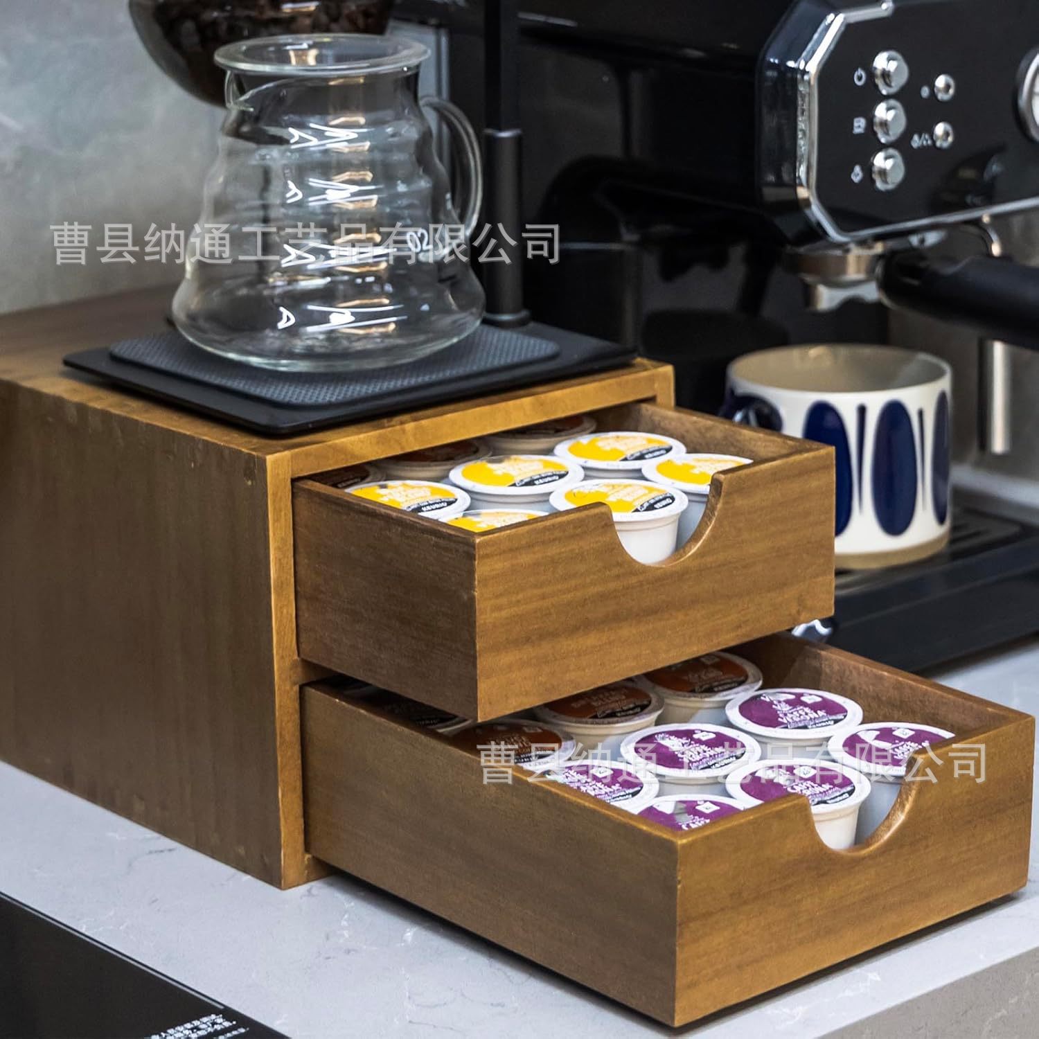 나무 커피 캡슐 서랍 저장 랙 커피 기계베이스 브래킷 가정용 차 세트 더블 레이어 저장 상자스토어 가기