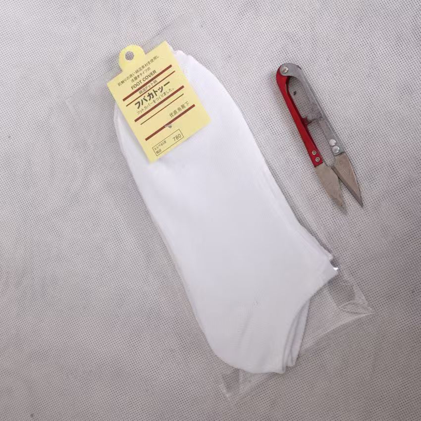 • 흰색 폴리에스테르 면 보트 양말(라벨이 있는 개별 포장)