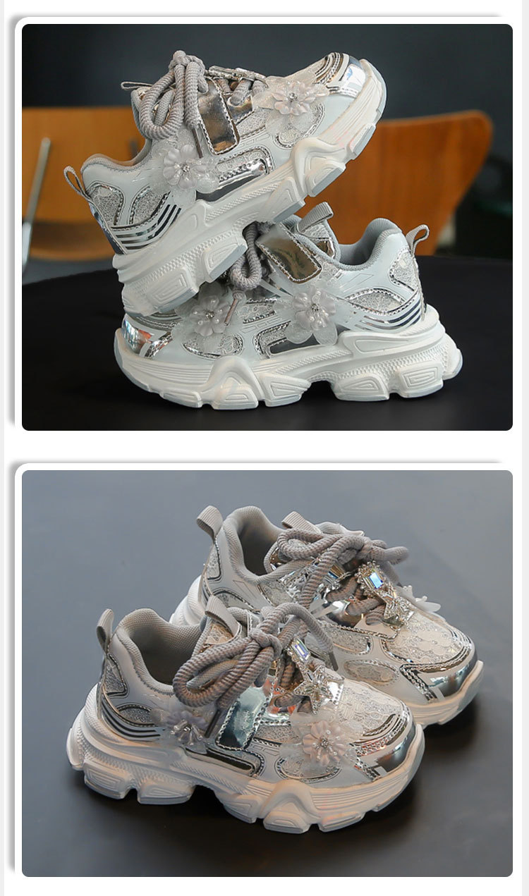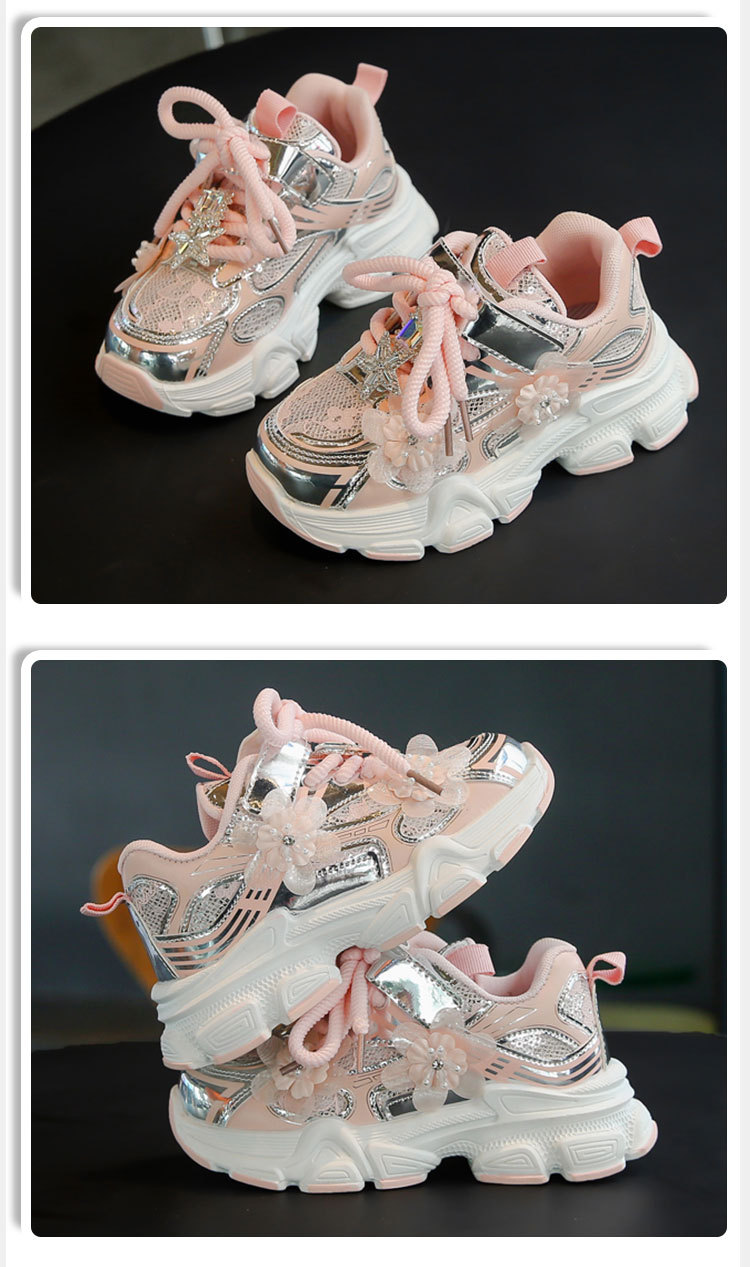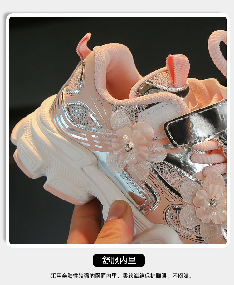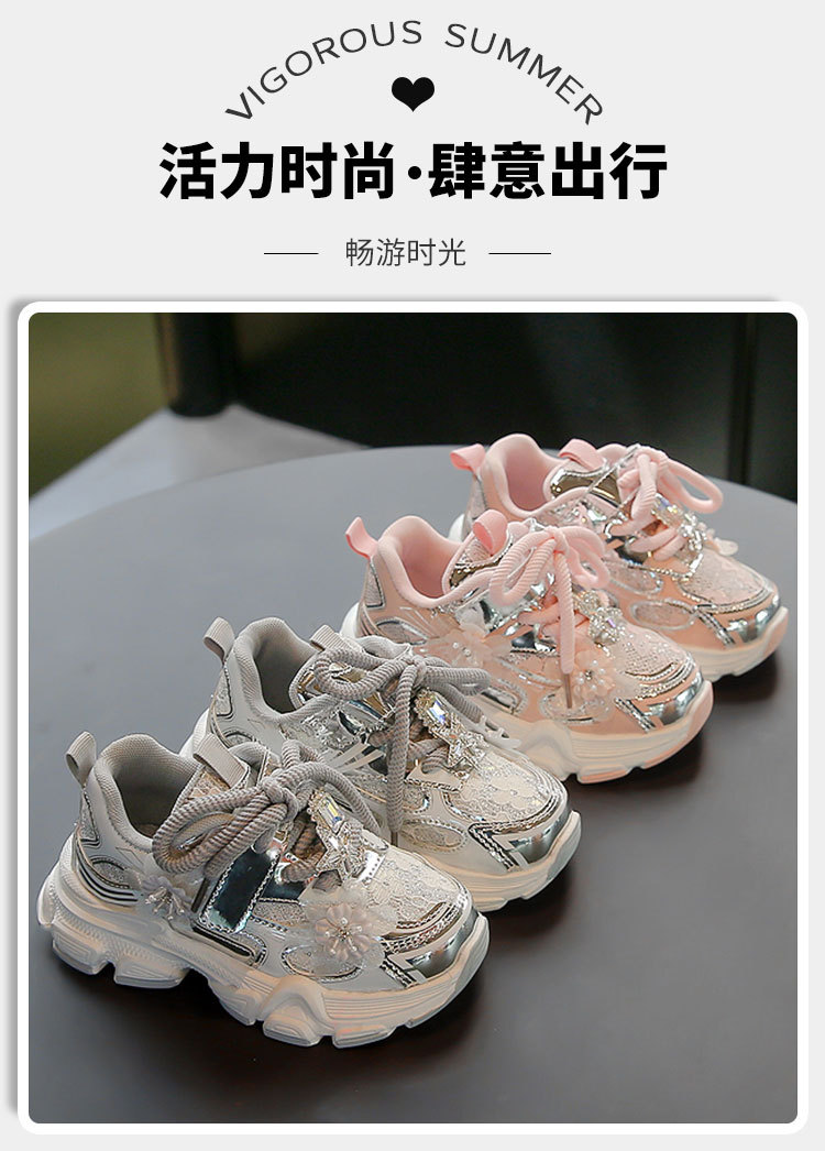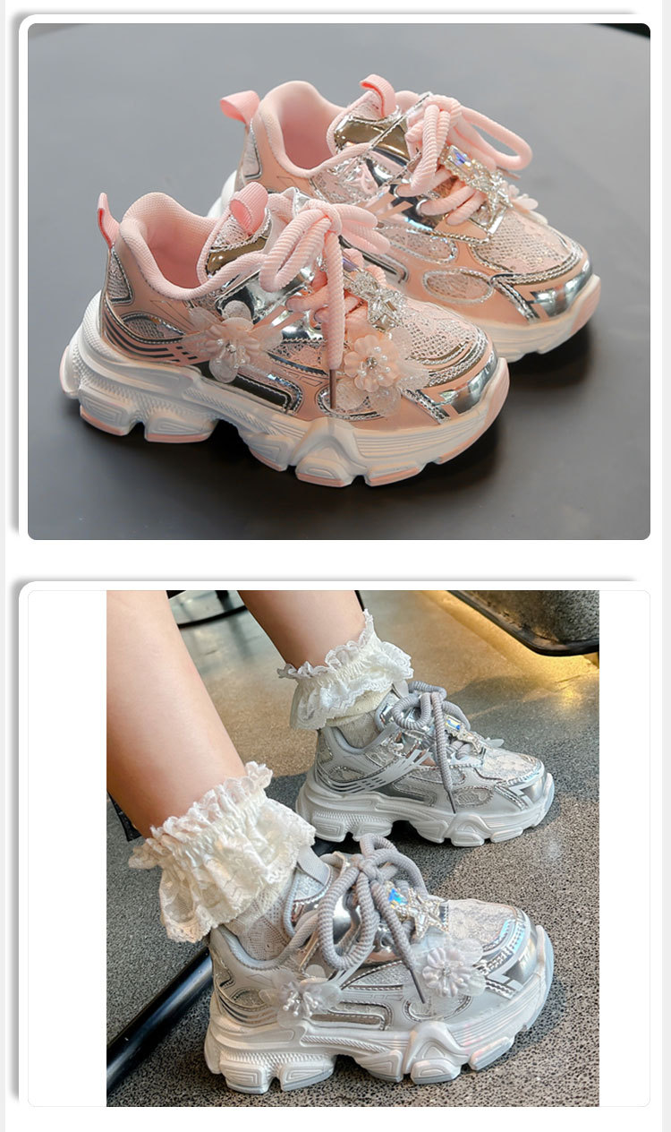 여아 운동화, 아빠 신발 스타일, 2025년 봄 신상, 중대형 어린이용 레이스 메쉬 소녀 캐주얼 신발, 가볍고 편안함스토어 가기