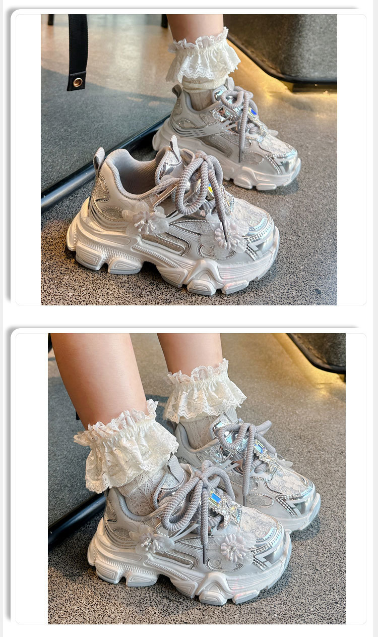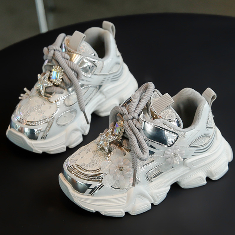 여아 운동화, 아빠 신발 스타일, 2025년 봄 신상, 중대형 어린이용 레이스 메쉬 소녀 캐주얼 신발, 가볍고 편안함