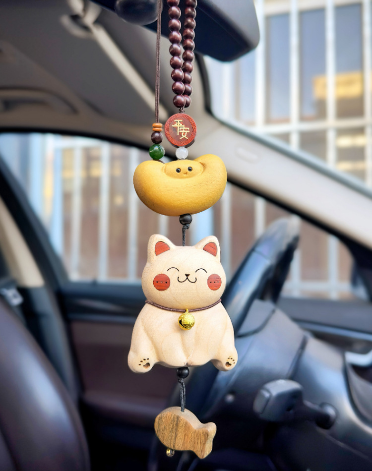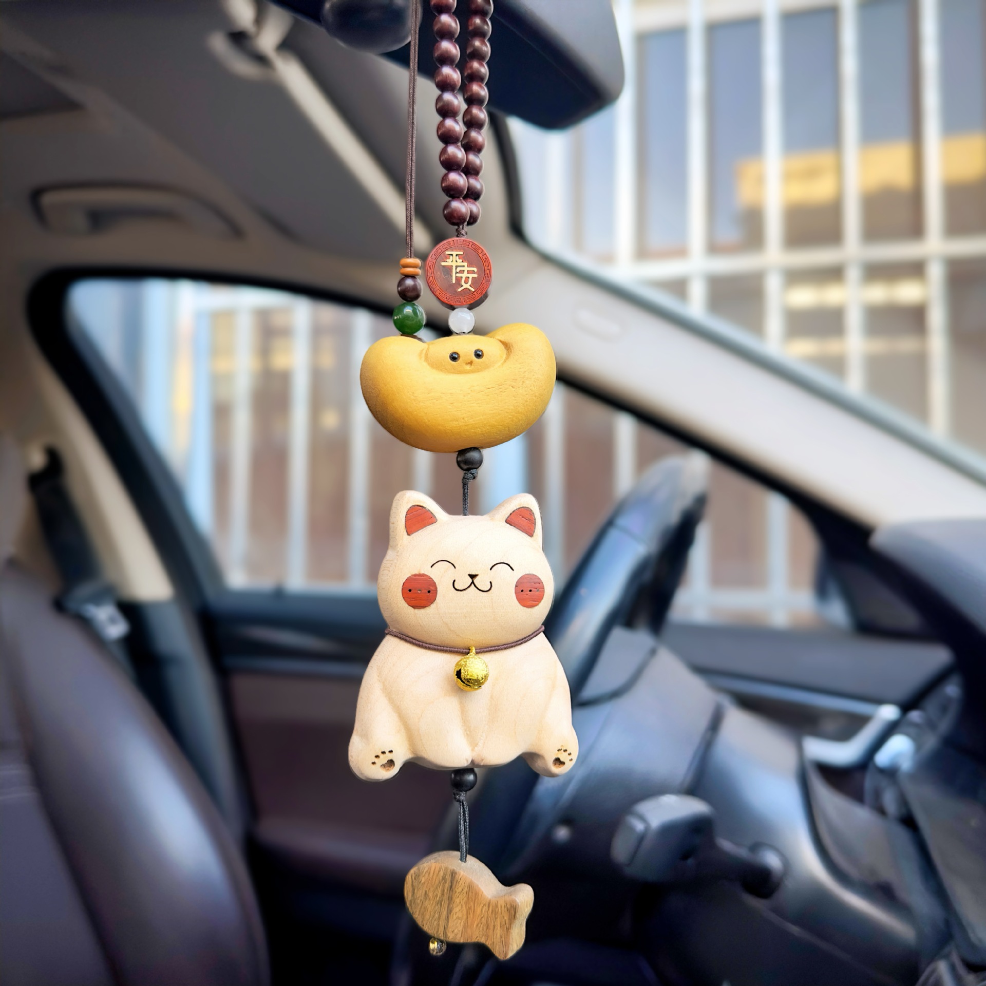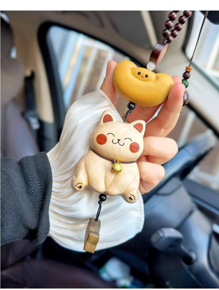 루슨트 고양이 자동차 교수형 ~ 나무 장식 가방 매달려 자동차 펜던트 새로운 자동차 교수형 원래 창조적 인 선물 귀여운스토어 가기
