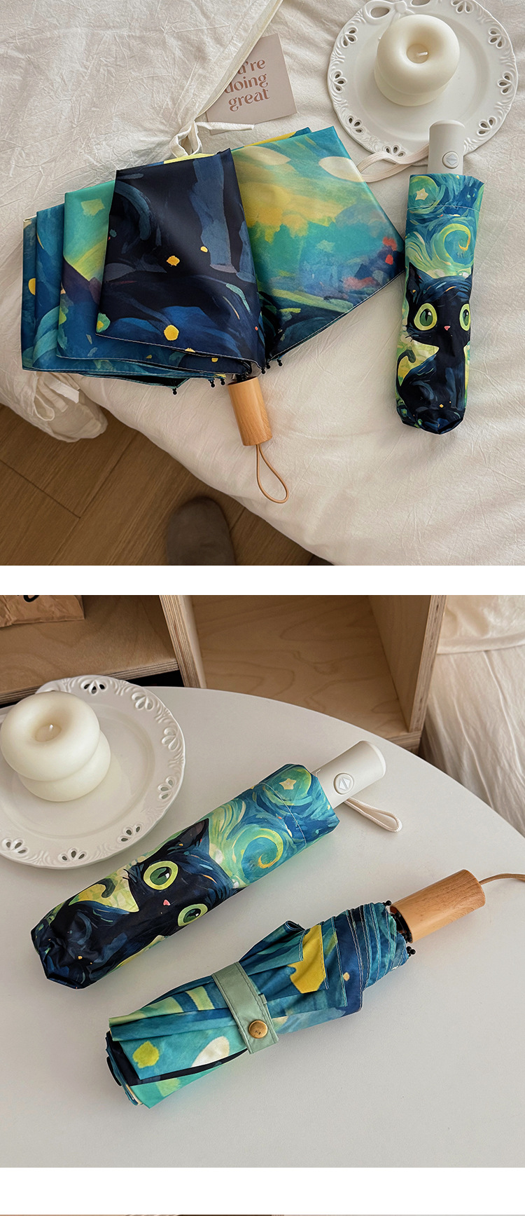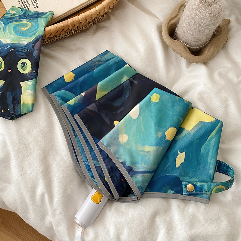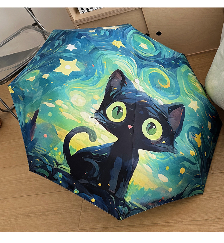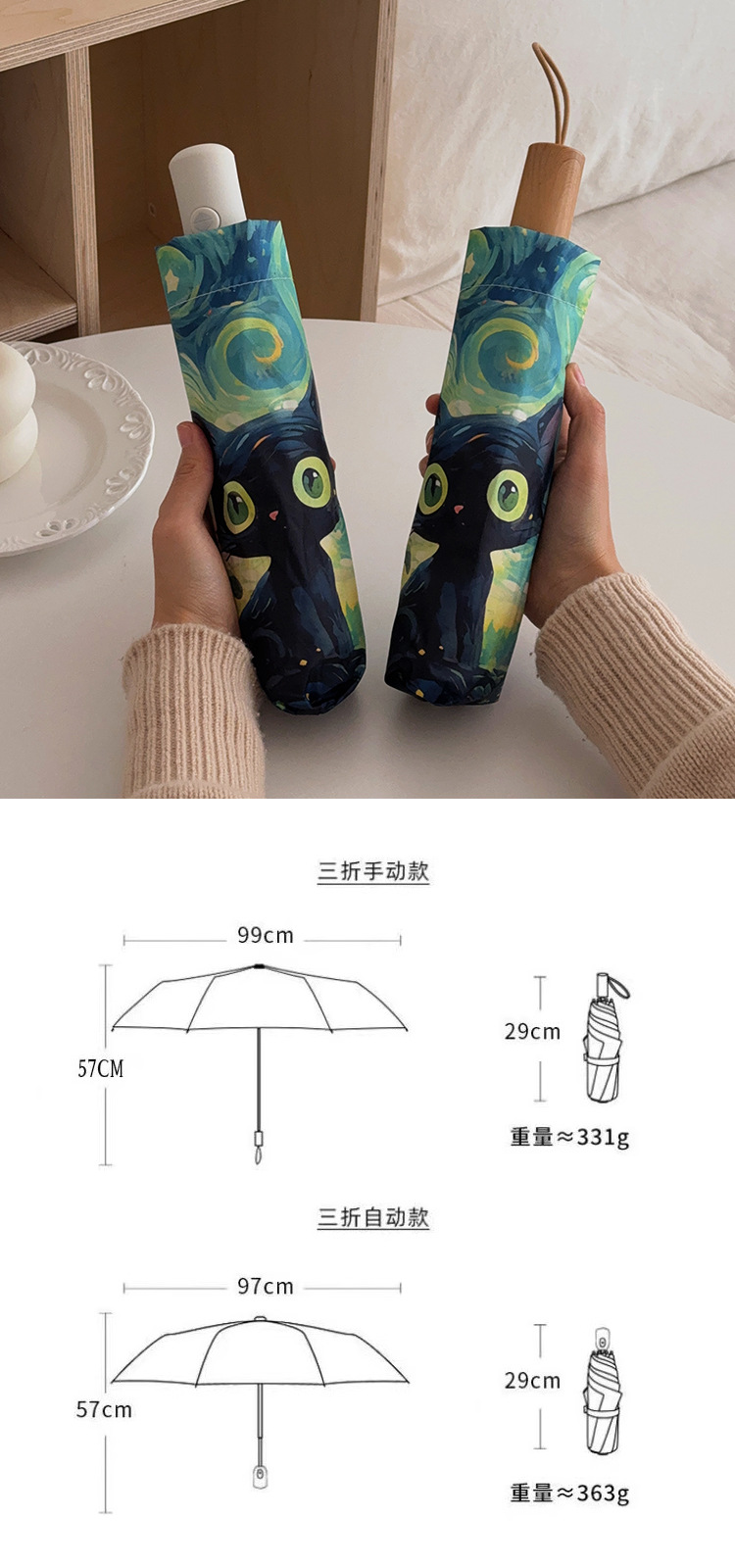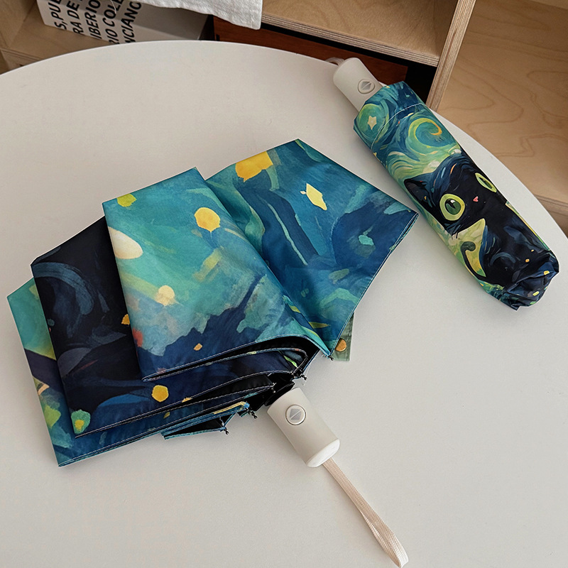 귀여운 고양이 완전 자동 써니 우산 이중 목적 접히는 태양 우산 높은 가치 여성의 태양 보호 자외선 보호 태양 우산