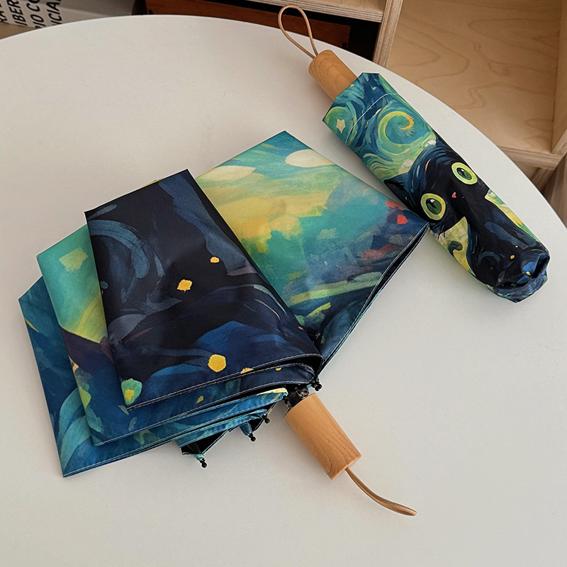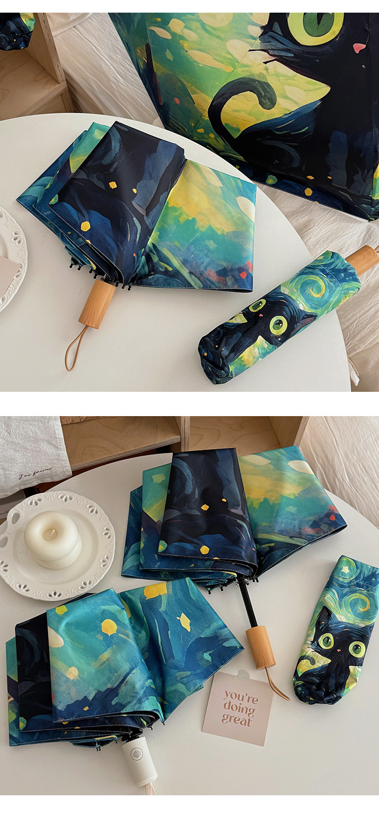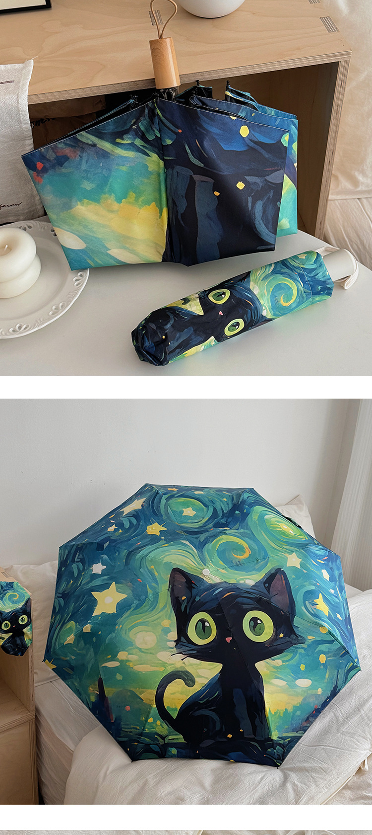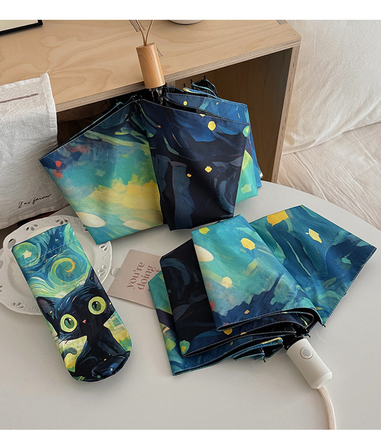 귀여운 고양이 완전 자동 써니 우산 이중 목적 접히는 태양 우산 높은 가치 여성의 태양 보호 자외선 보호 태양 우산