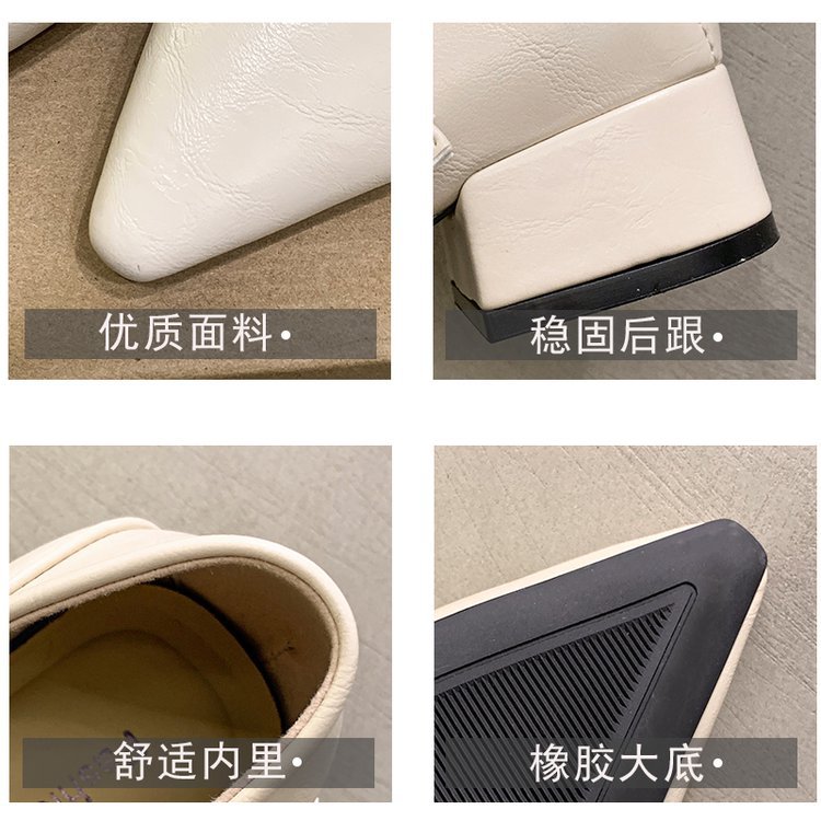 2025 봄 새 뾰족한 신발 두꺼운 굽 얕은 입 메리 제인 신발 한 단어 버클 미들 패션 여성 신발 도매