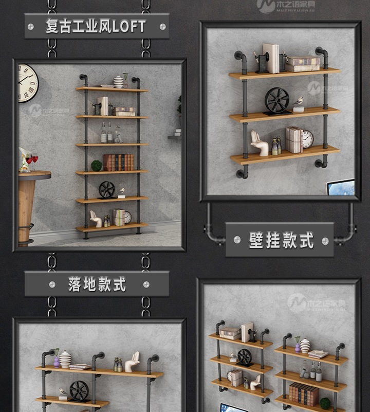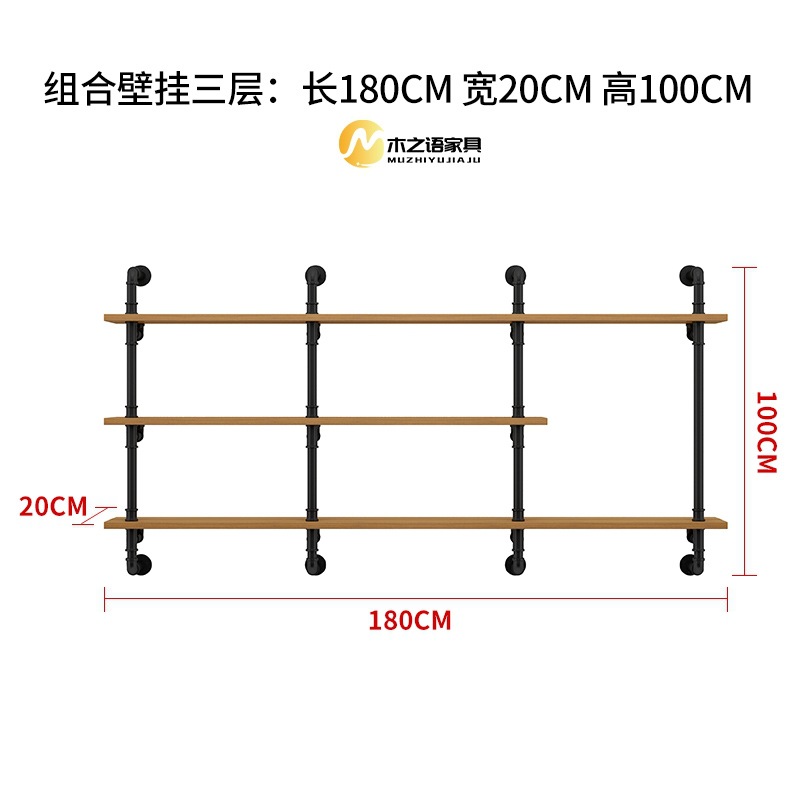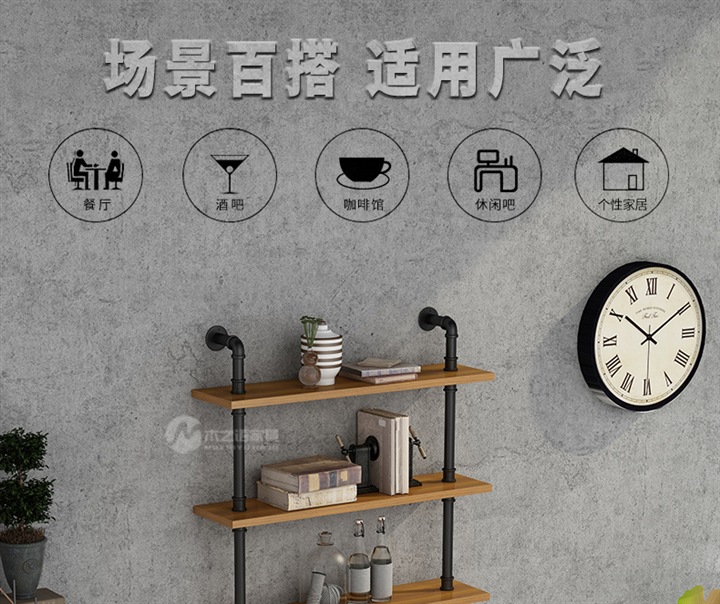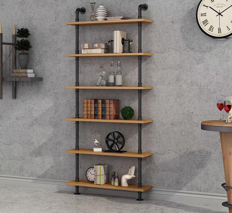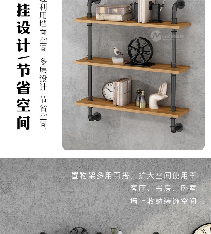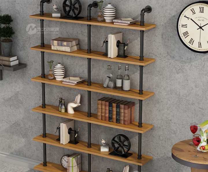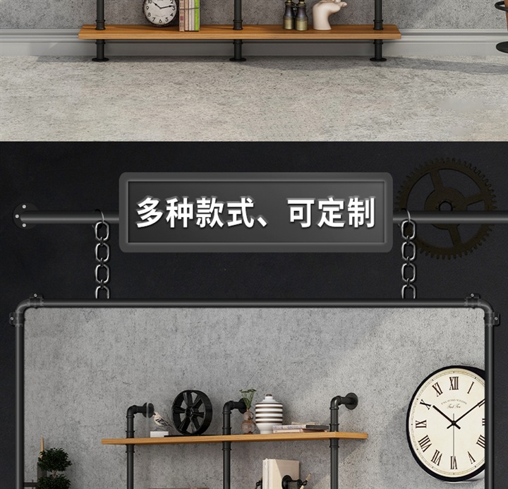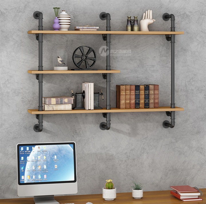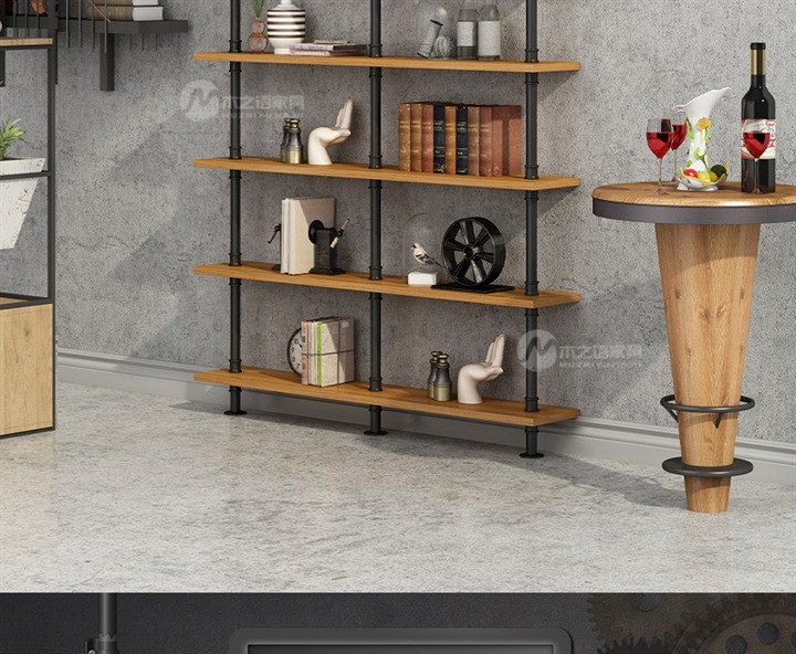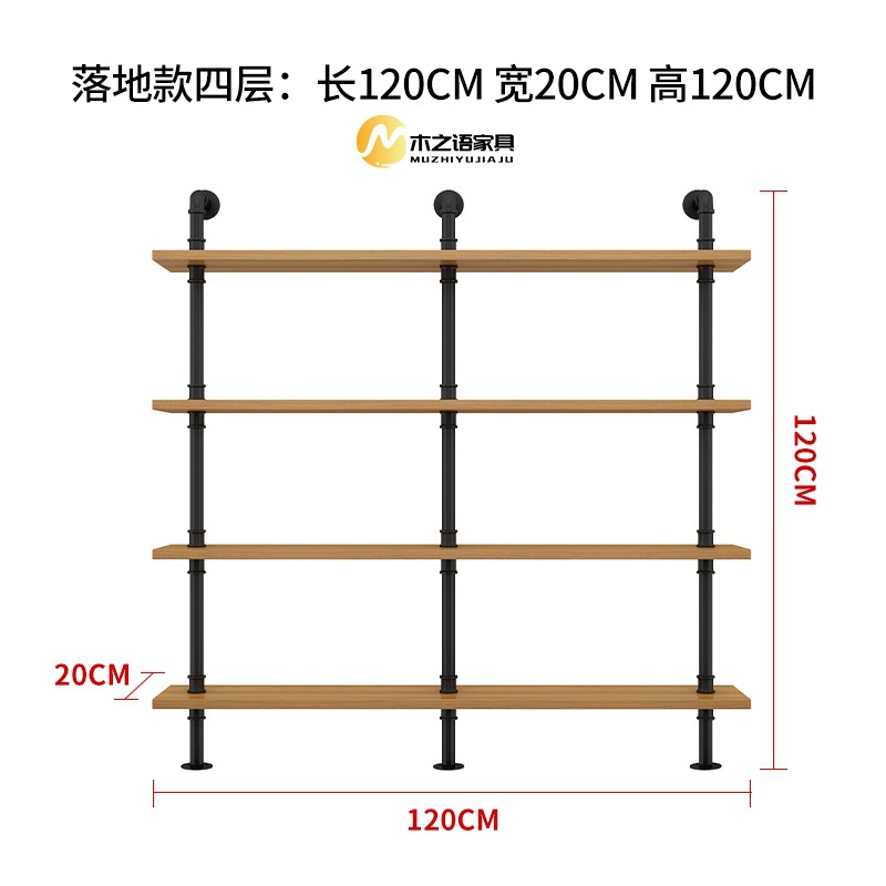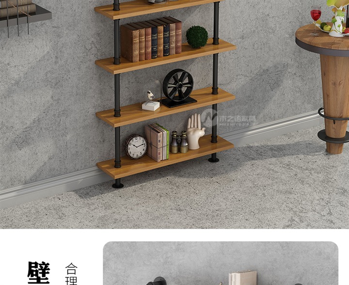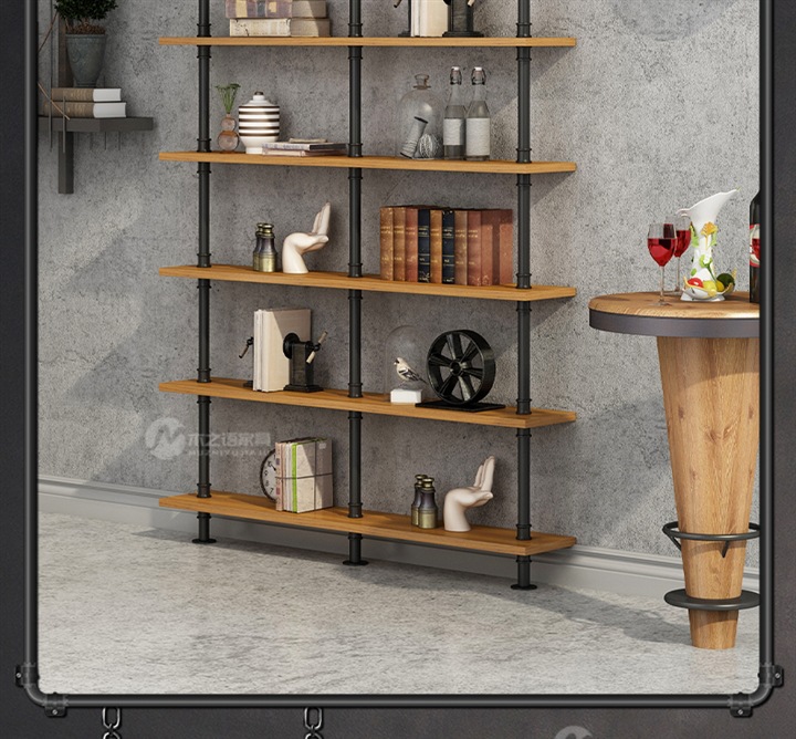 단철 물 파이프 책장 단단한 나무 벽 저장 랙 산업 스타일 한 단어 파티션 벽 매달려 와인 랙 바닥 벽 꽃 랙