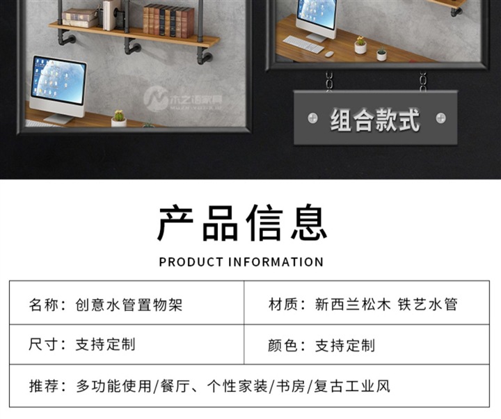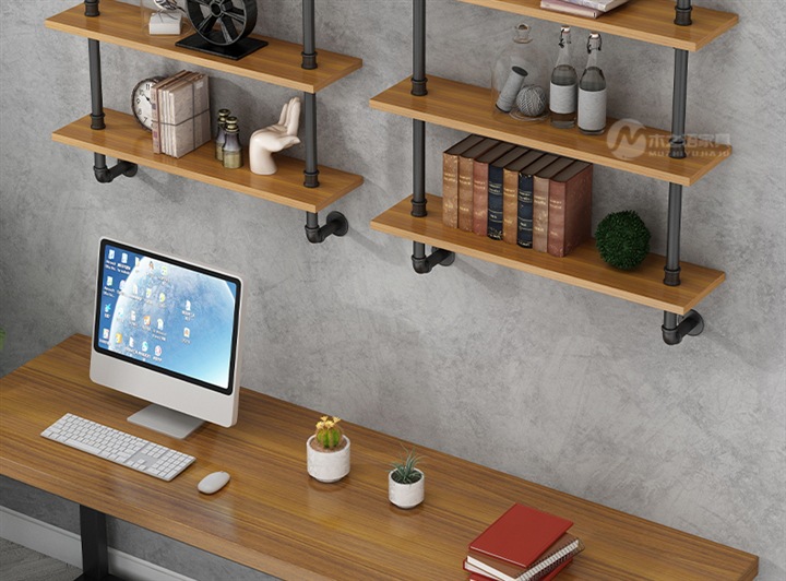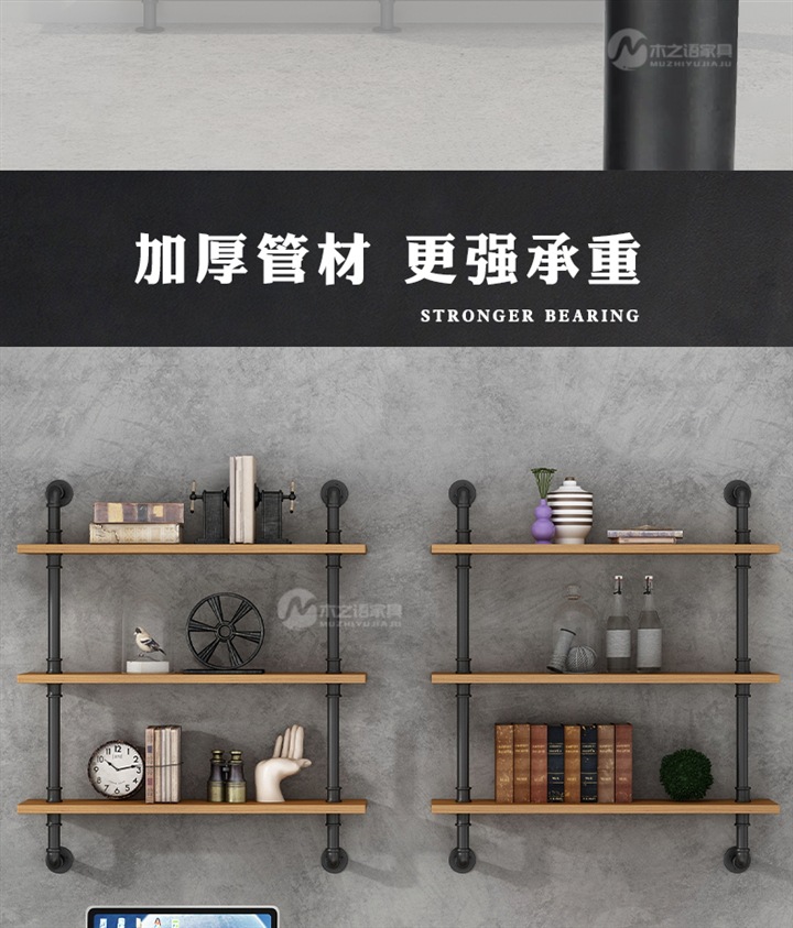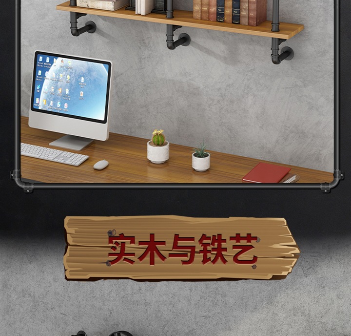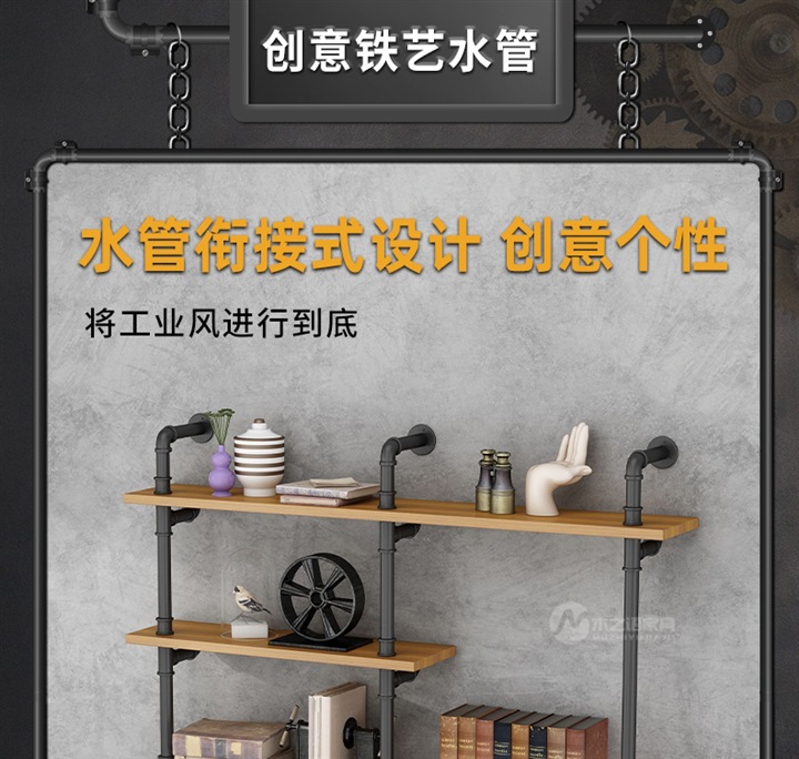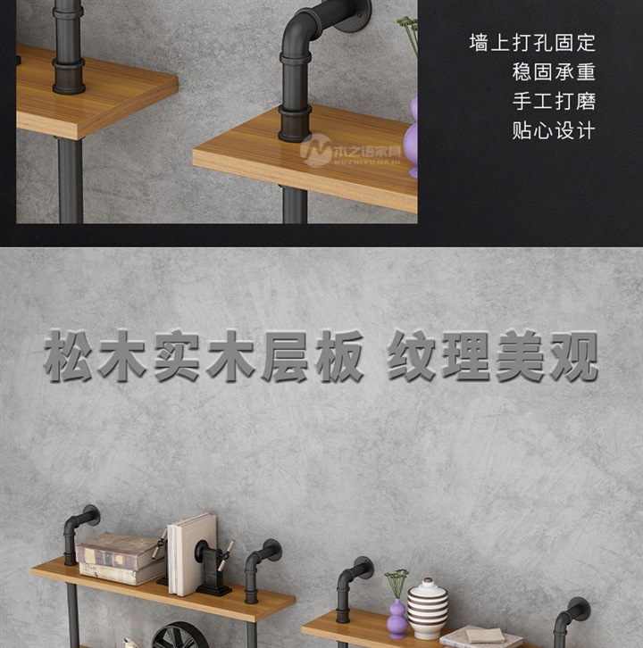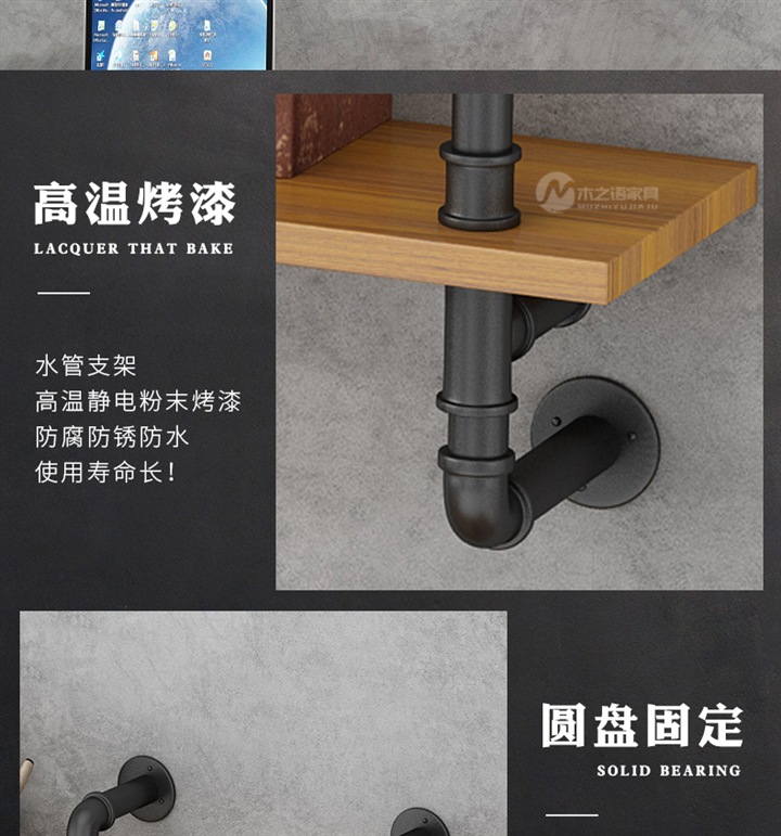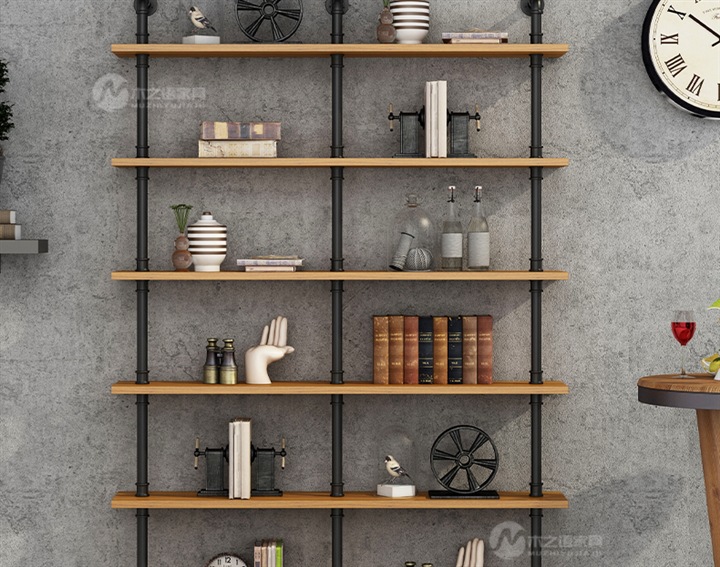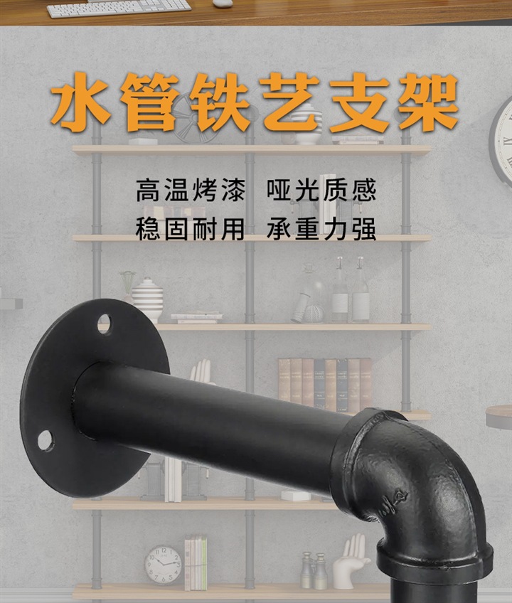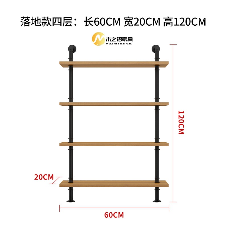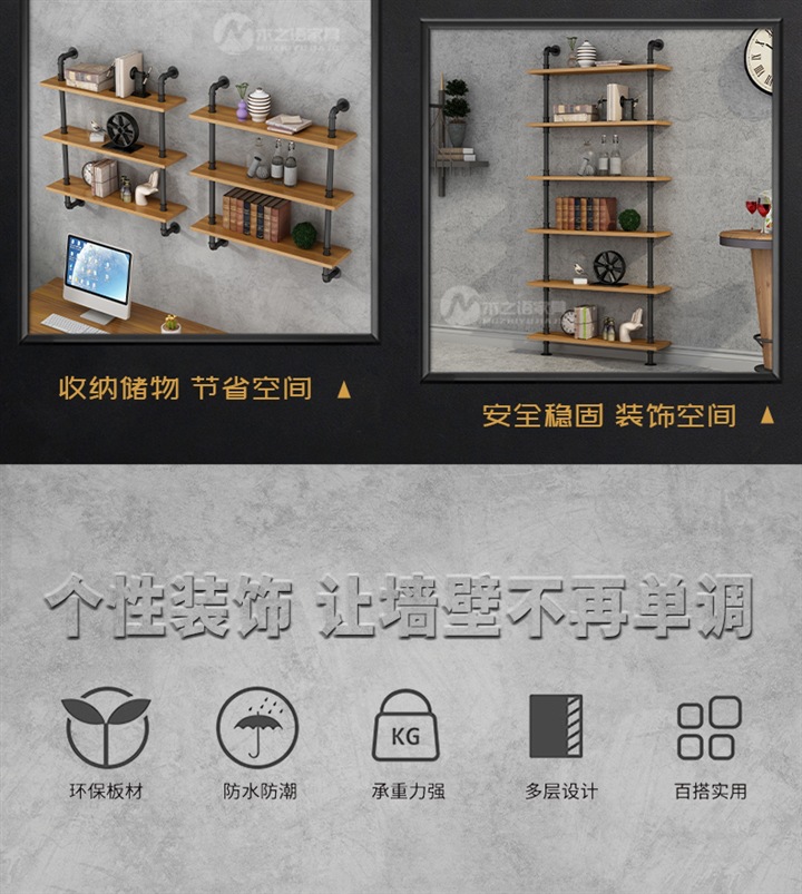 단철 물 파이프 책장 단단한 나무 벽 저장 랙 산업 스타일 한 단어 파티션 벽 매달려 와인 랙 바닥 벽 꽃 랙