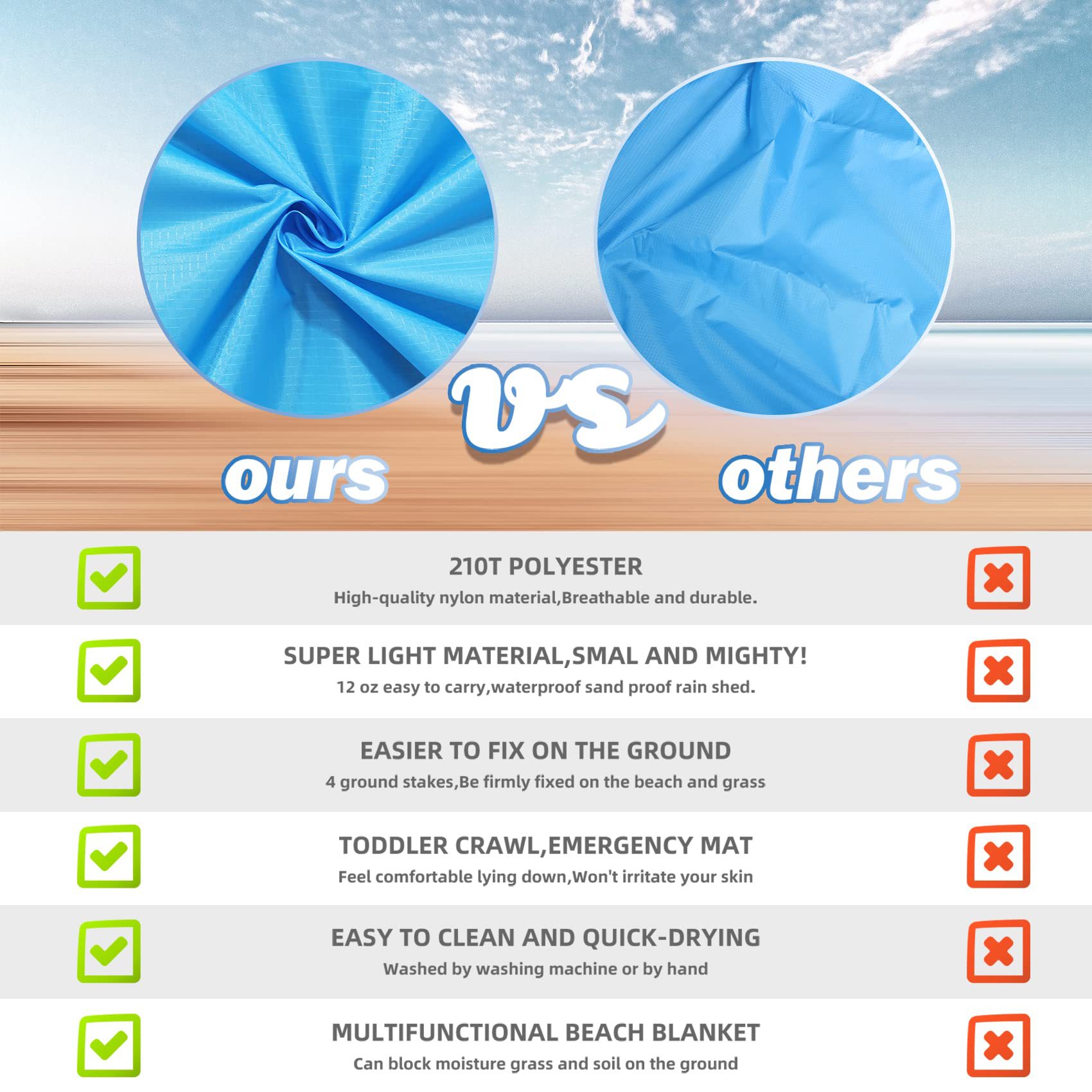 해변 담요 반 모래 대형, 여행 캠핑 하이킹 휴대용 피크닉 매트, 가벼운 해변 용품스토어 가기