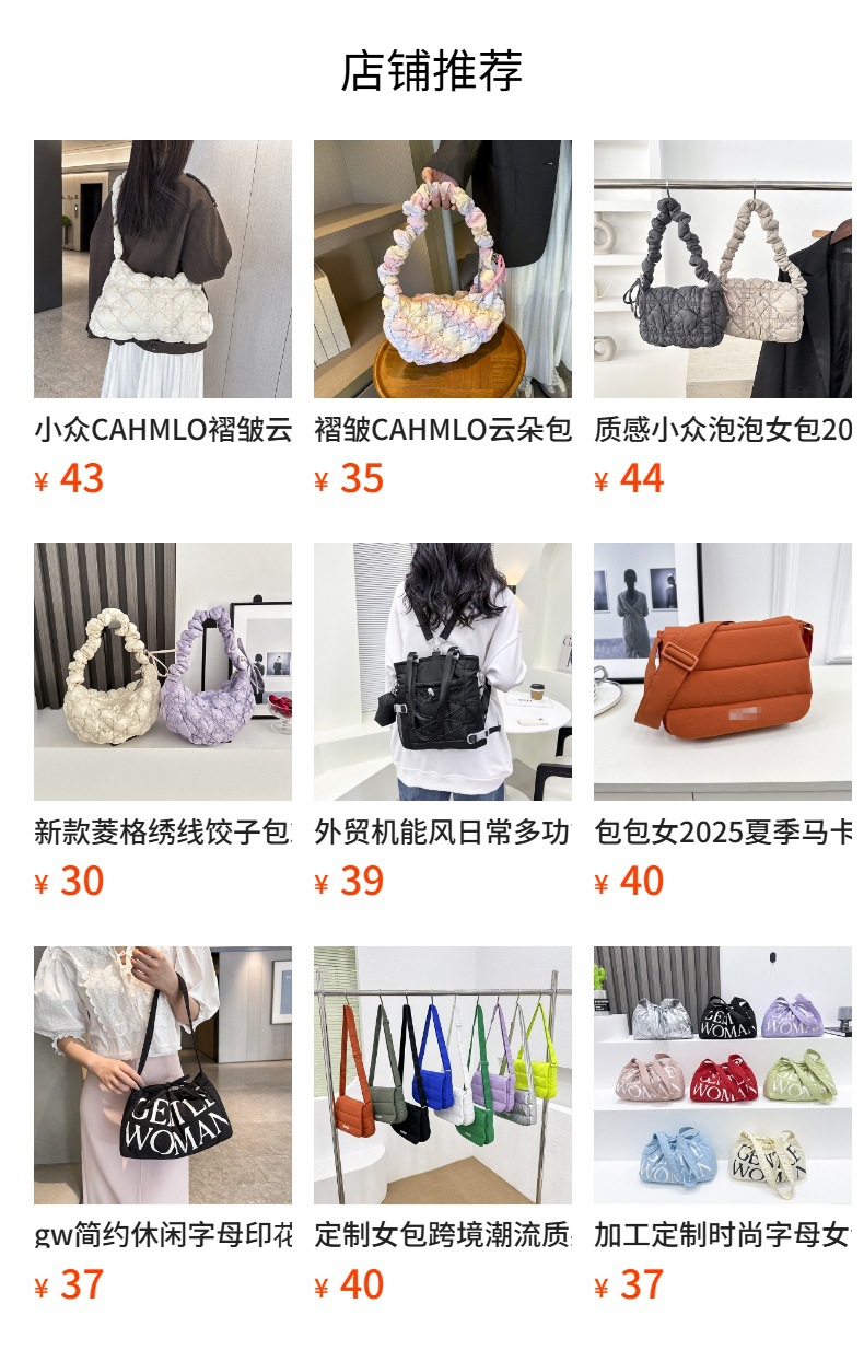 태국 CAHMLO 방랑자 가방 2025 새로운 간단한 캐주얼 여성 언더암 가방 대용량 구름 여성용 어깨 가방스토어 가기