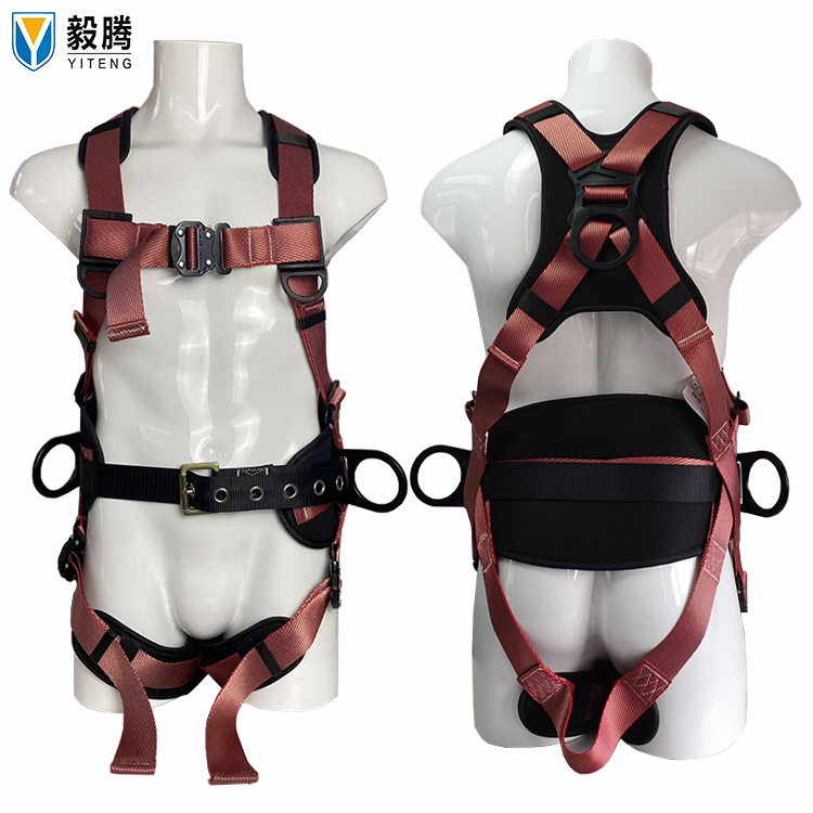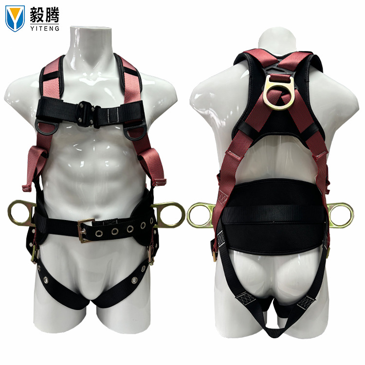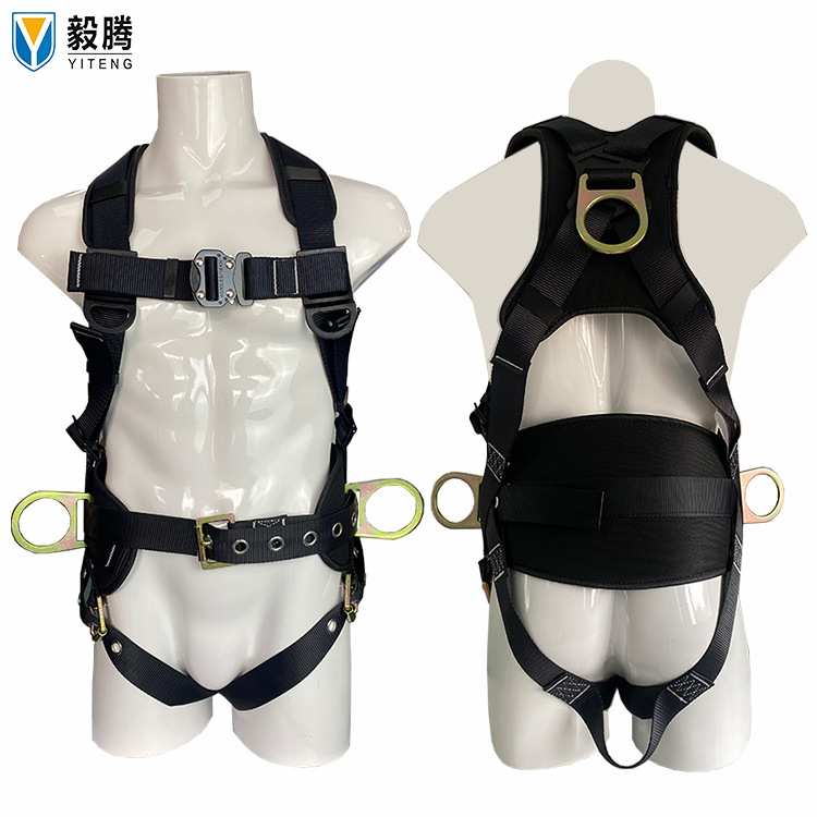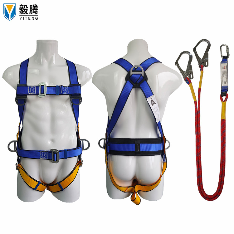 새로운 국가 표준 유럽 스타일 풀 바디 5 포인트 안전 벨트 떨어지는 서스펜션 암벽 등반 버퍼 더블 후크