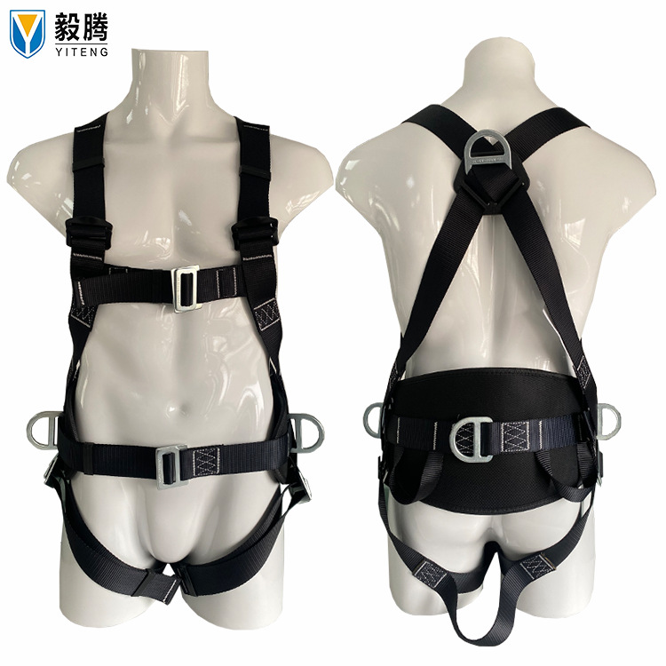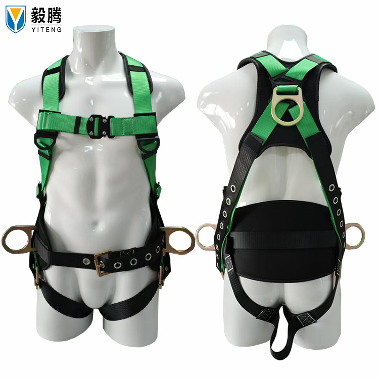 새로운 국가 표준 유럽 스타일 풀 바디 5 포인트 안전 벨트 떨어지는 서스펜션 암벽 등반 버퍼 더블 후크스토어 가기