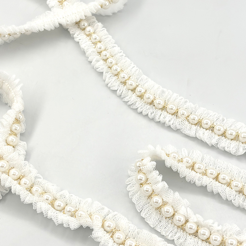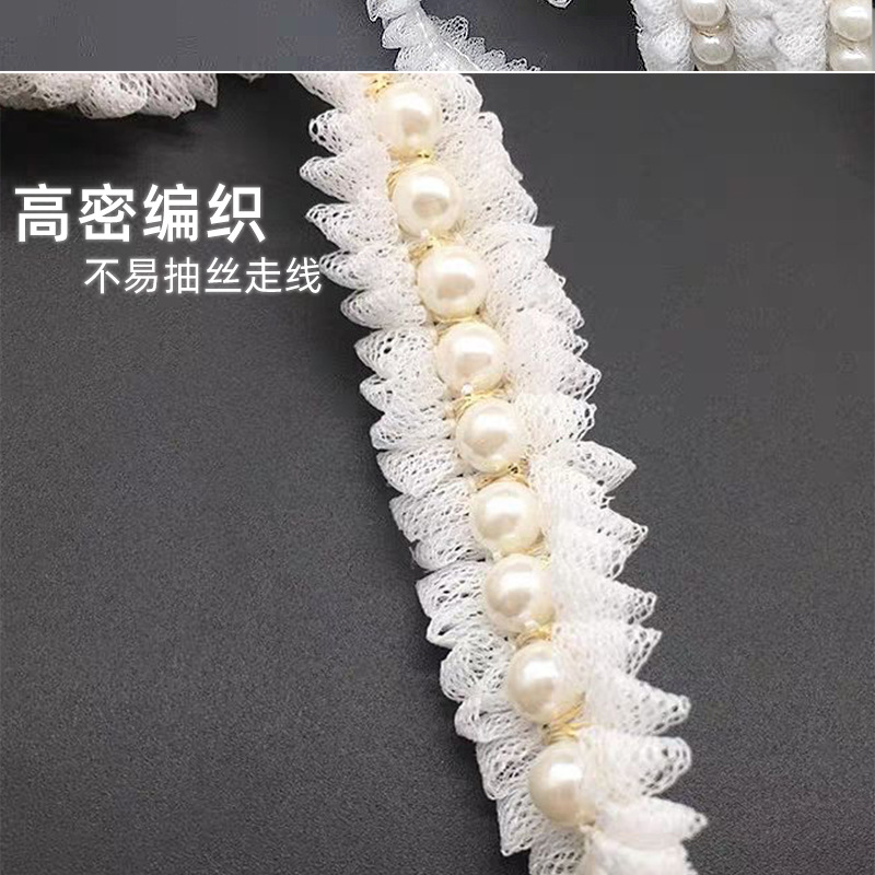 2CM 커튼 레이스 주름 메쉬 화이트 플리츠 레이스 메쉬 펄 칼라 리본 향기로운 액세서리스토어 가기