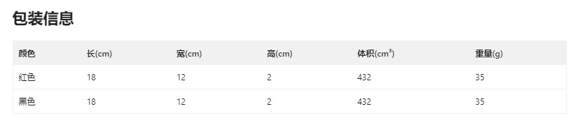 包装体积:18*12*2cm
